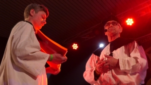 „Pfarrer“ Roland „Trio“ Appel half mit tröstenden Worten den Faschingsnarren das Ende der fünften Jahreszeit zu begehen. Auch der dreifaltigen Faschingsvögelein wurde mit „Wermut“ gedacht, nämlich dem „heilige Schluckspecht“, der „seligen Schnapsdrossel“ und nicht zuletzt dem „unseligen Karnevalsreiher“. Ebenfalls auf die Schippe genommen wurde neben der großen Politik in Berlin das Lokalgeschehen. „Trotz leerer Gemeindekasse wollen wir auch hoffen, dass sich unser Bürgermeister Matthias als Mathe-Ass erweist und eine maßgeSCHNEIDERte Lösung für unsere