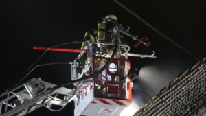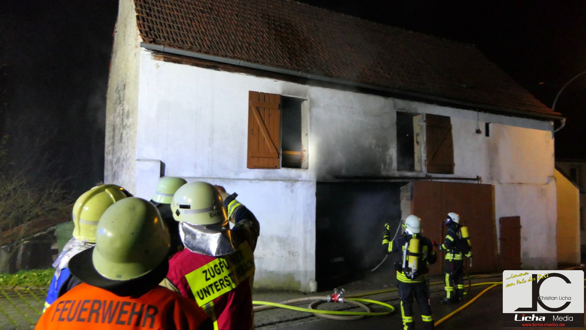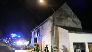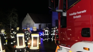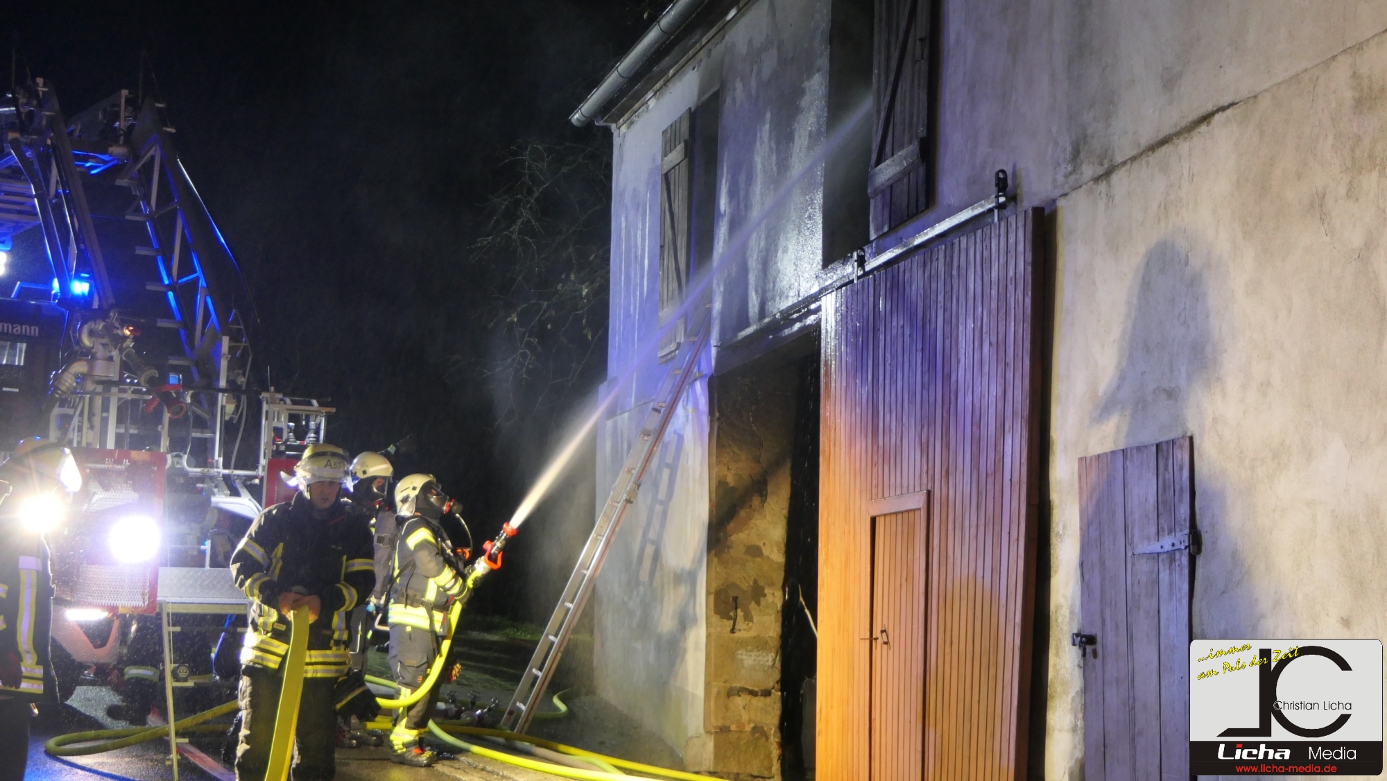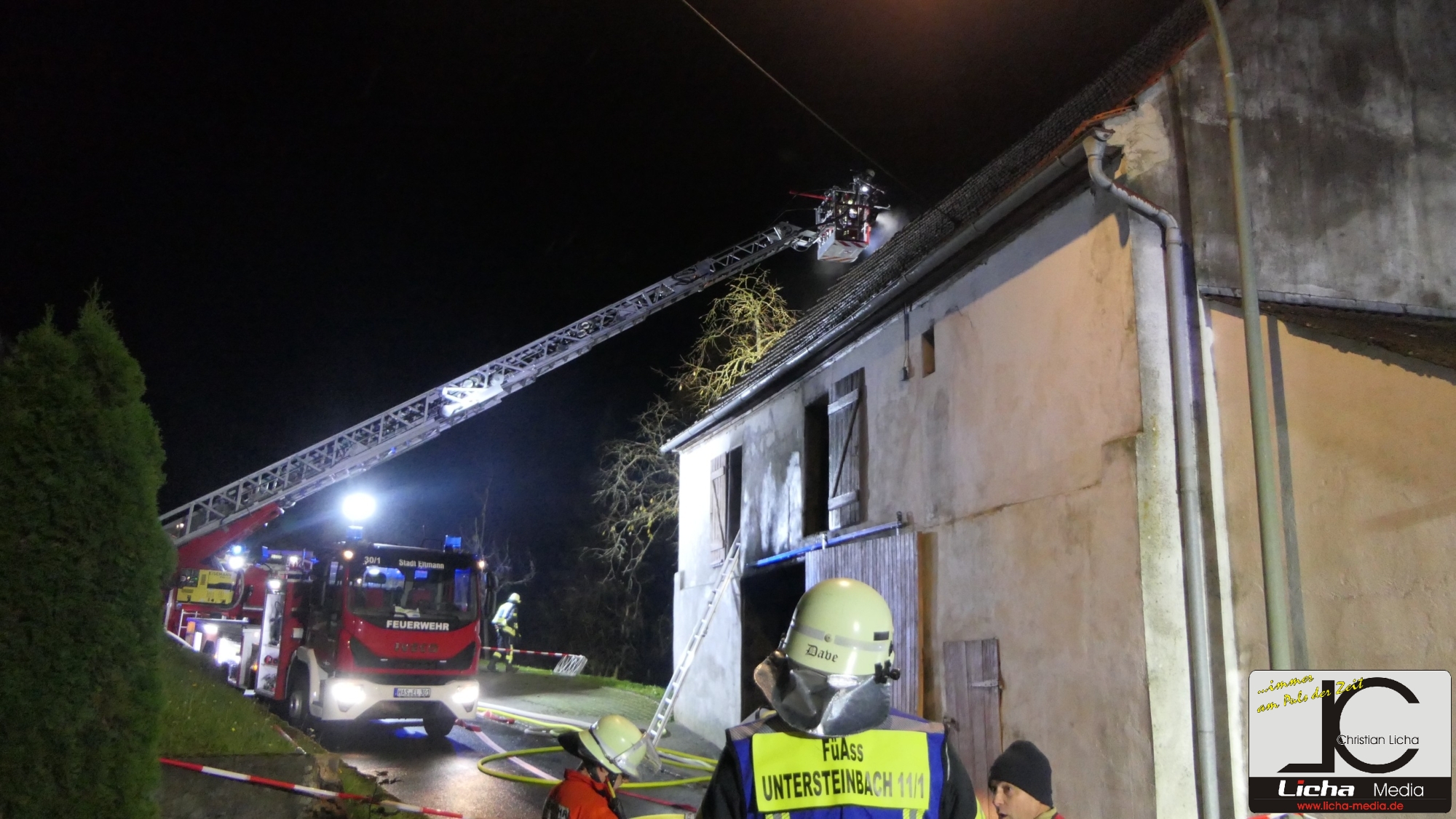 Als erste war die Feuerwehr Prölsdorf am Einsatzort und leitete den Innenangriff ein. „In der Scheune stand alles lichterloh in Flammen“, schilderte ein Feuerwehrmann die Lage. Betroffen waren ein dort abgestellter Seat Ibiza, ein größerer Brennholzvorrat sowie die hölzerne Dachkonstruktion. Nachdem das offene Feuer gelöscht war, wurde mithilfe der Drehleiter der Feuerwehr Eltmann das Dach an der First- und Giebelseite teilweise geöffnet, um letzte Glutnester aufzuspüren. Für die Drehleiter der Wallburgstadt war dies der erste Brandeinsatz seit ihrer Neuanschaffung im Sommer dieses Jahres. Einsatzleiter Roland Friedrich, Kommandant der Feuerwehr Fürnbach, erklärte: „Die Wasserversorgung erfolgte über Hydranten und den Löschweiher, zu dem eine rund 200 Meter lange Schlauchstrecke verlegt wurde.“ Der Rettungsdienst sicherte den Einsatz sanitätsdienstlich ab; verletzt wurde niemand.
