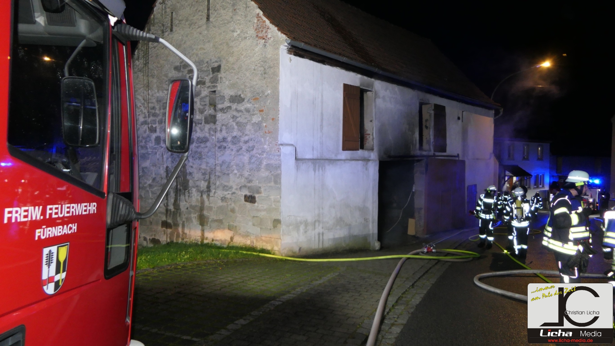 Rauhenebrach / Fürnbach, Lkr. Haßberge. Im Steigerwald wurden am Montagabend zahlreiche Einwohner durch die Sirenen der Feuerwehren aufgeschreckt. Im Rauhenebracher Ortsteil Fürnbach stand eine Scheune in Brand. Binnen kurzer Zeit rückten zu dem Großeinsatz über 100 Einsatzkräfte der Feuerwehren zum Brandort aus.
