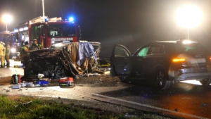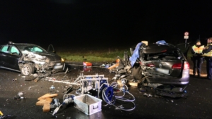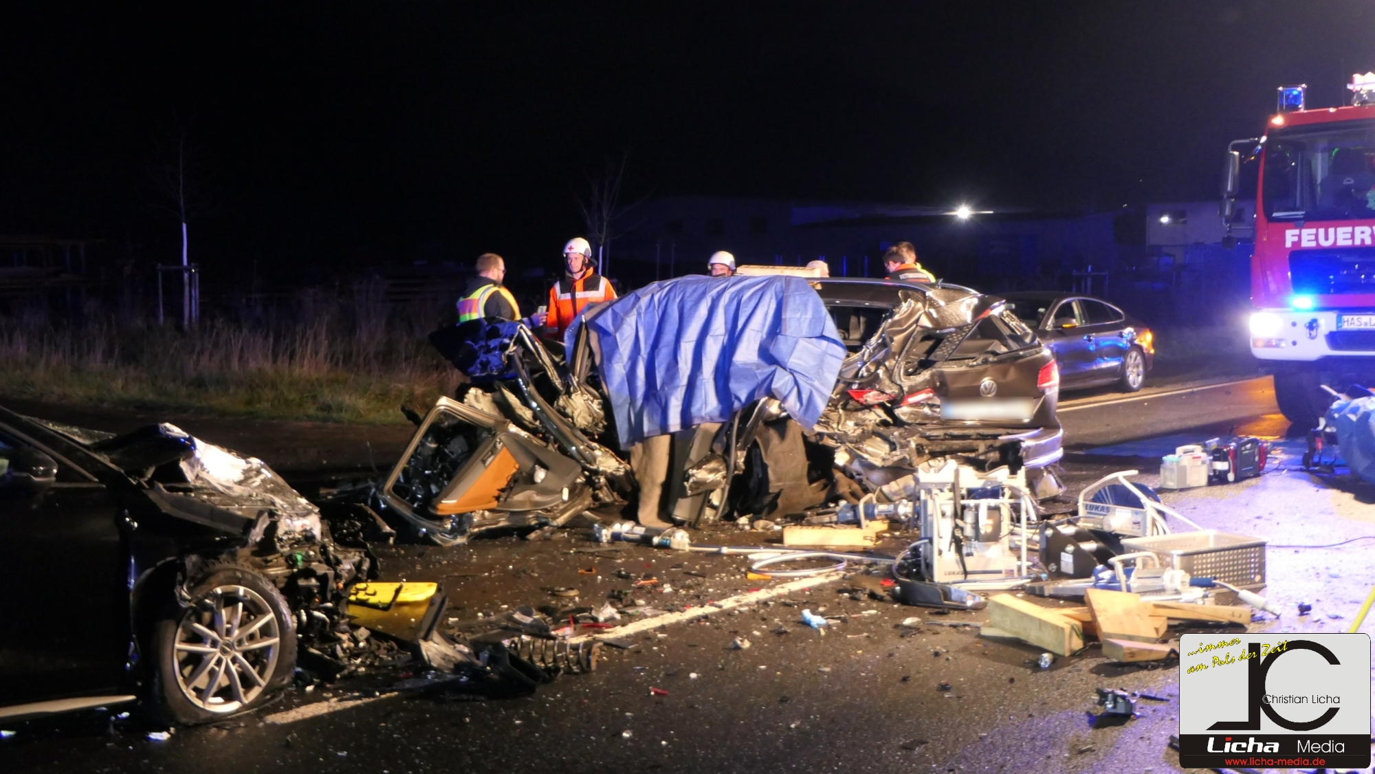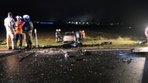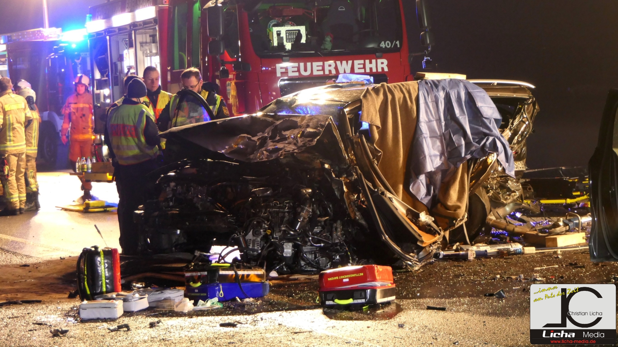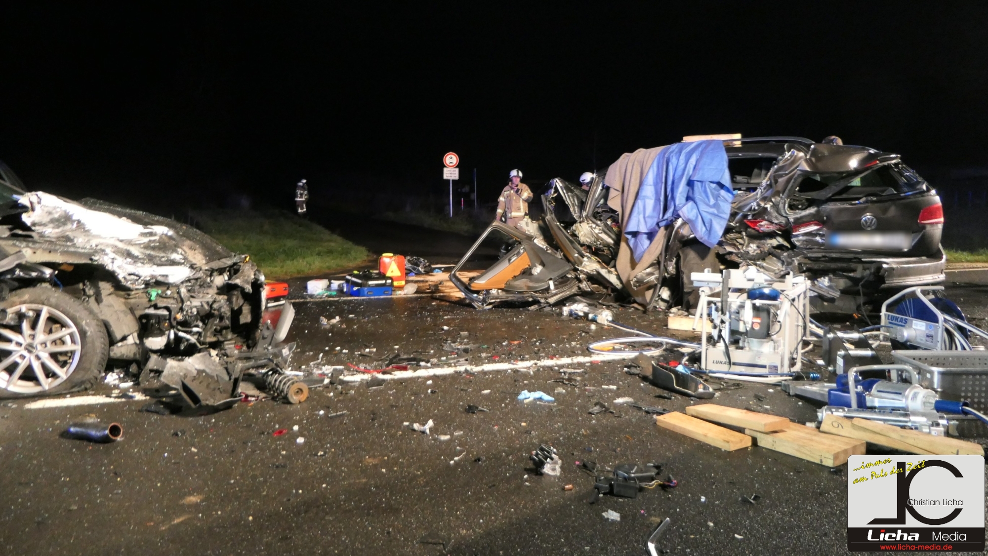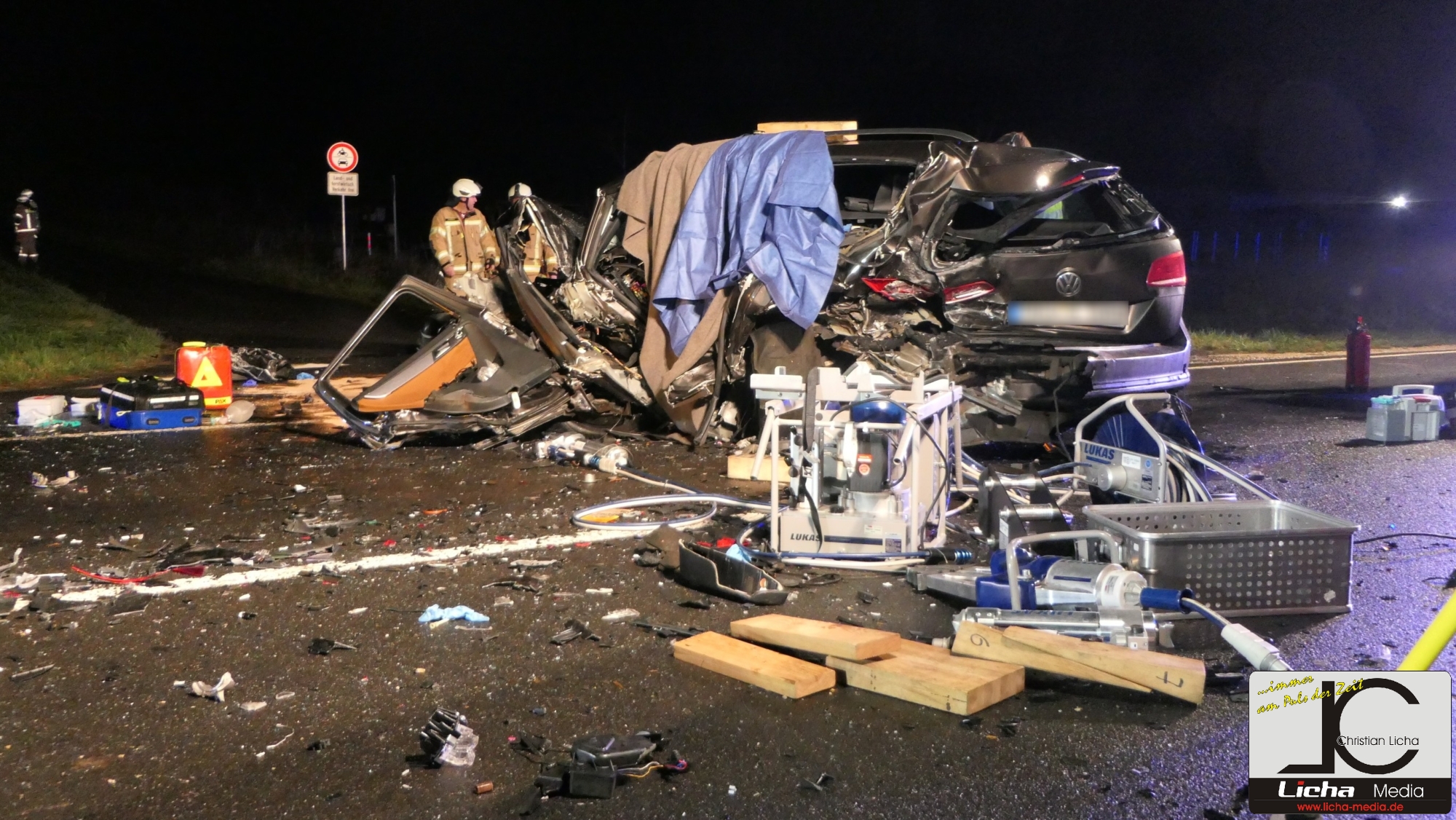Mit rund 80 Einsatzkräften waren die Feuerwehren aus Ebelsbach, Eltmann, Steinbach und Ziegelanger nach der Alarmierung durch die Integrierte Leitstelle (ILS) Schweinfurt schnell an der Unfallstelle. Parallel arbeiteten die Ebelsbacher und die Eltmanner Wehren mit zwei hydraulischen Rettungssätzen, um die eingeklemmten Fahrer zu befreien. Beim Golf-Fahrer gelang dies sofort. Der Passat-Fahrer war jedoch massiv eingeklemmt, wie Ebelsbachs Kommandant und Einsatzleiter Sascha Schöpplein sowie sein Stellvertreter Dominik Mauer erklärten. Es gelang zwar dem Rettungsdienst, einen Zugang zum Fahrzeug zu schaffen, doch trotz aller Bemühungen und einer Reanimation verstarb der 49-Jährige noch im Wrack seines Autos. Die beiden anderen Unfallbeteiligten wurden schwer verletzt in Krankenhäuser eingeliefert. Nach Angaben der Polizei bestand zumindest für sie keine Lebensgefahr.
