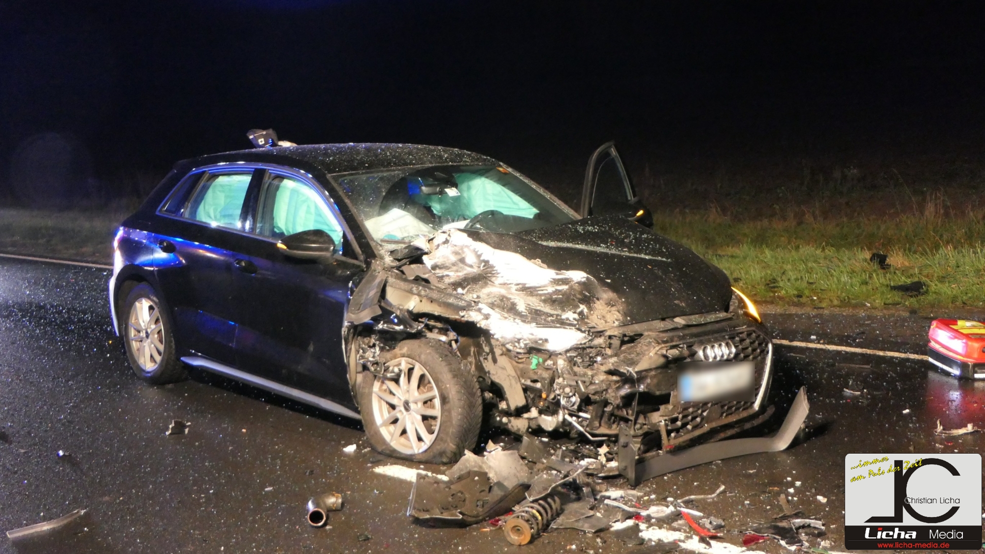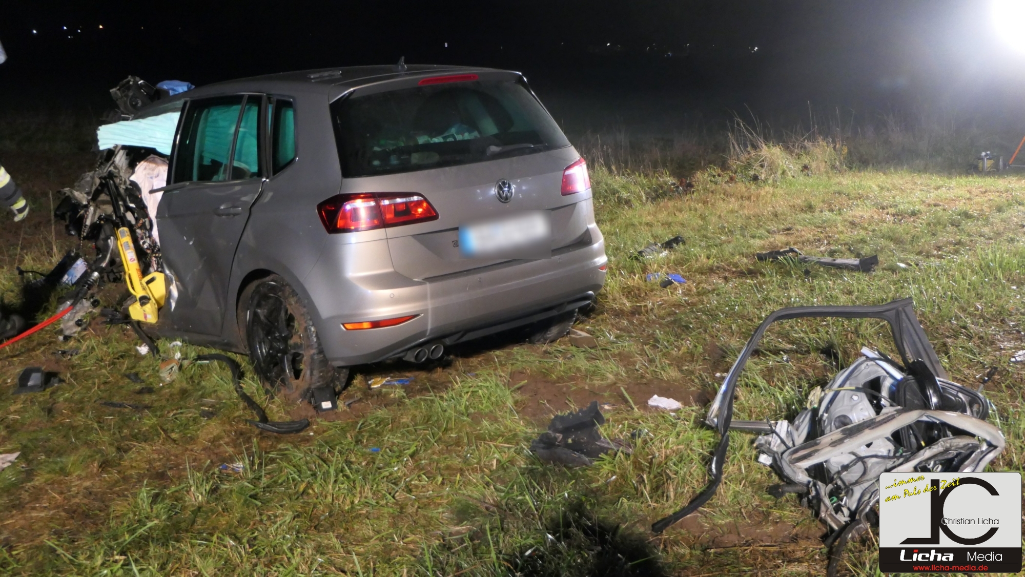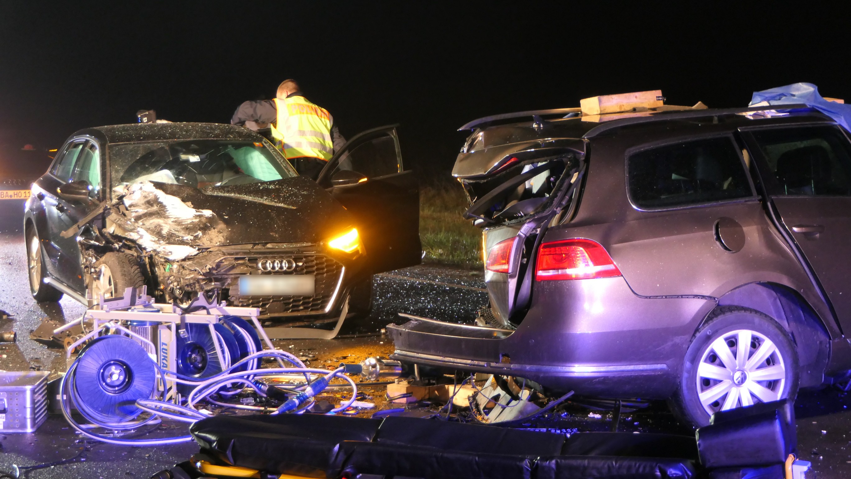 Kurz nach 17.45 Uhr befuhr ein 49-Jähriger aus dem Landkreis Haßberge die Staatsstraße in Richtung Haßfurt. Etwa einen Kilometer nach dem Ebelsbacher Ortsausgang geriet er aus bislang ungeklärter Ursache mit seinem VW Passat auf die Gegenfahrbahn. Dort stieß er frontal mit einem im Landkreis Bamberg angemeldeten VW Golf eines 48-jährigen Mannes zusammen. Durch die Wucht des Aufpralls wurde der Golf die Böschung hinab in ein angrenzendes Feld geschleudert. Ein 47-jähriger Mann, der mit seinem Audi mit Schweinfurter Zulassung hinter dem Golf unterwegs war, konnte nicht mehr ausweichen und kollidierte ebenfalls mit dem Passat. Der Passat-Fahrer und der Golf-Fahrer wurden in ihren Fahrzeugen eingeklemmt.