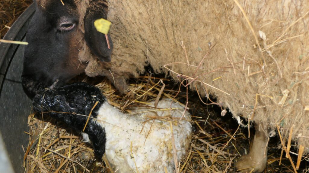Es muss gegen drei Uhr morgens gewesen sein, schätzt Michaela von der Linden. Als sie später den Stall betrat, war Fridolin bereits geboren. Das Mutterschaf hatte sich, wie so oft, unauffällig von der Herde zurückgezogen. Die Geburt von Lämmern verläuft meist ganz ruhig und ohne Hilfe. Mal dauert es nur wenige Minuten, manchmal mehrere Stunden. In den vergangenen Wochen mit rund 70 Lammungen musste Michaela von der Linden nur zweimal eingreifen. Auch diesmal lief alles komplikationslos. Und schon am 2. Januar folgte das nächste Lämmchen, geboren von einem anderen Mutterschaf. Zwar bringen Schafe in der Regel ein Junges zur Welt, doch Zwillinge sind auf dem Hof ebenfalls keine Seltenheit.