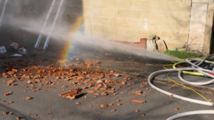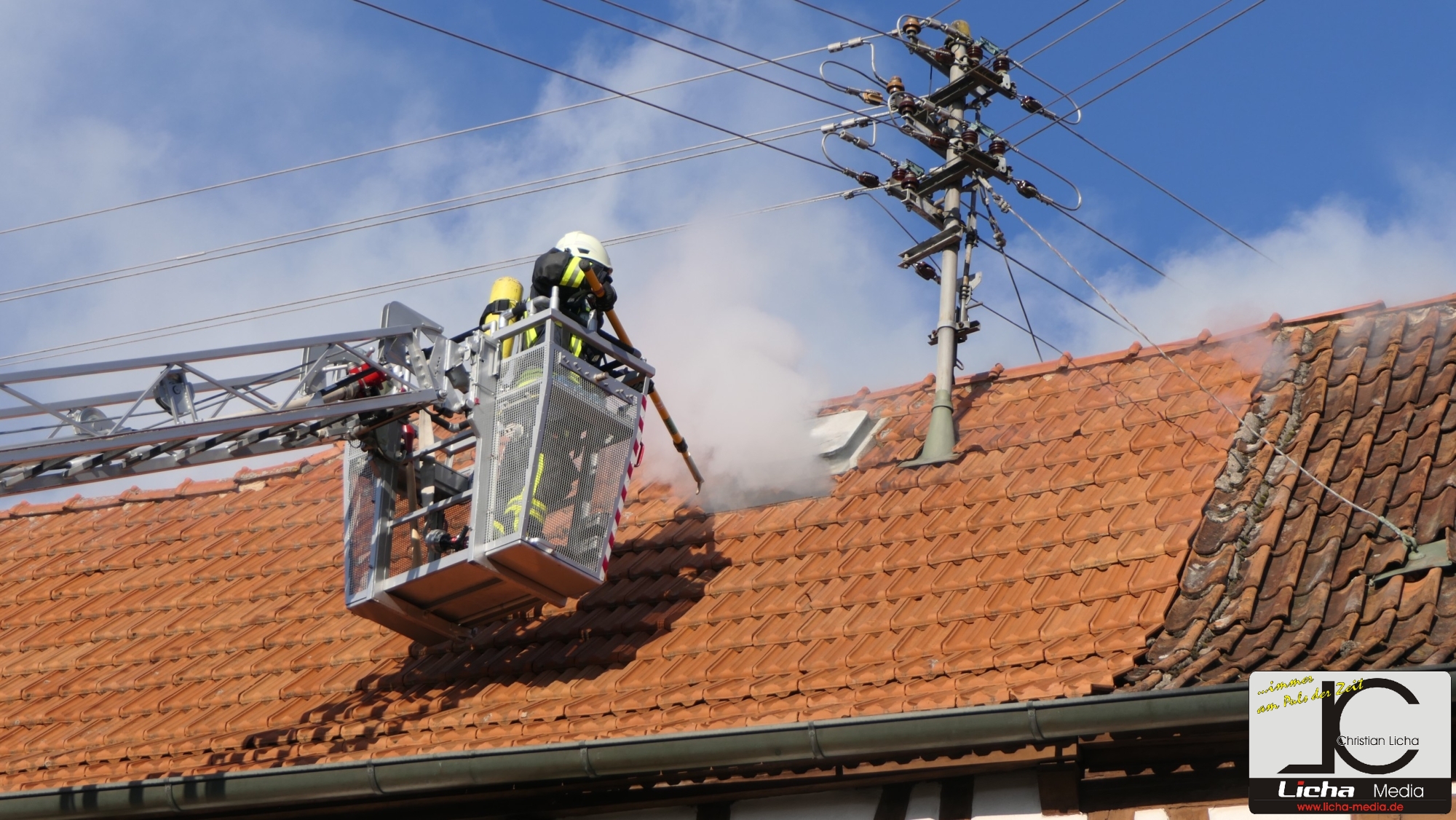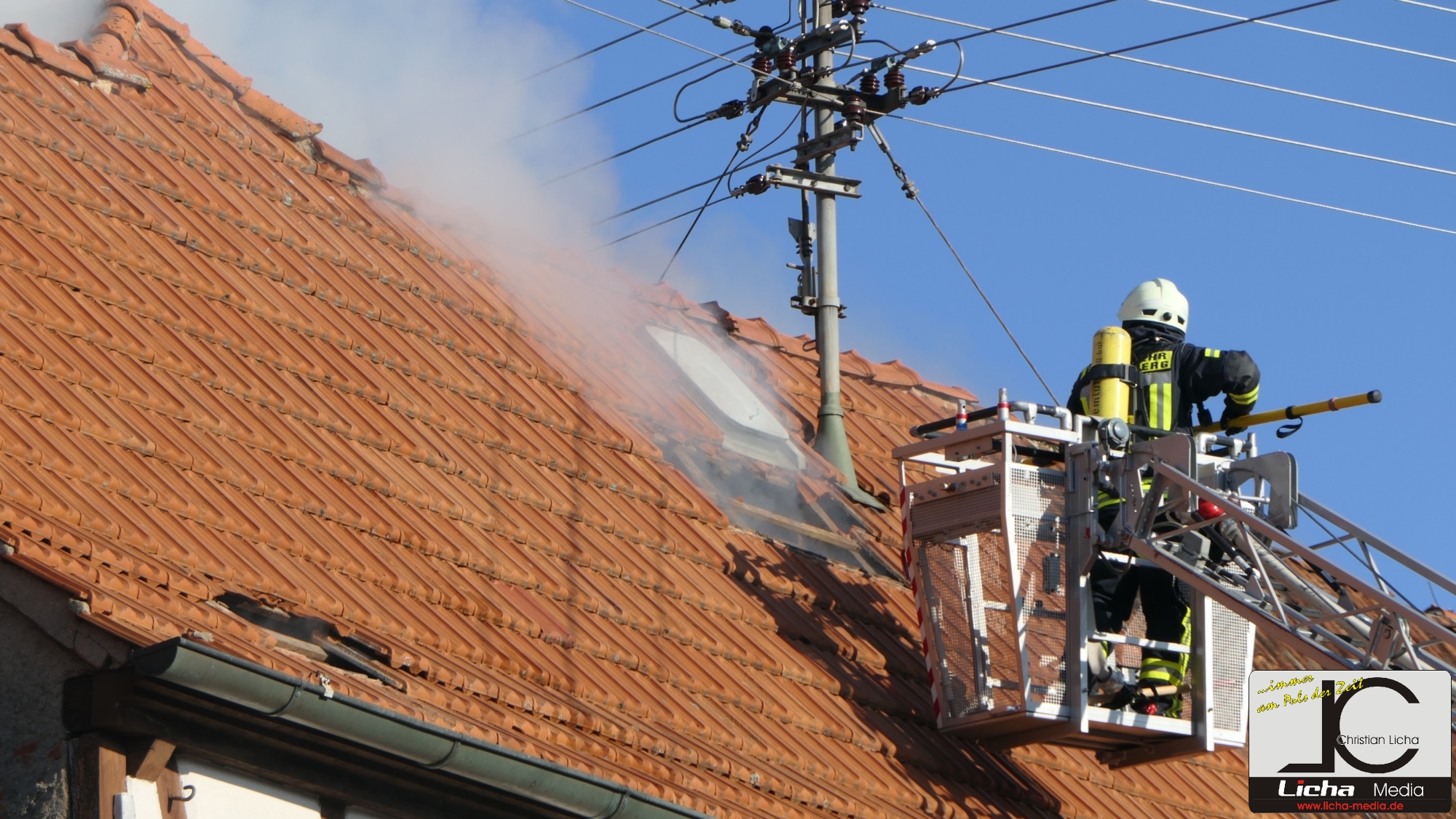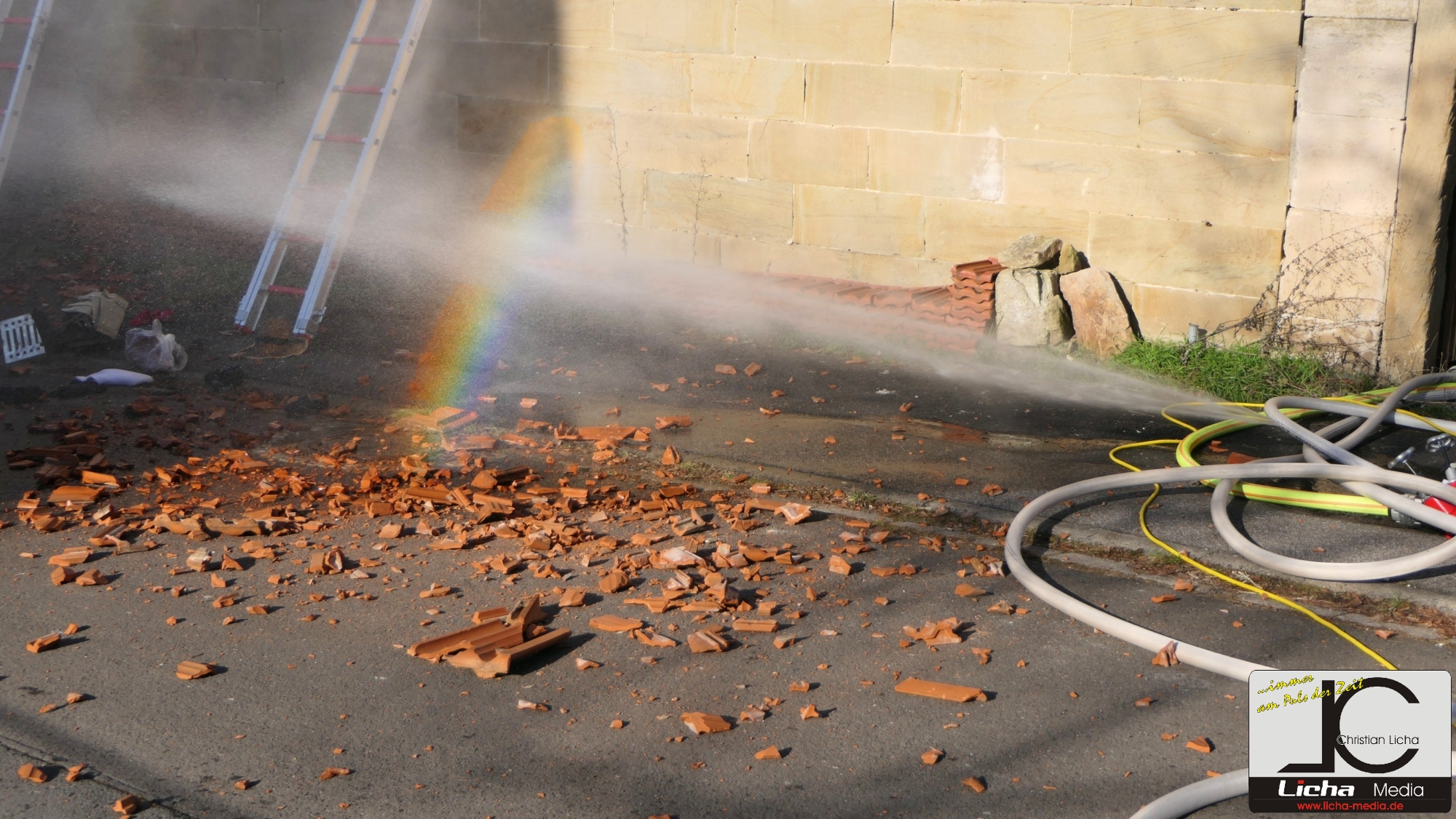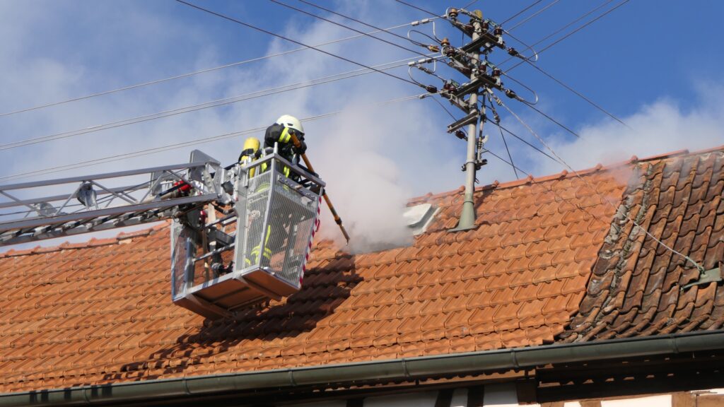 Auch die Dachziegel mussten teilweise abgedeckt werden, um an die Glutnester zu kommen. Foto: © Christian Licha