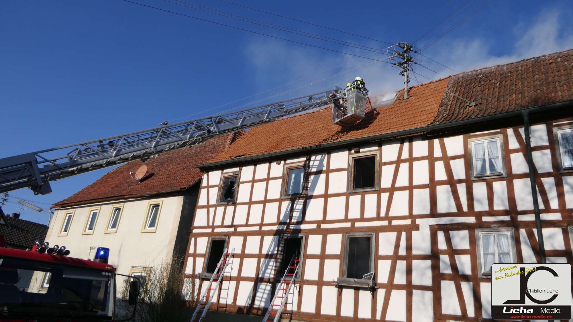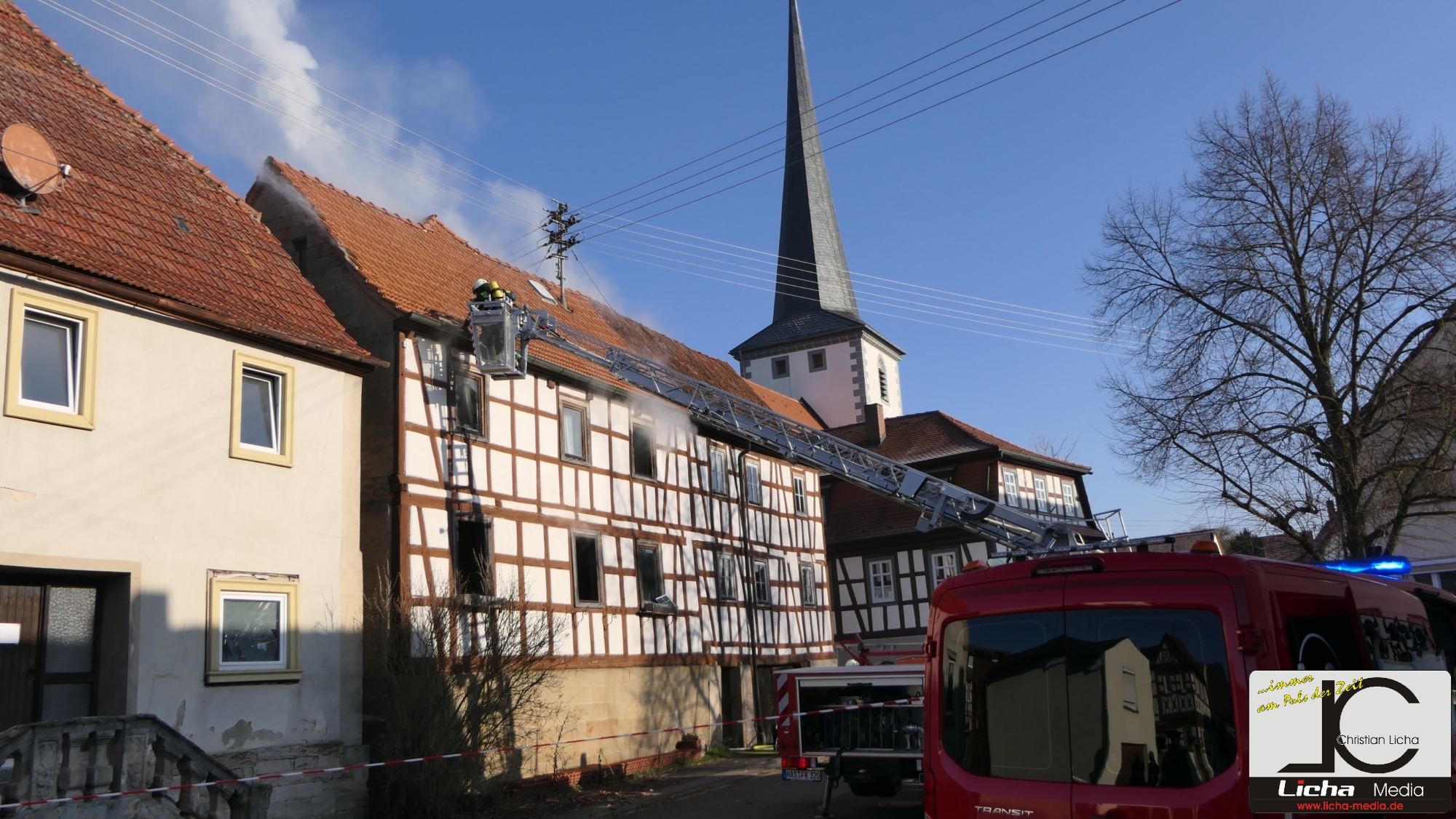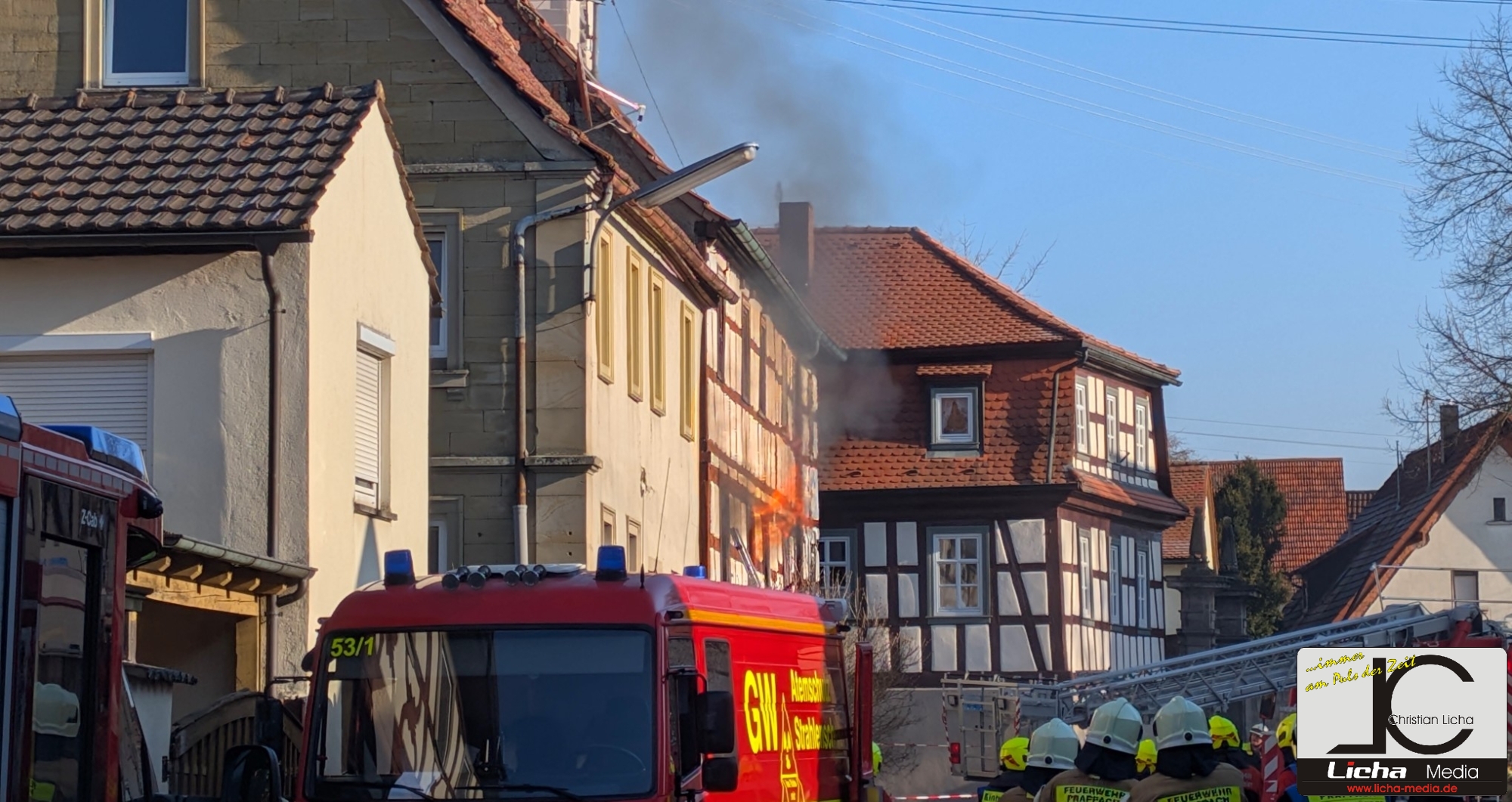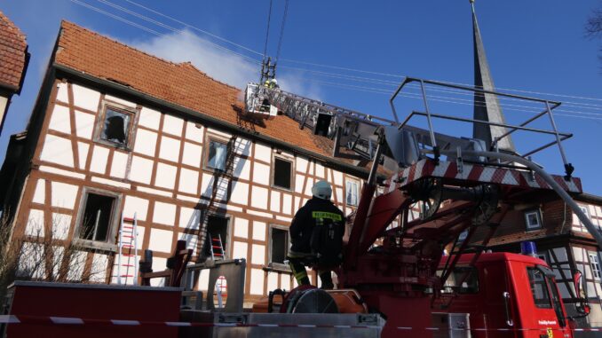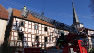 [FOTOS] Großeinsatz: Brand in Fachwerkhaus fordert Feuerwehr über Stunden