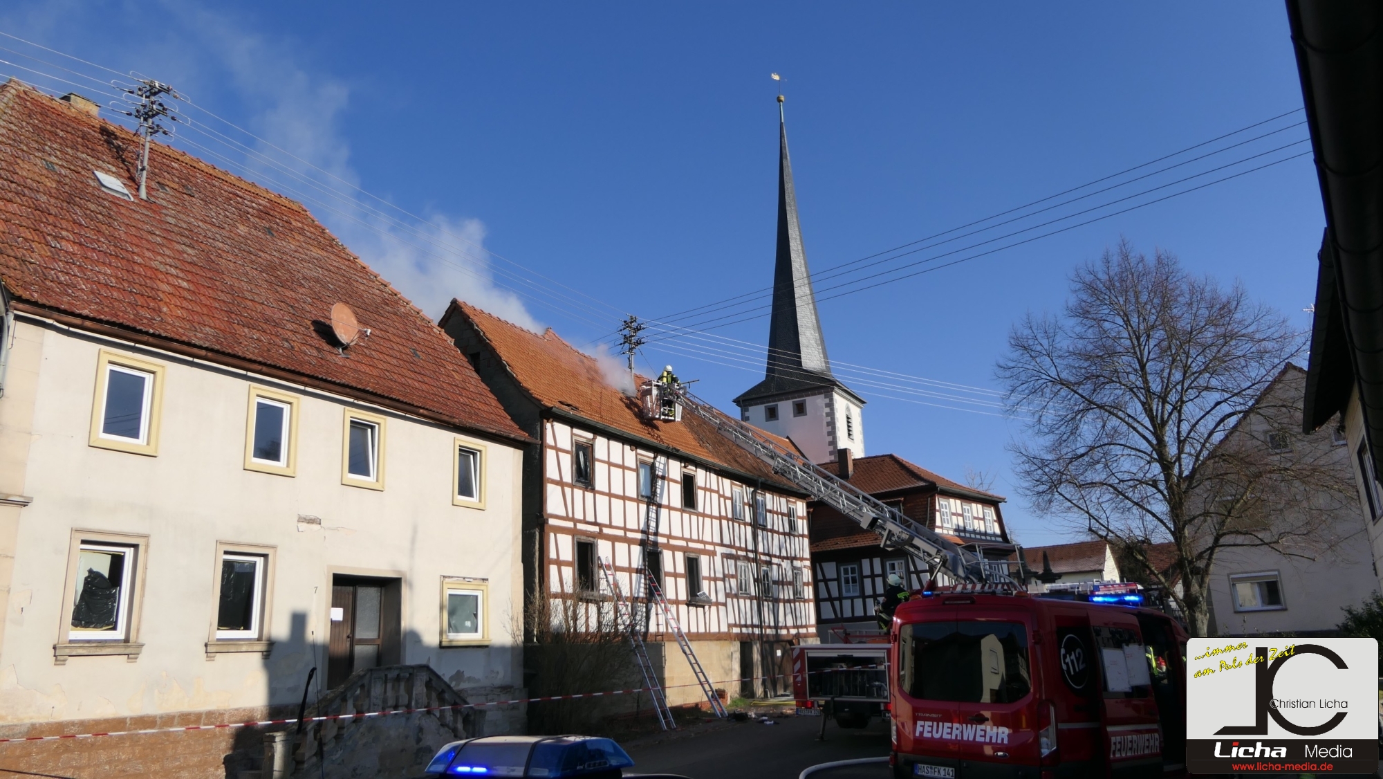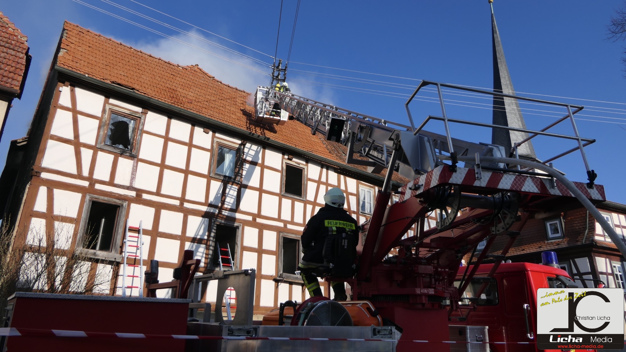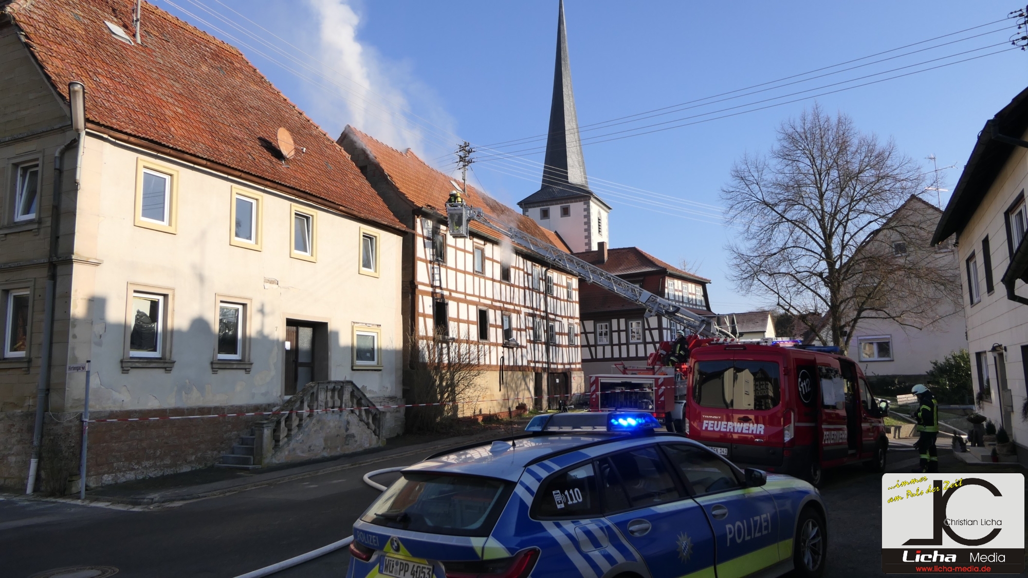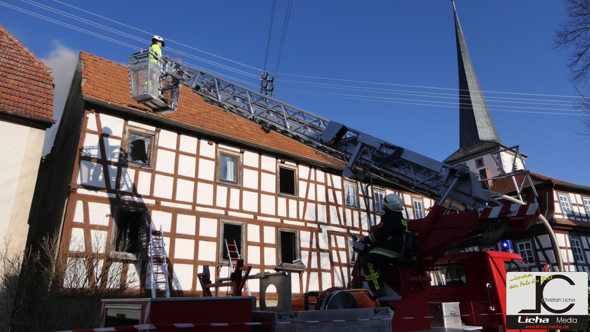 [FOTOS] Großeinsatz: Brand in Fachwerkhaus fordert Feuerwehr über Stunden