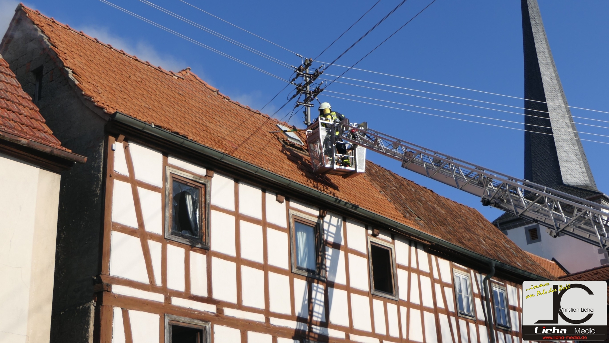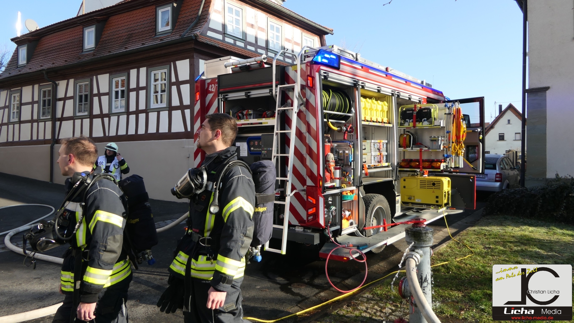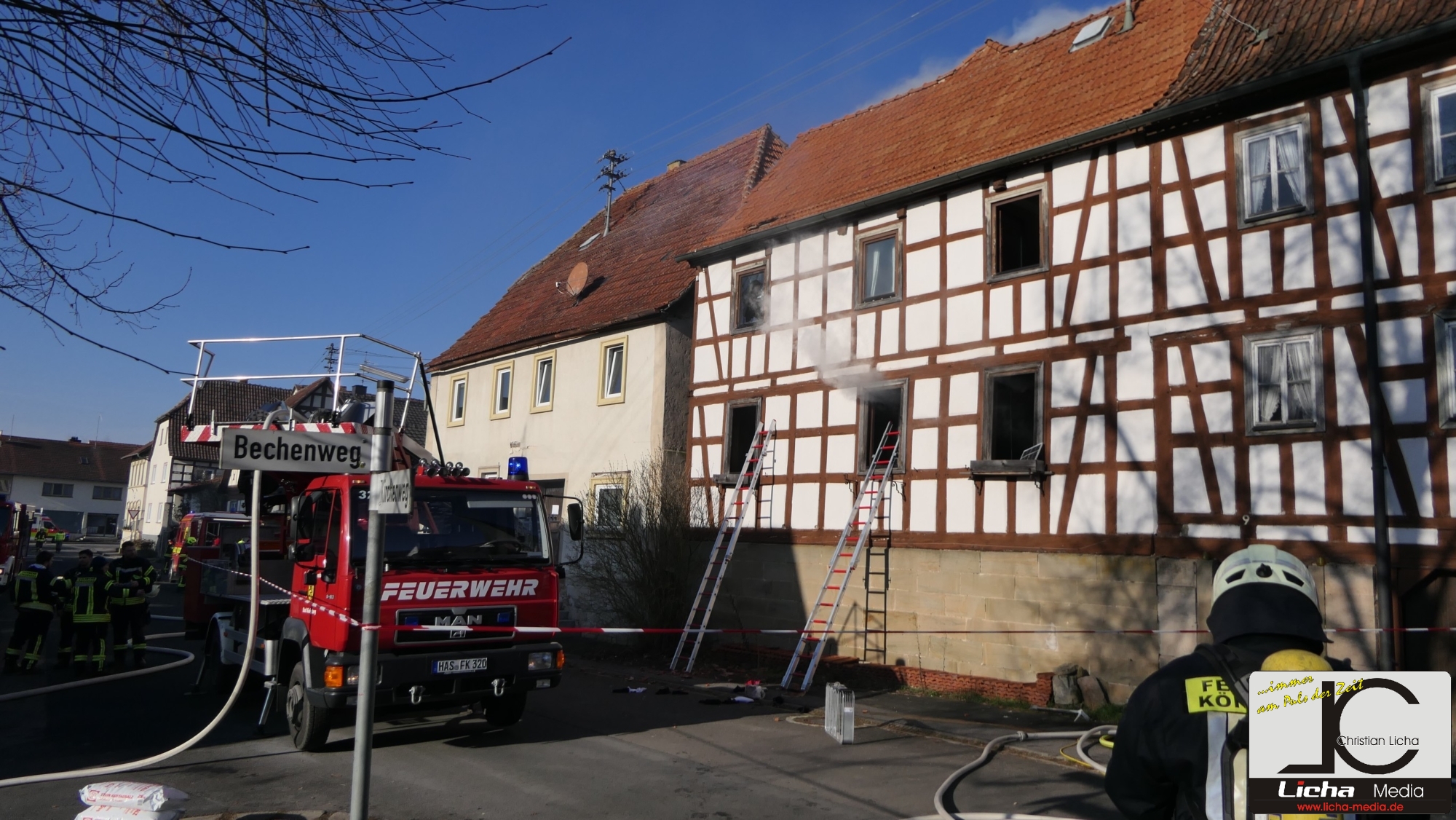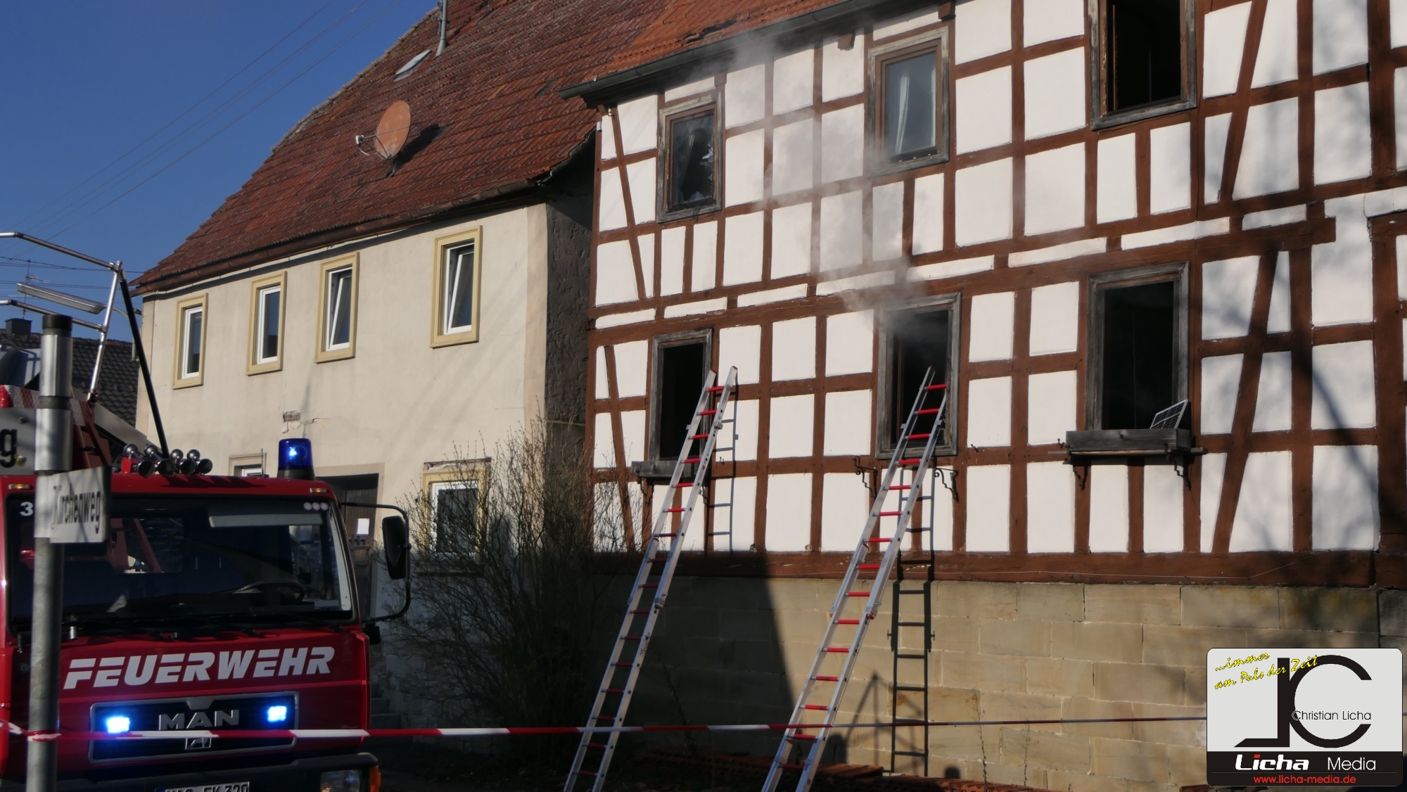 [FOTOS] Großeinsatz: Brand in Fachwerkhaus fordert Feuerwehr über Stunden