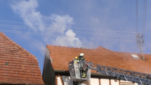 Kurz vor 10.15 Uhr wurde eine aufmerksame Nachbarin auf die starke Rauchentwicklung aufmerksam und setzte einen Notruf ab. Die Integrierte Leitstelle (ILS) Schweinfurt alarmierte daraufhin die Feuerwehren aus Hellingen und Königsberg. Bereits kurz nach dem Eintreffen war für Kommandant und Kreisbrandmeister Peter Schüler klar, dass der Brand überwiegend im Innenangriff bekämpft werden musste. „Um ausreichend Atemschutzgeräteträger vor Ort zu haben, ließen wir die Feuerwehren Haßfurt und Prappach nachalarmieren“, erklärte der Einsatzleiter. Zusätzlich stellte die Feuerwehr Sand mit ihrem Gerätewagen Atemschutz sicher, dass genügend frische Atemluftflaschen zur Verfügung standen.