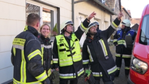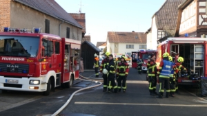 Der stellvertretende Kommandant Alexander Schüler berichtete, dass der Brand vermutlich im Erdgeschoss etwa in der Mitte des Hauses ausgebrochen sei. Von dort habe sich das Feuer zwischen Kamin und Wand über den ersten Stock bis in den Dachstuhl ausgebreitet. Besonders problematisch waren dabei versteckte Glutnester in sogenannten Fehlböden. Dabei handelt es sich um Zwischenräume in Fachwerkhäusern, die traditionell mit Lehm und Stroh gefüllt und in diesem Fall zusätzlich mit Rigipsplatten verkleidet sind, was den Zugang für die Feuerwehr erheblich erschwert. Immer wieder loderten während des Einsatzes Flammen auf und schlugen teilweise aus den Fenstern. Eine weitere Gefahr stellte sich im Gebäudeinneren dar: Insgesamt vier teils volle Gasflaschen befanden sich im Haus. Diese wurden von der Feuerwehr umgehend ins Freie gebracht und dort gekühlt. Durch die frühe Alarmierung und das schnelle Eingreifen konnte außerdem verhindert werden, dass der Brand auf eine rückwärtig angebaute Holzscheune übergriff.