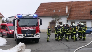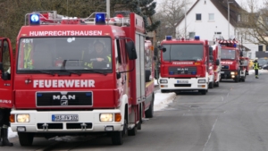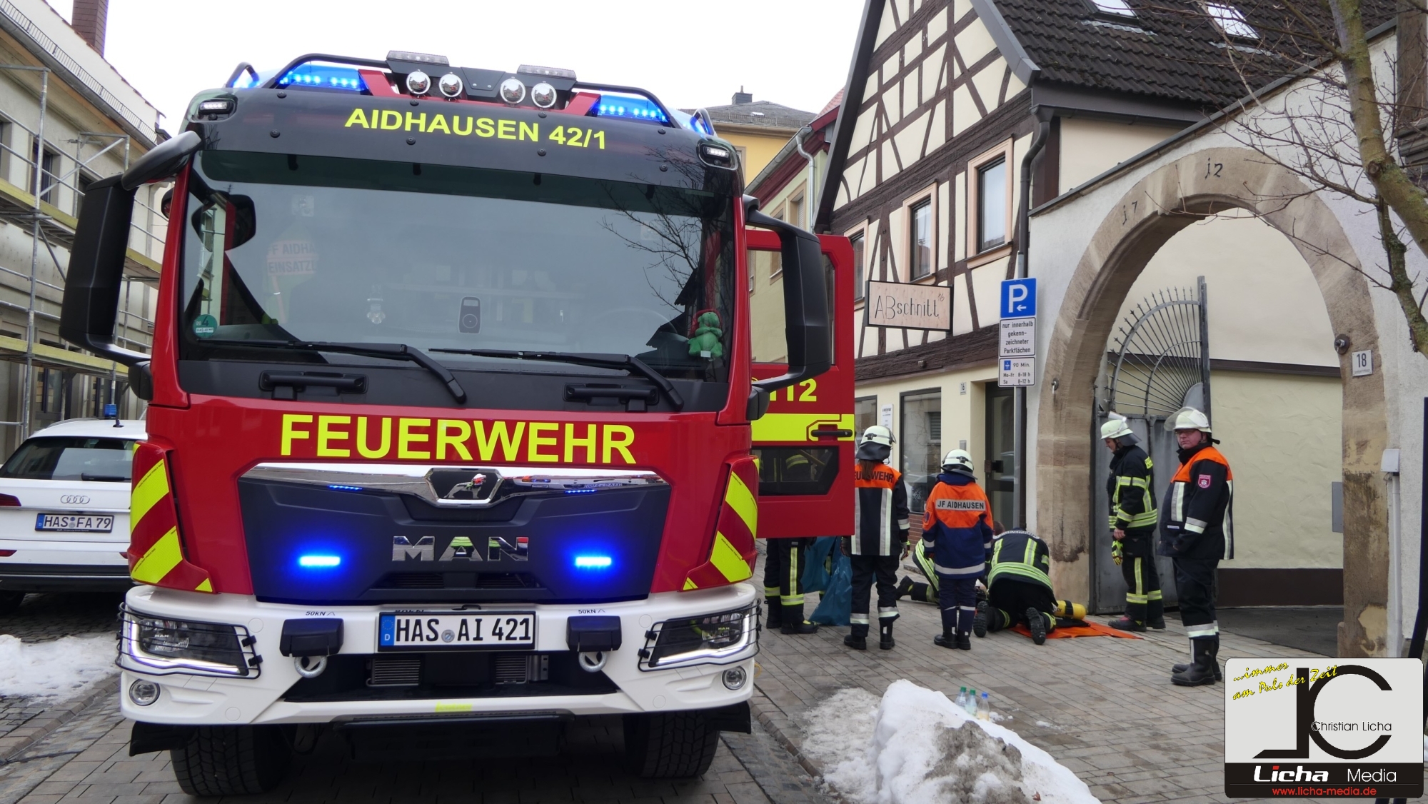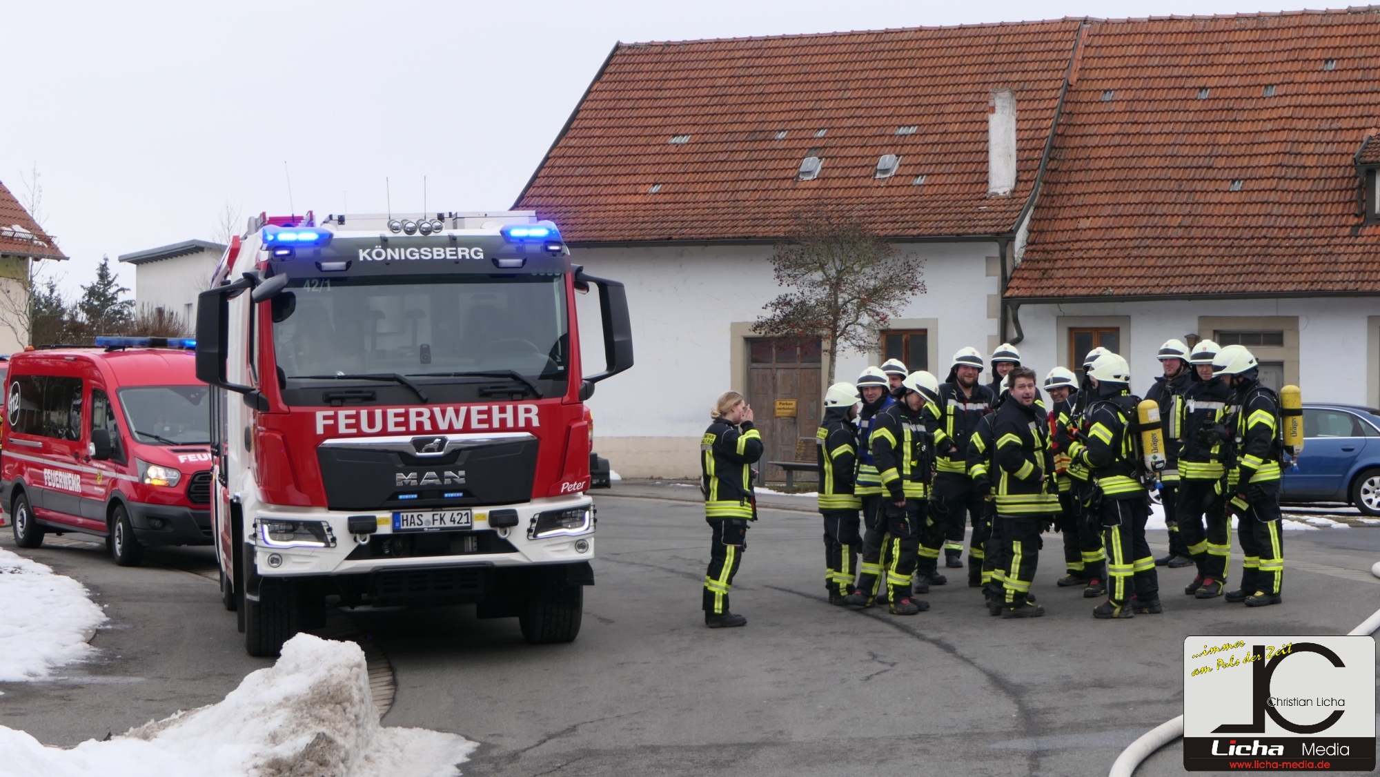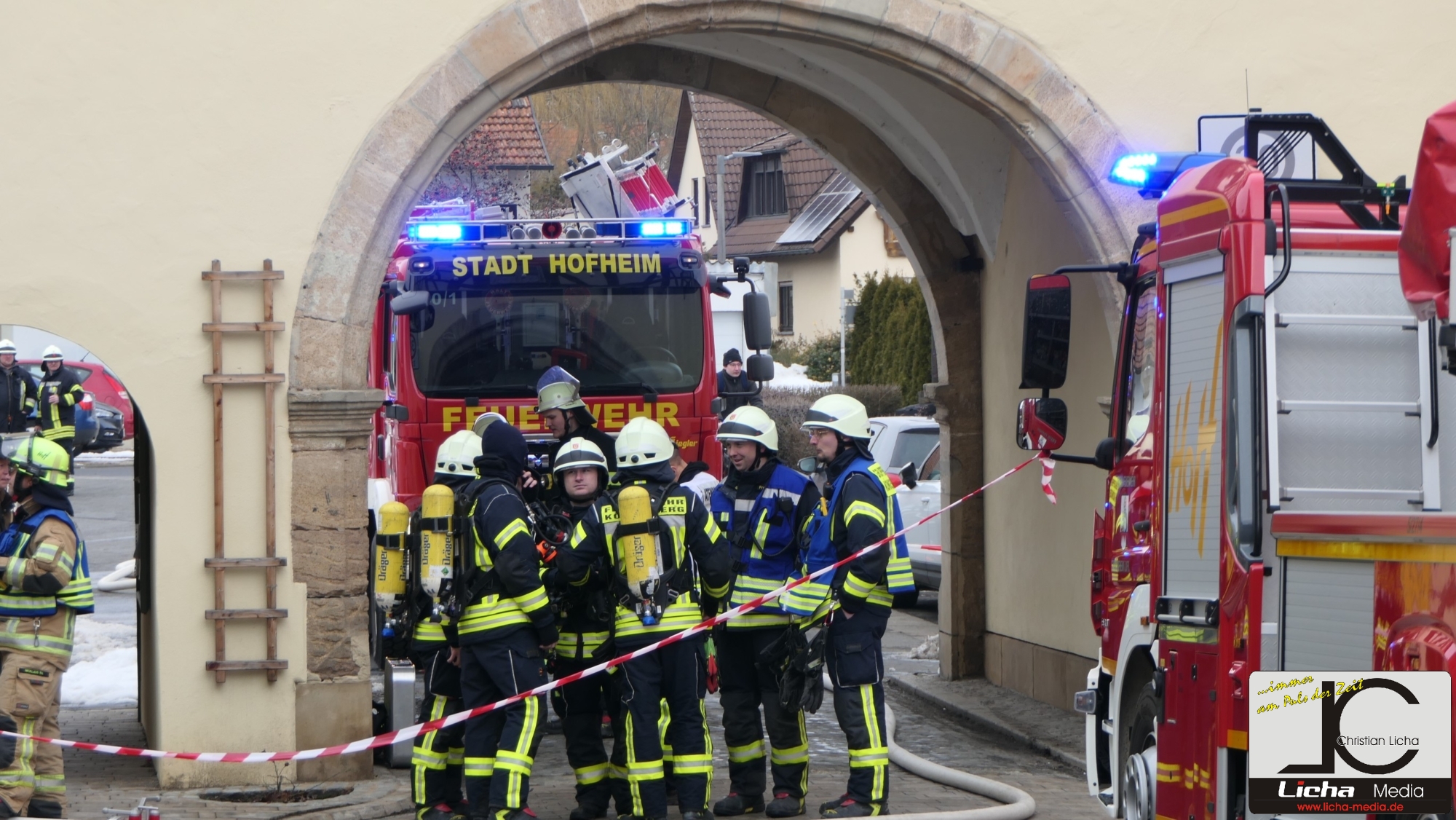 Kurz nach 10.30 Uhr alarmierte die Integrierte Leitstelle (ILS) Schweinfurt nach einem Notruf zunächst mit dem Einsatzstichwort B3 die Feuerwehren aus Hofheim, Aidhausen und Friesenhausen. Wenig später wurde die Alarmstufe auf B4 erhöht, da nicht ausgeschlossen werden konnte, dass sich das Feuer weiter ausbreitet und auf den Dachstuhl übergreift. In der Folge wurden auch die Feuerwehren aus Königsberg, Humprechtshausen und Mechenried nachalarmiert. Vorsorglich wurde zudem das direkt angrenzende Nachbargebäude evakuiert. Dieses Szenario trat jedoch nicht ein.