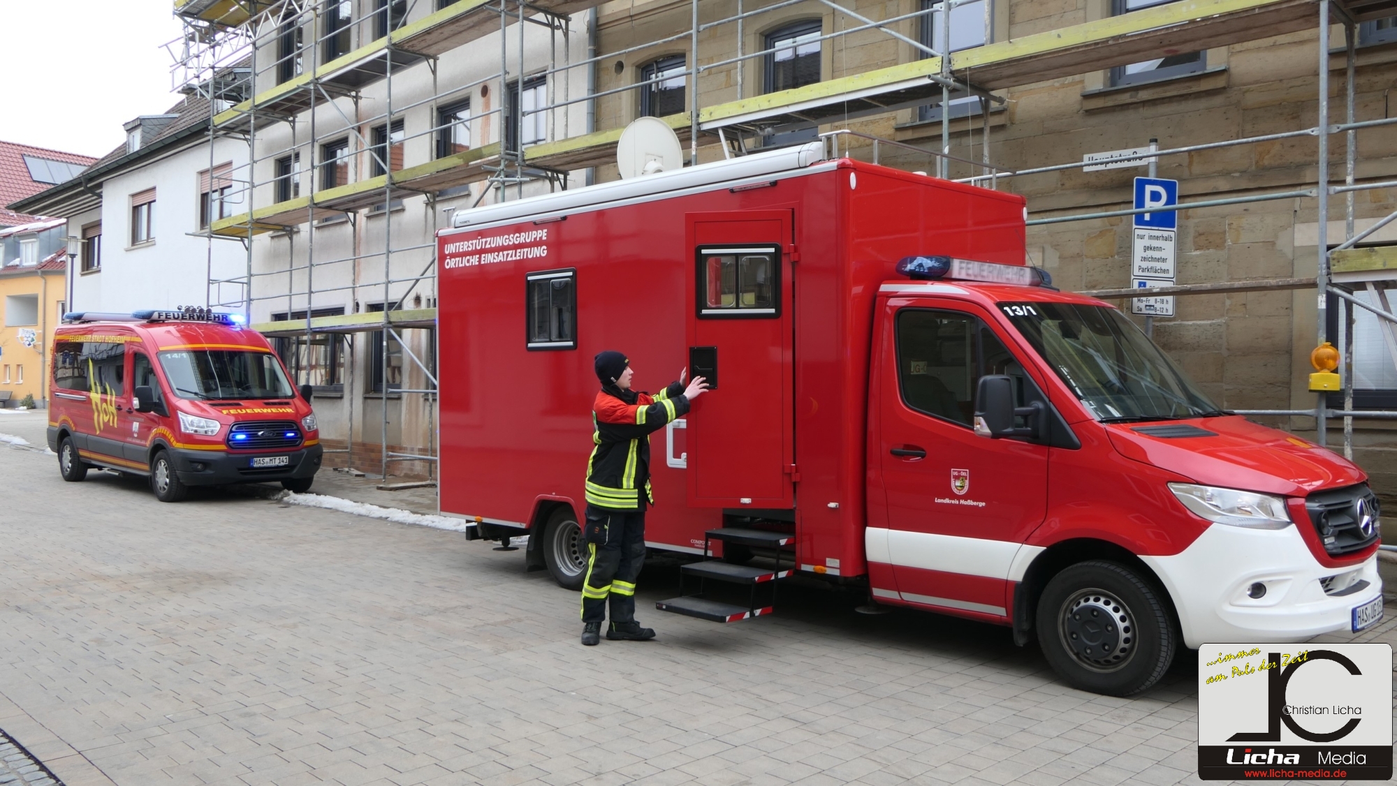 Zusätzlich kamen der Gerätewagen Atemschutz der Feuerwehr Sand zur Versorgung mit frischen Atemluftflaschen, die Fachberater des Technischen Hilfswerks Haßfurt sowie die Unterstützungsgruppe Örtliche Einsatzleitung (UG-ÖEL) zum Einsatz. Gemeinsam mit Rettungsdienst und Polizei waren über 100 Einsatzkräfte vor Ort. Die Einsatzleitung wurde außerdem von Kreisbrandrat Ralf Dressel und Kreisbrandinspektor Andreas Franz unterstützt.