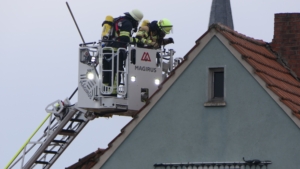 „Bei unserem Eintreffen befand sich noch eine Person im Gebäude, die wir zügig aus dem Haus retten und ins Freie bringen konnten“, berichtete Einsatzleiter Holger Eiring. Der Mann blieb glücklicherweise unverletzt. Das Feuer hatte sich vom ersten Obergeschoss bereits in Richtung Dachgeschoss ausgedehnt. Auch über das Treppenhaus schlugen beim Vorgehen der ersten Atemschutztrupps Flammen in Richtung Erdgeschoss.