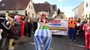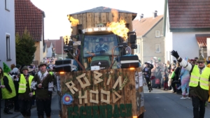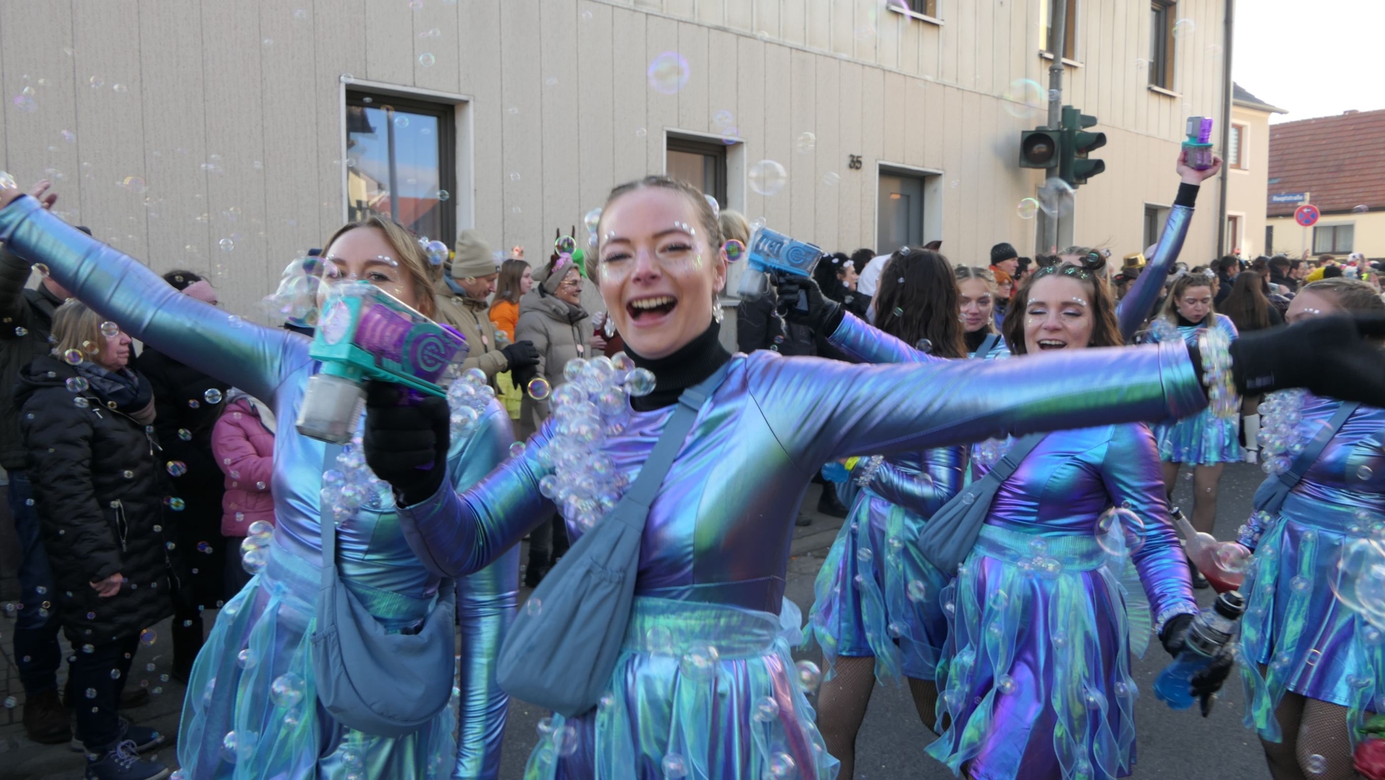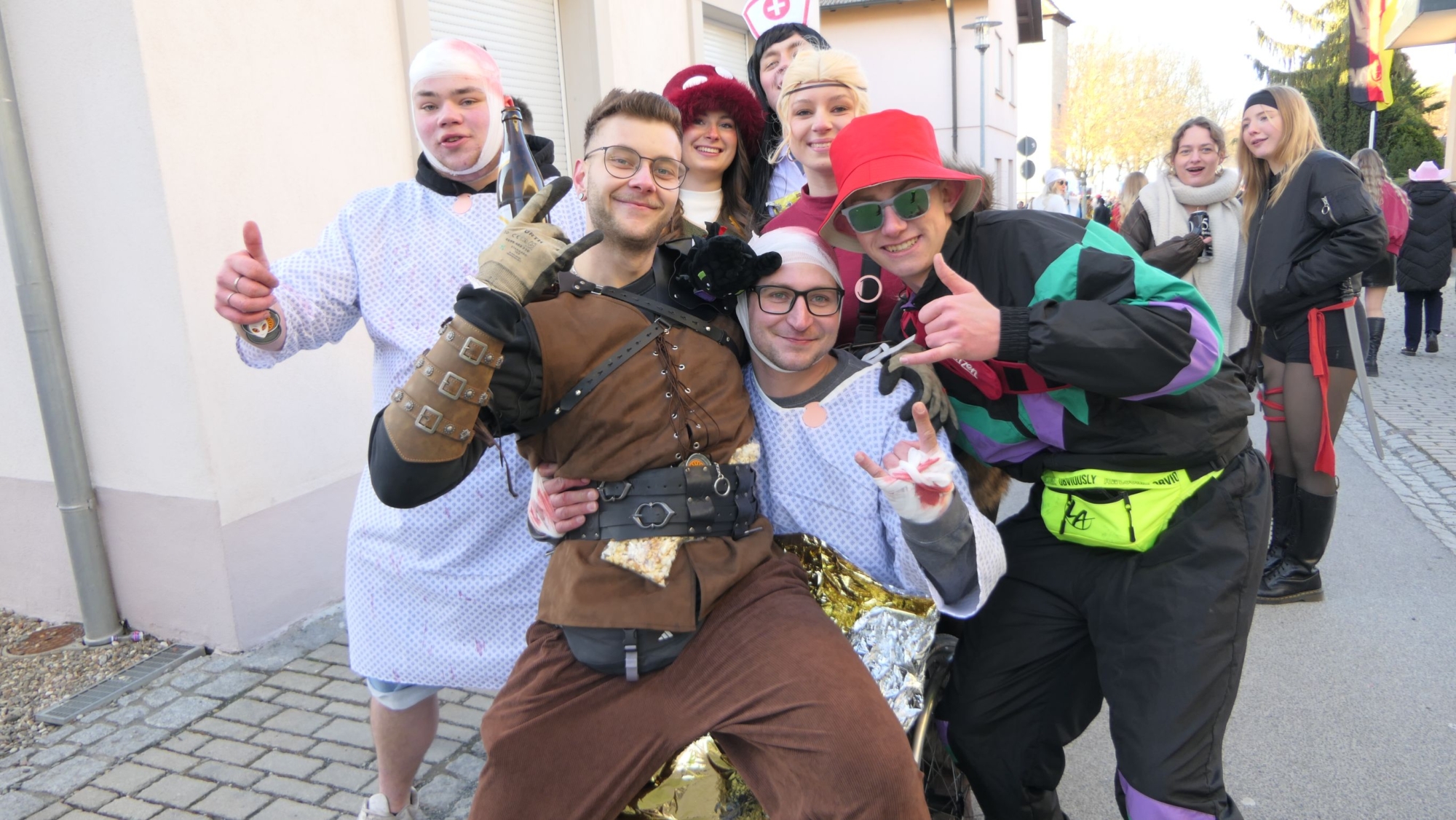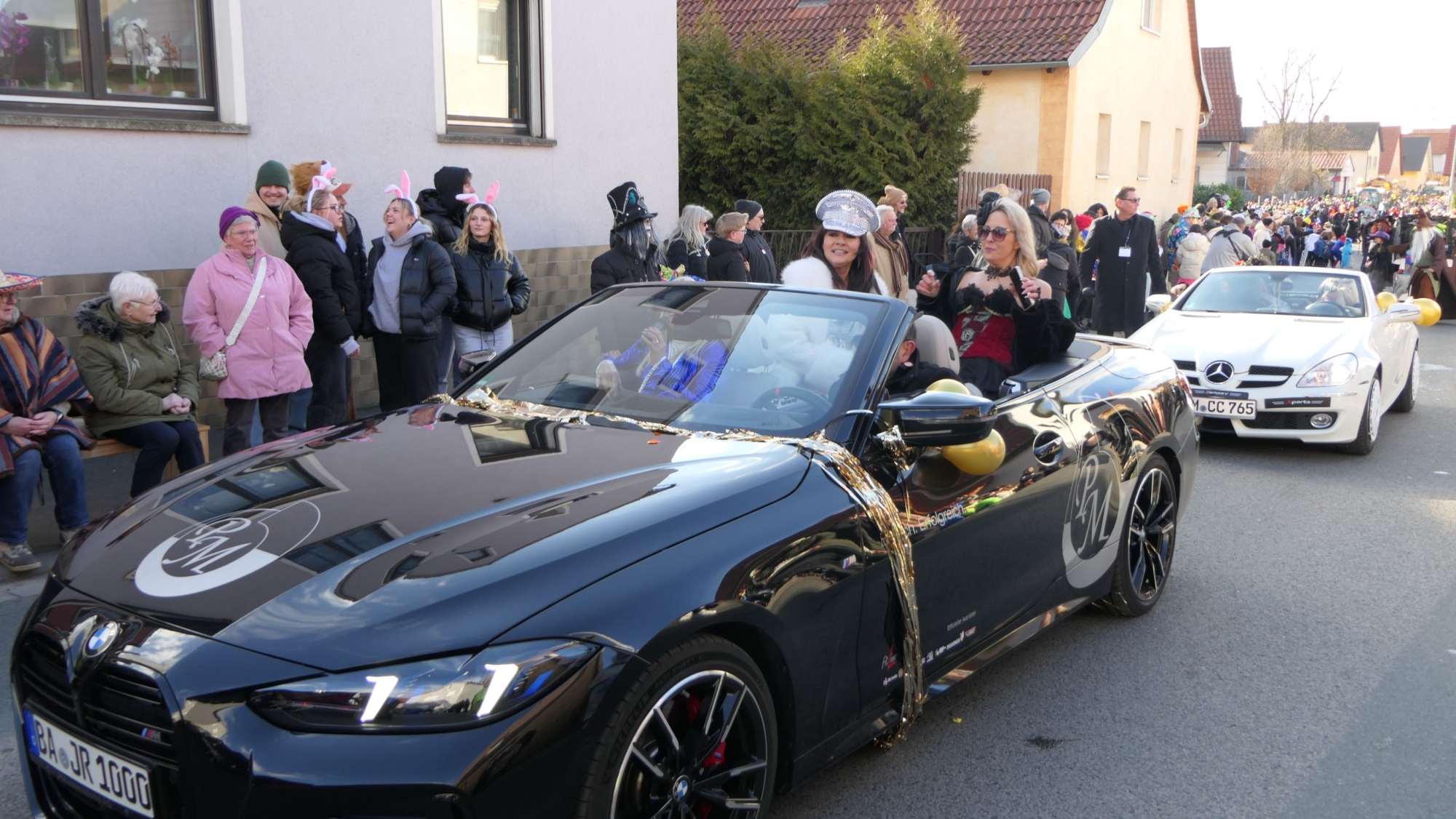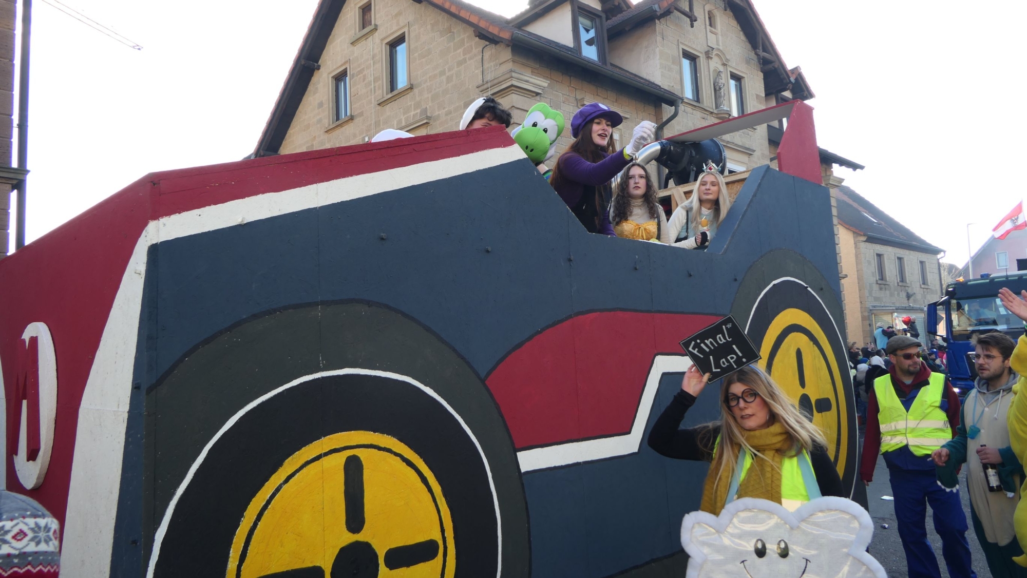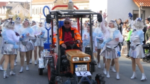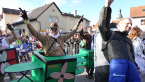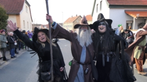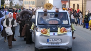 Auch politische Akzente waren im Zug zu finden. Die Junge Liste Haßberge nutzte den Faschingszug für Wahlwerbung und trat als „Greisräte“ mit Rollatoren auf. Ihre Botschaft: Mehr junge Menschen sollen künftig im Kreistag das Sagen haben.