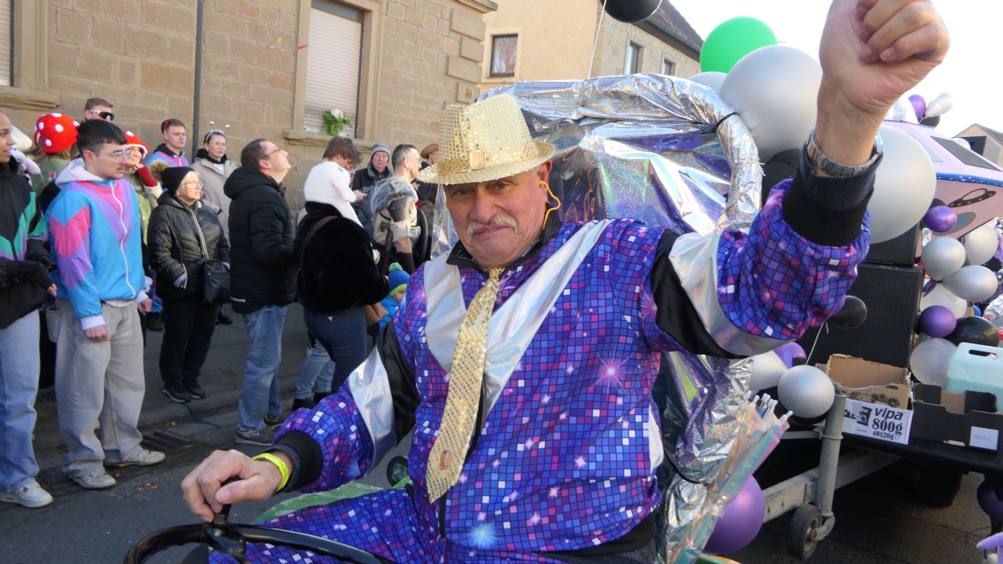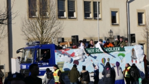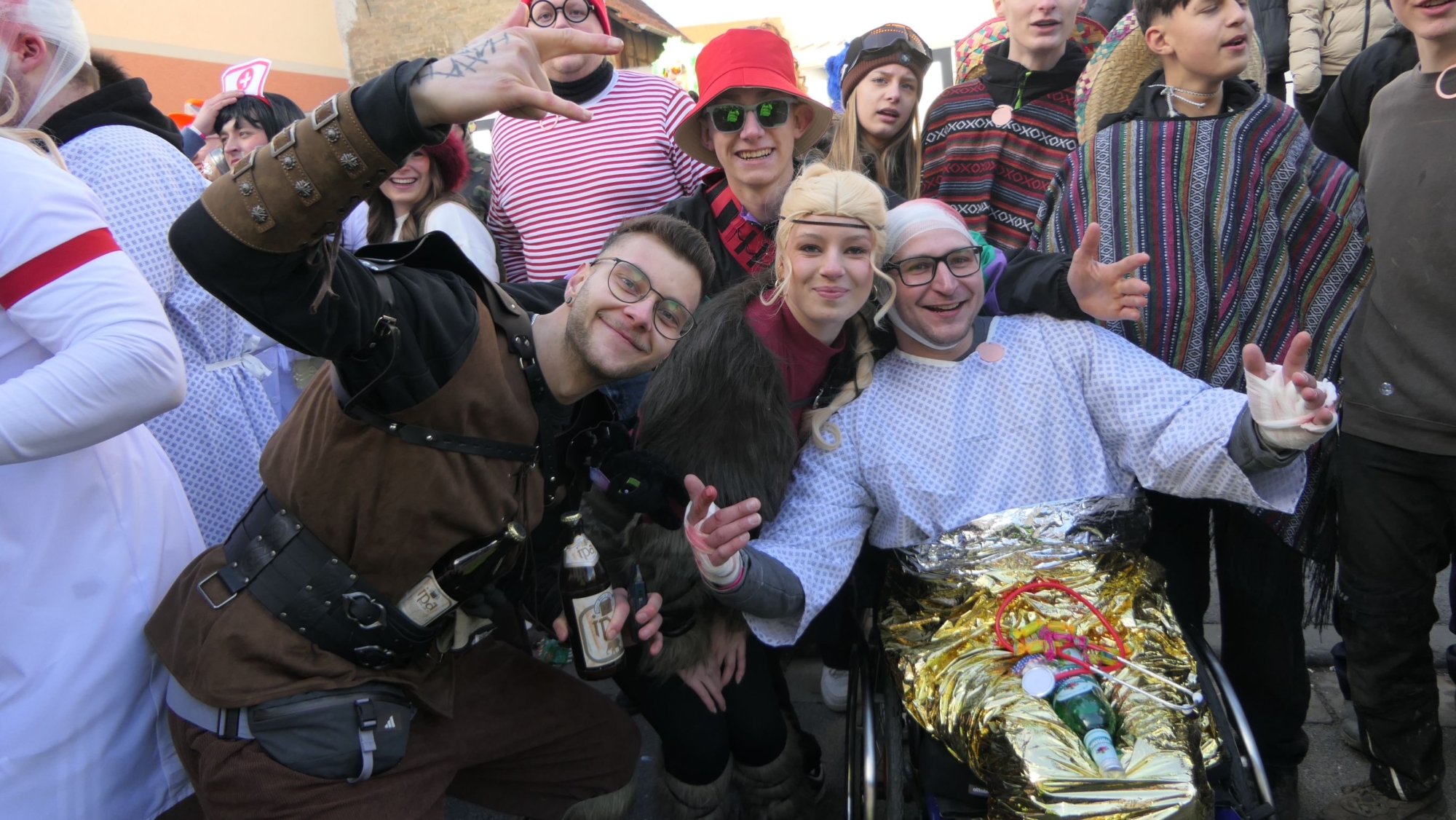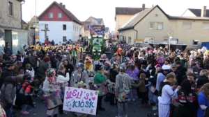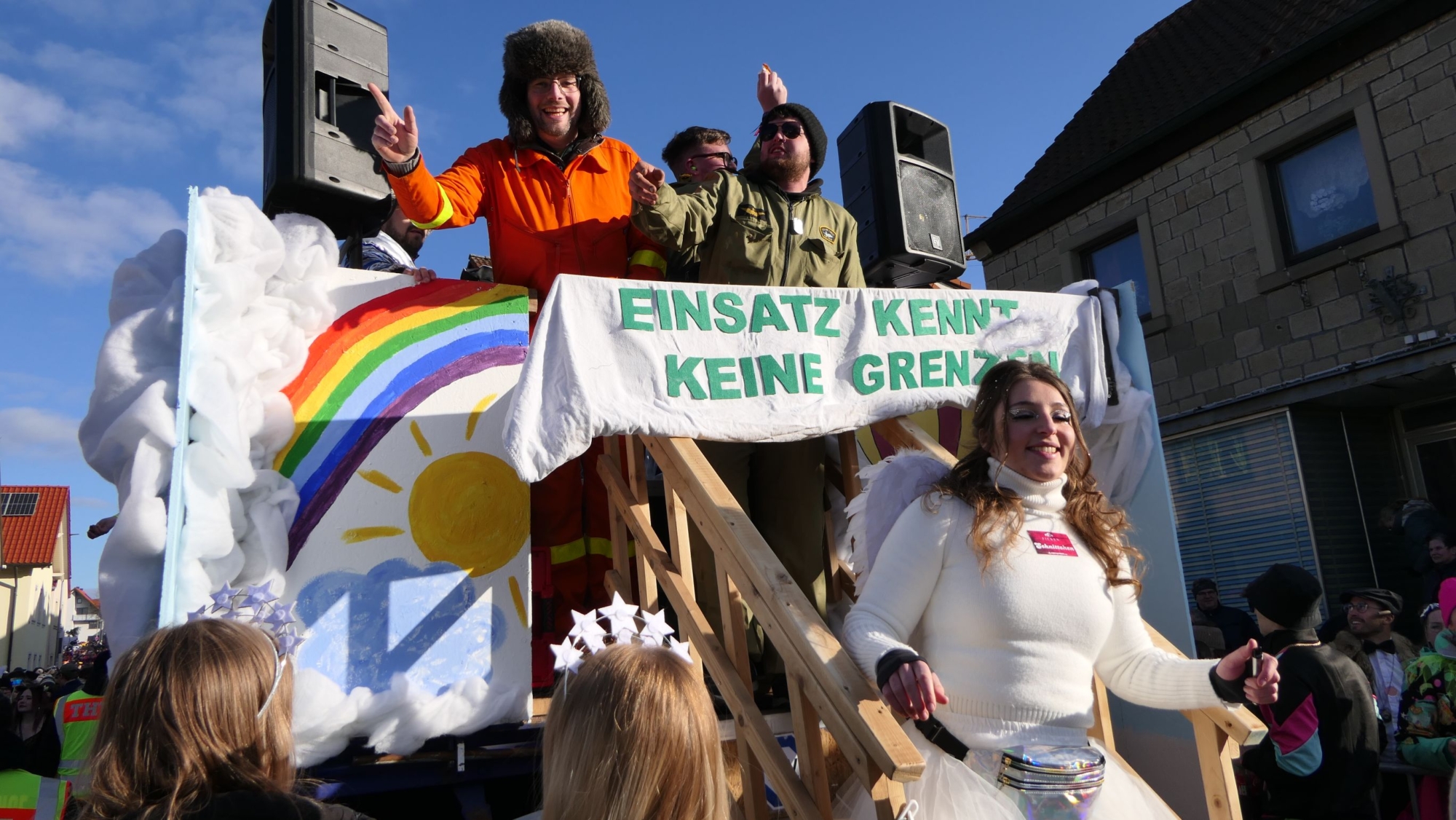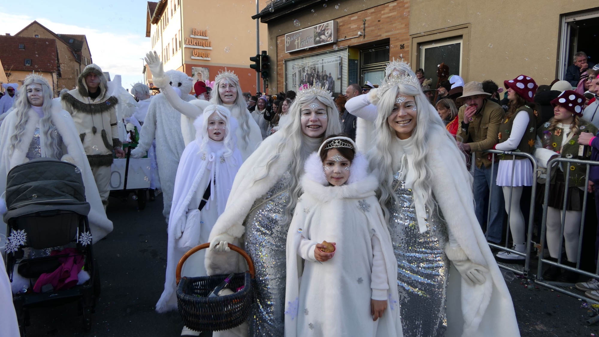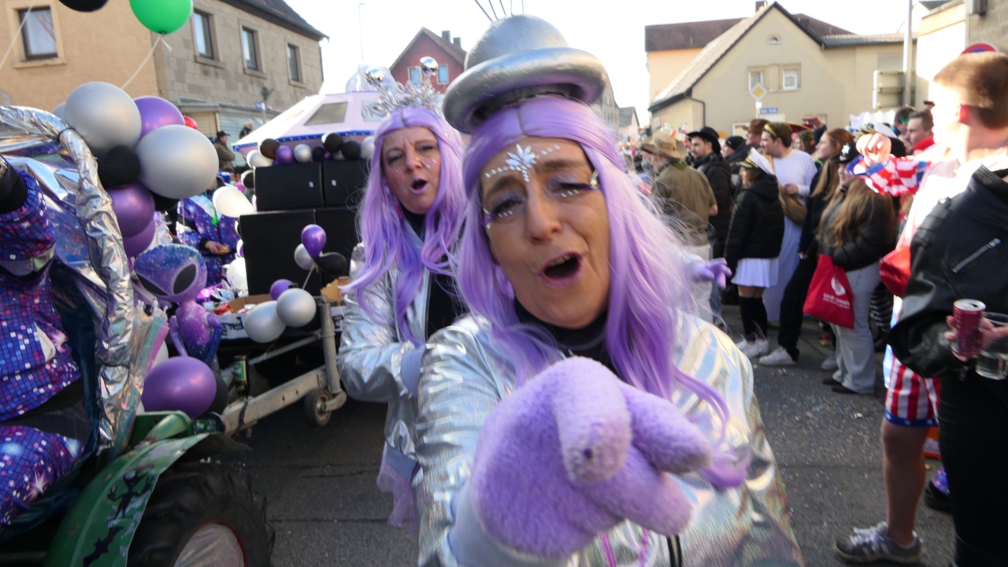 Auch politische Akzente waren im Zug zu finden. Die Junge Liste Haßberge nutzte den Faschingszug für Wahlwerbung und trat als „Greisräte“ mit Rollatoren auf. Ihre Botschaft: Mehr junge Menschen sollen künftig im Kreistag das Sagen haben.