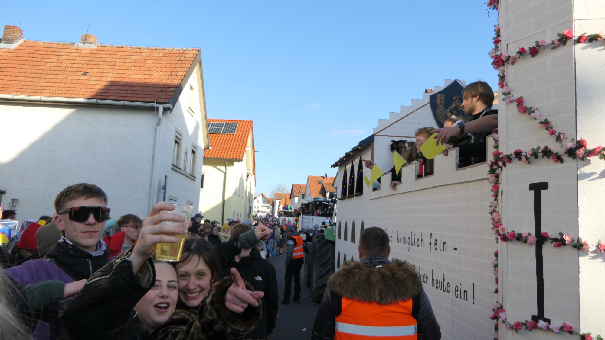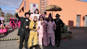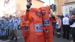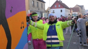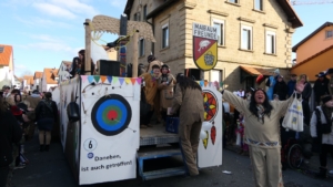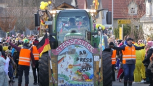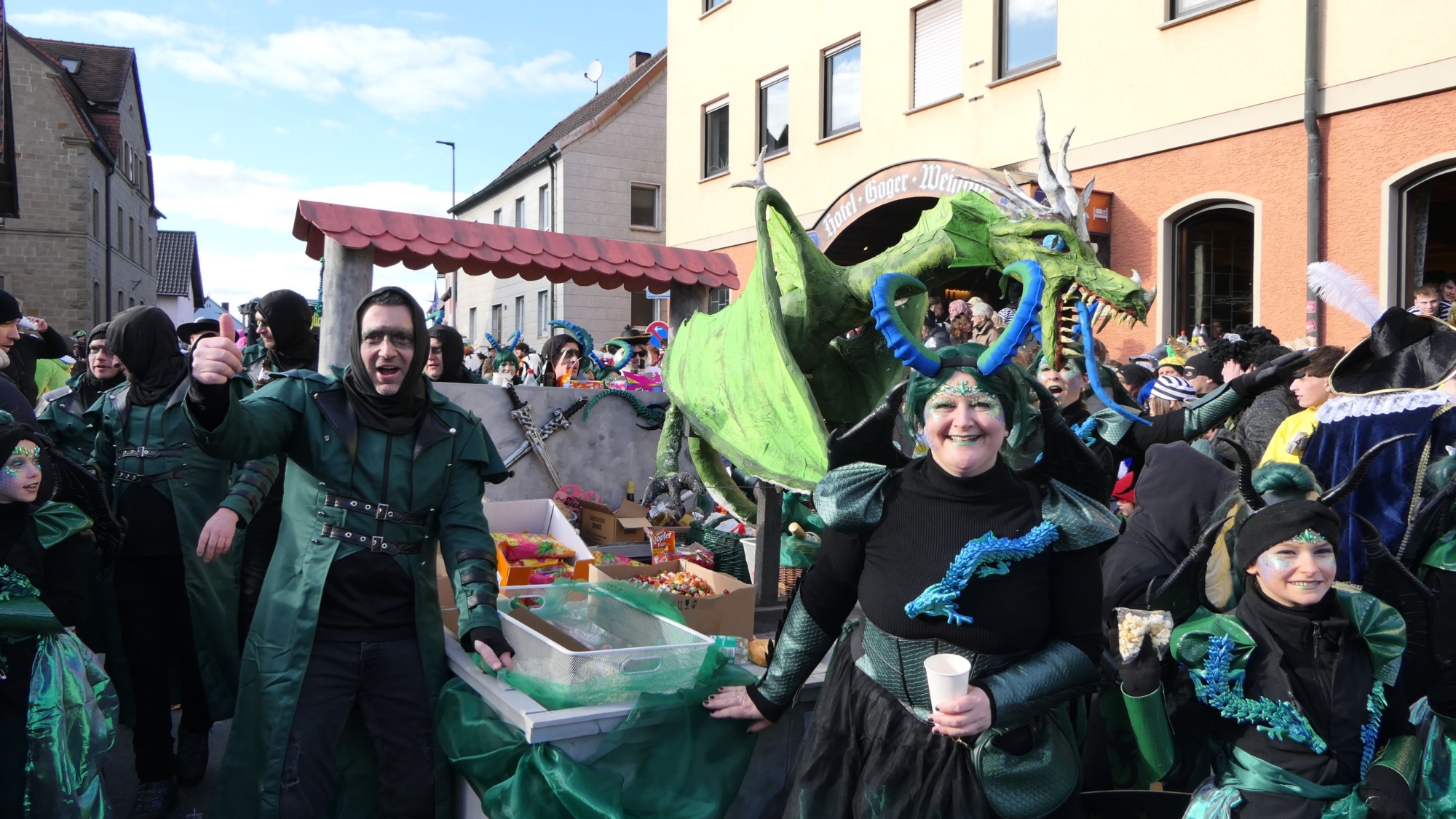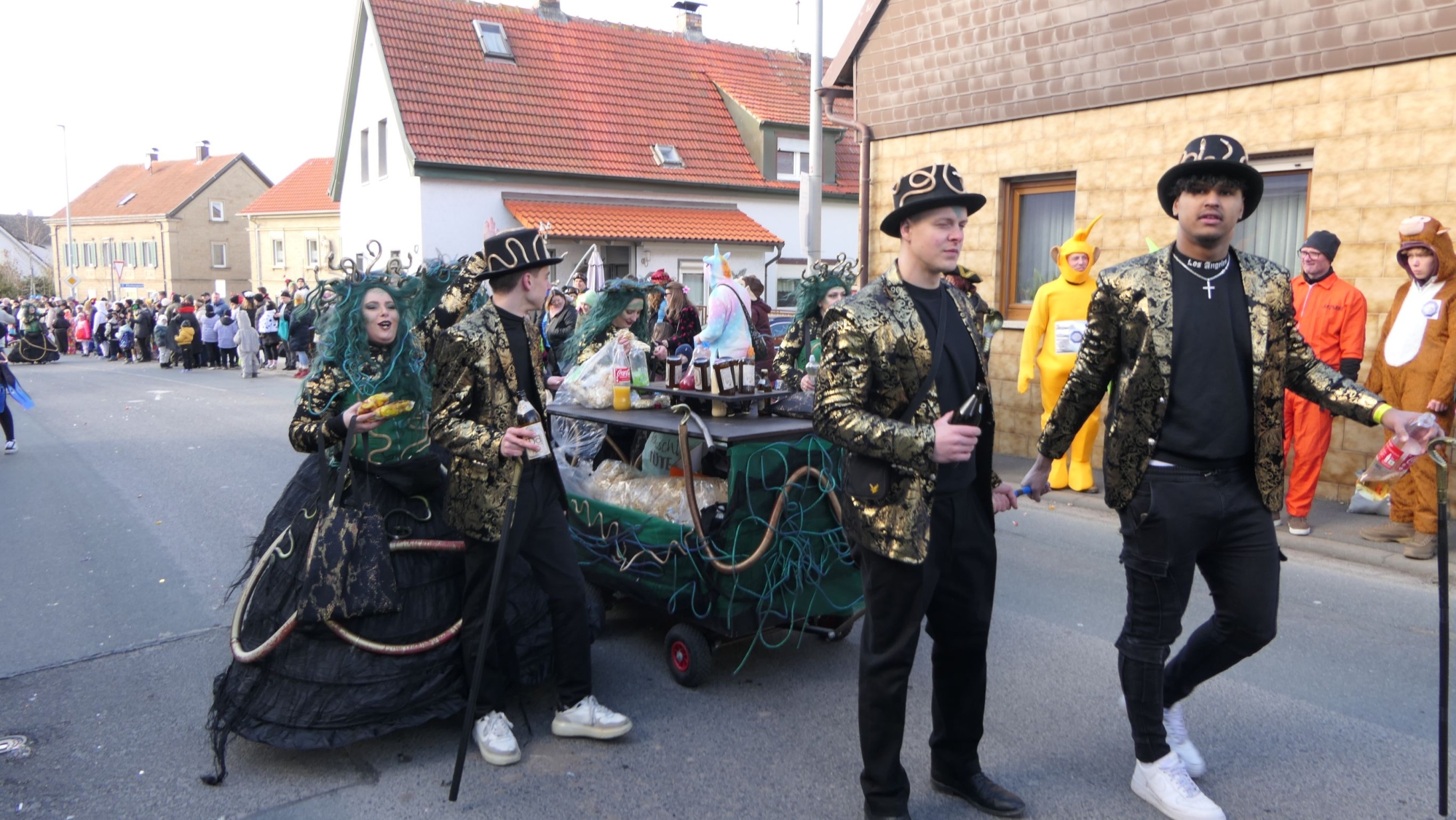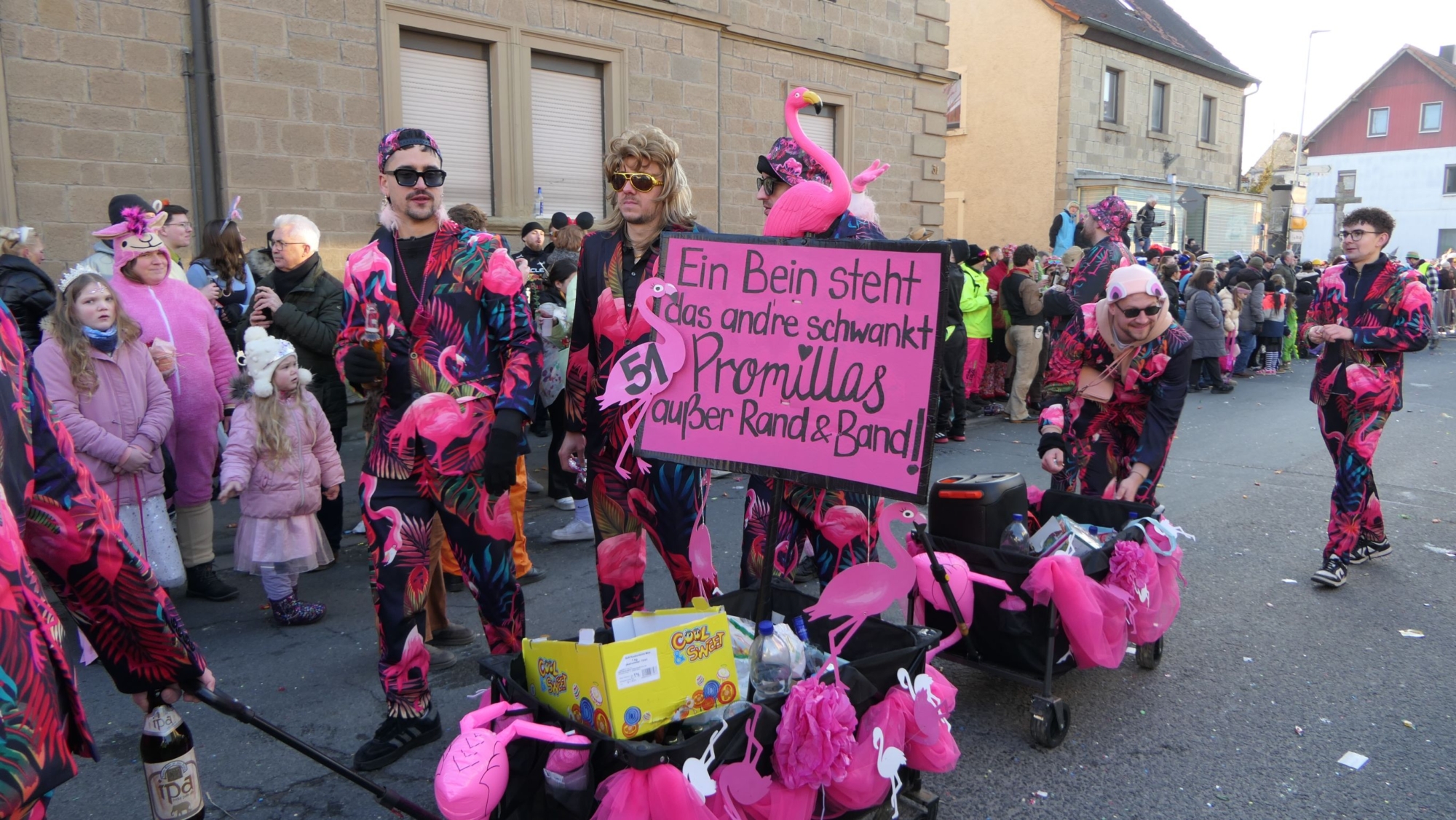 Auch politische Akzente waren im Zug zu finden. Die Junge Liste Haßberge nutzte den Faschingszug für Wahlwerbung und trat als „Greisräte“ mit Rollatoren auf. Ihre Botschaft: Mehr junge Menschen sollen künftig im Kreistag das Sagen haben.