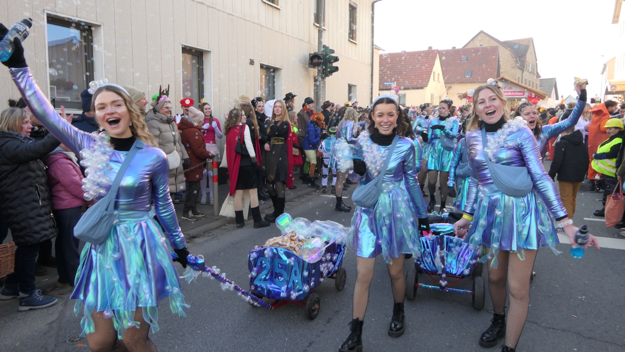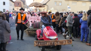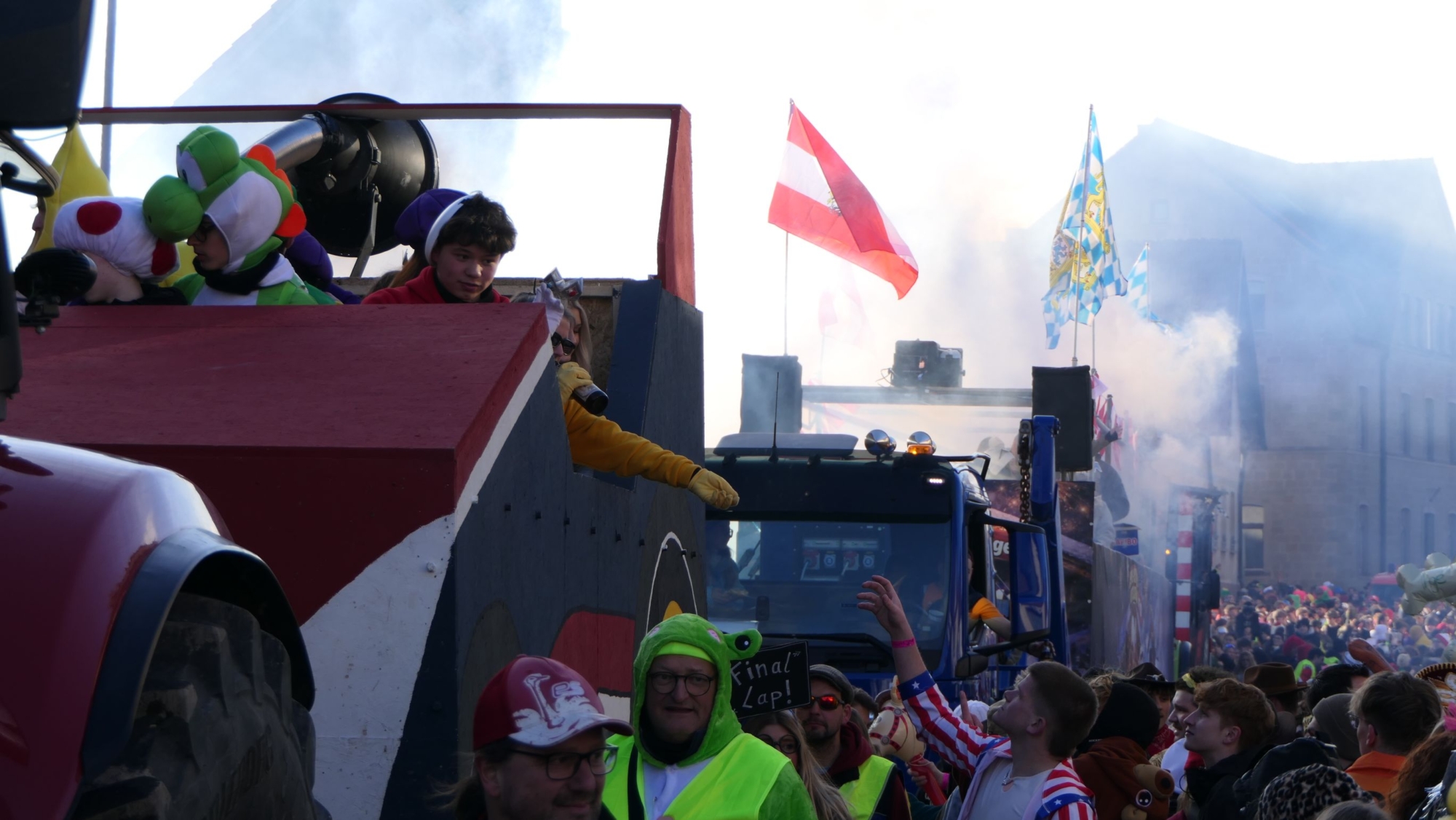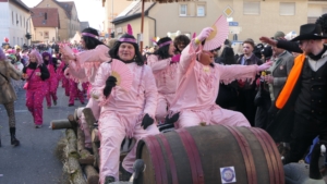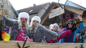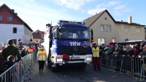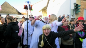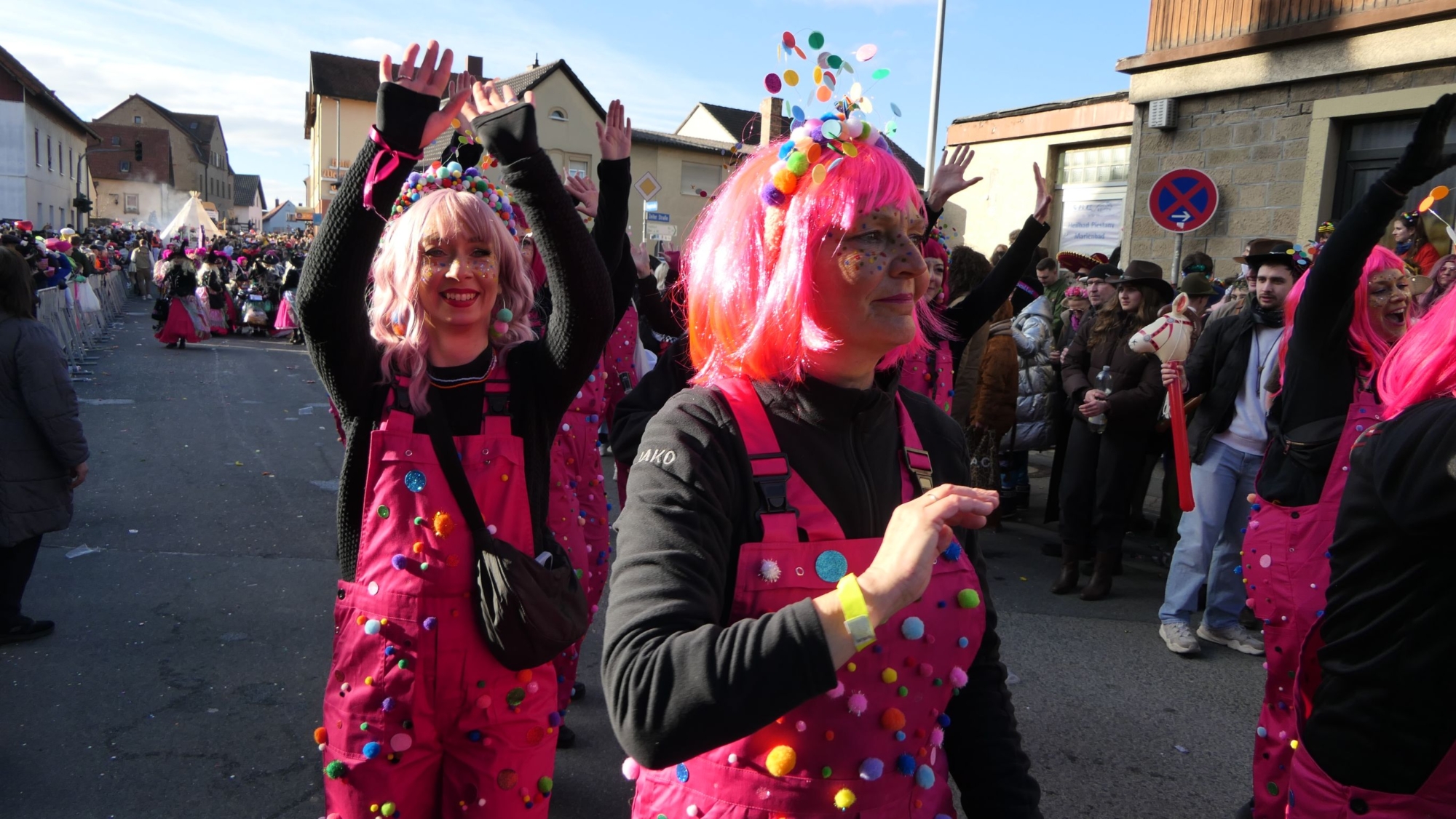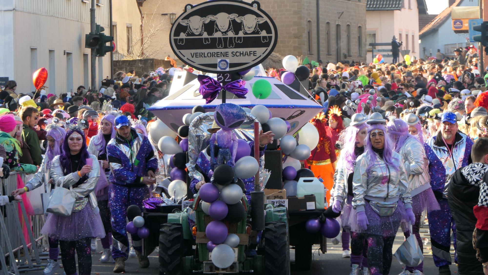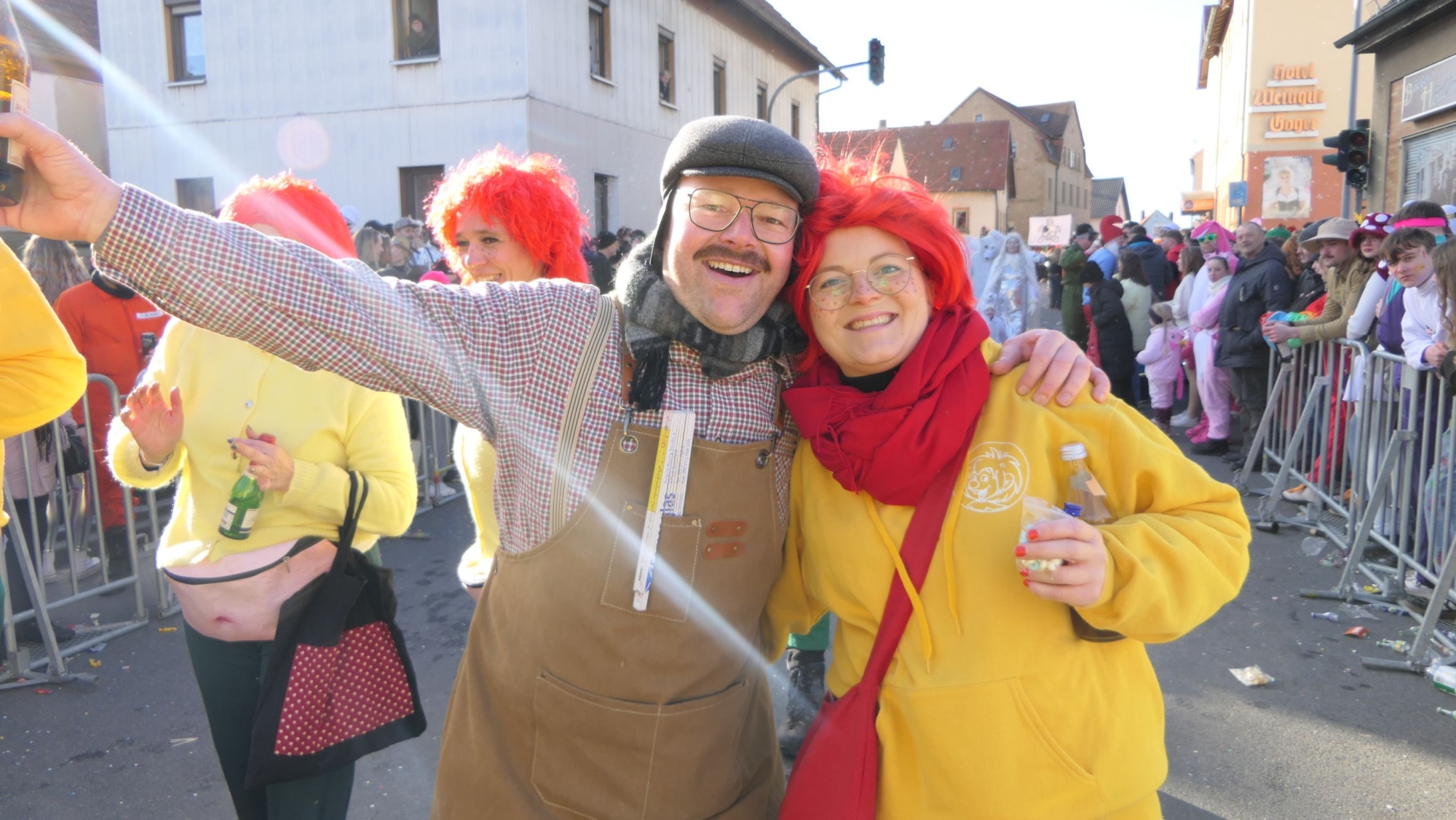 Auch politische Akzente waren im Zug zu finden. Die Junge Liste Haßberge nutzte den Faschingszug für Wahlwerbung und trat als „Greisräte“ mit Rollatoren auf. Ihre Botschaft: Mehr junge Menschen sollen künftig im Kreistag das Sagen haben.