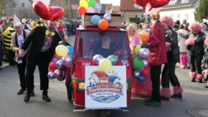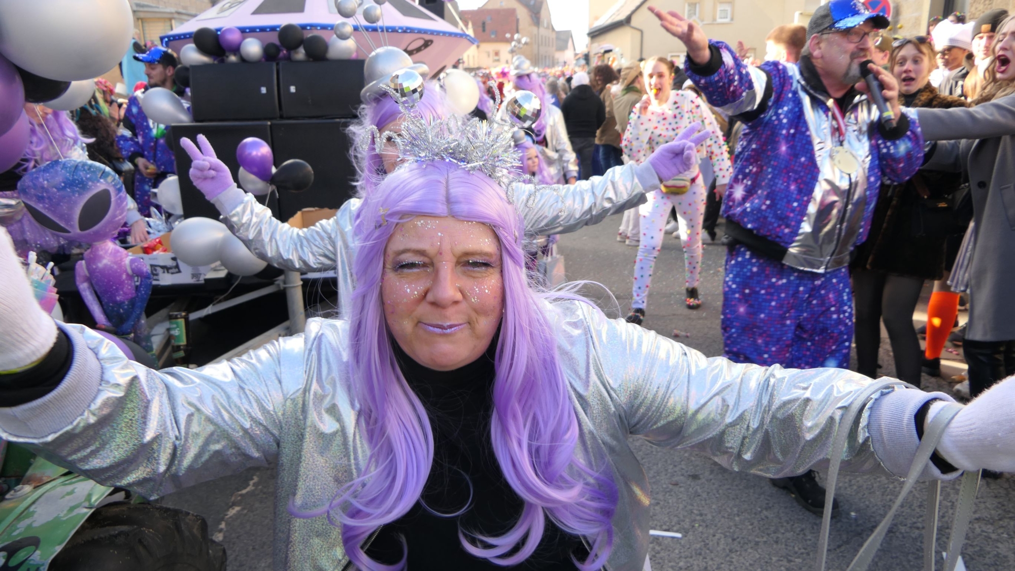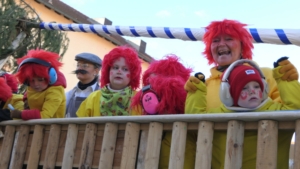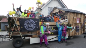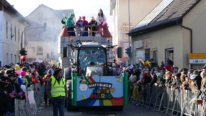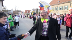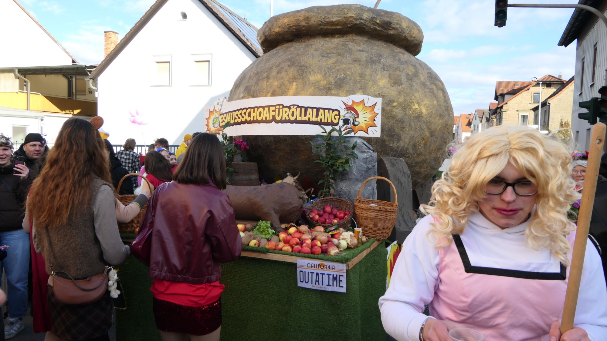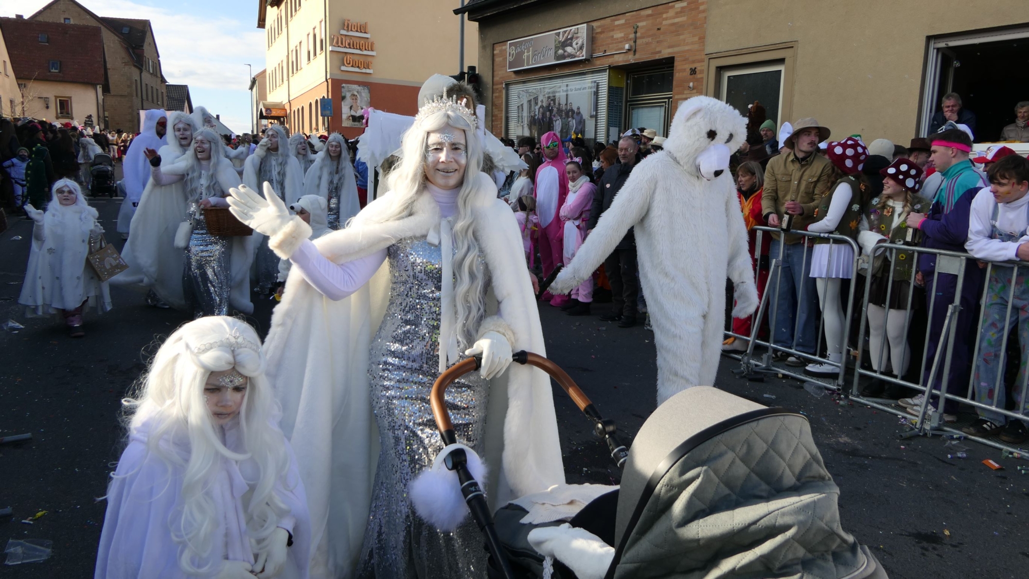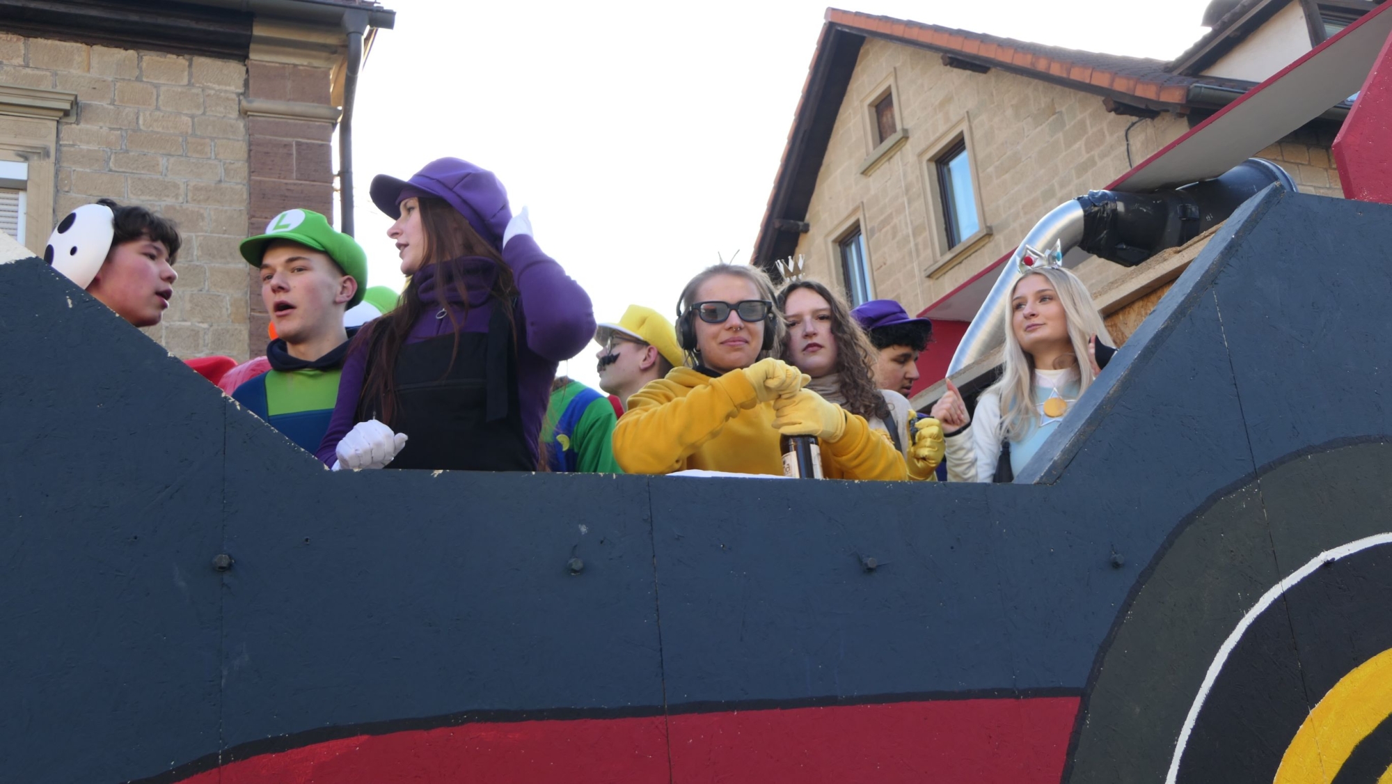 Auch politische Akzente waren im Zug zu finden. Die Junge Liste Haßberge nutzte den Faschingszug für Wahlwerbung und trat als „Greisräte“ mit Rollatoren auf. Ihre Botschaft: Mehr junge Menschen sollen künftig im Kreistag das Sagen haben.