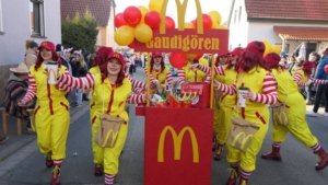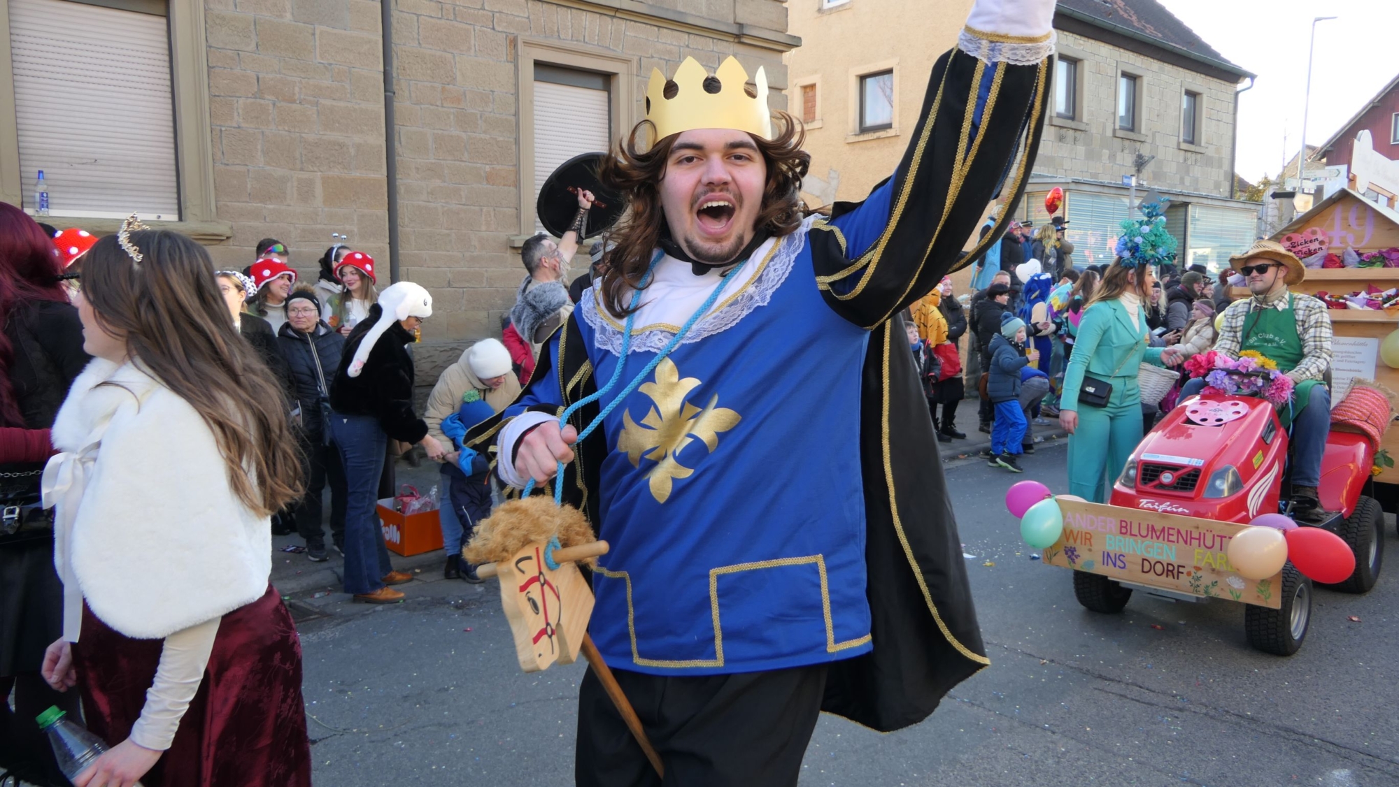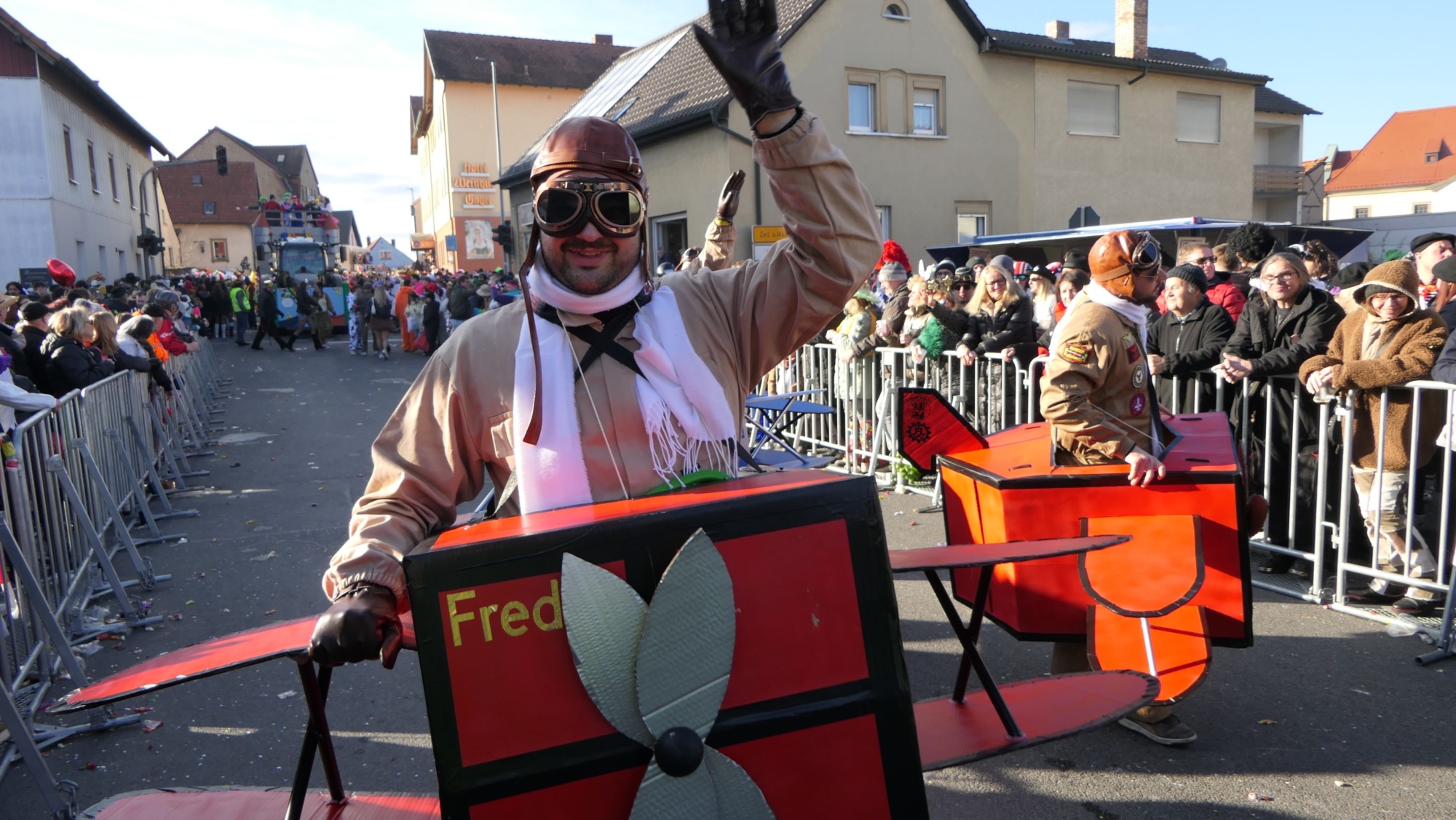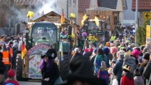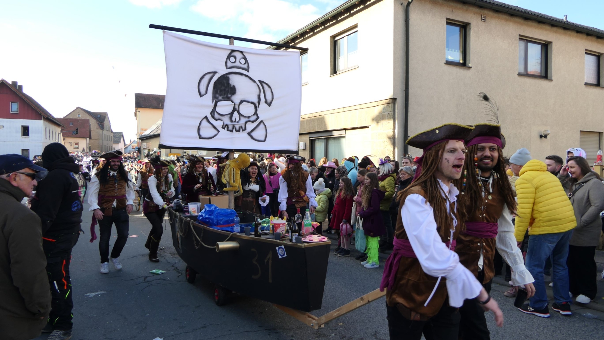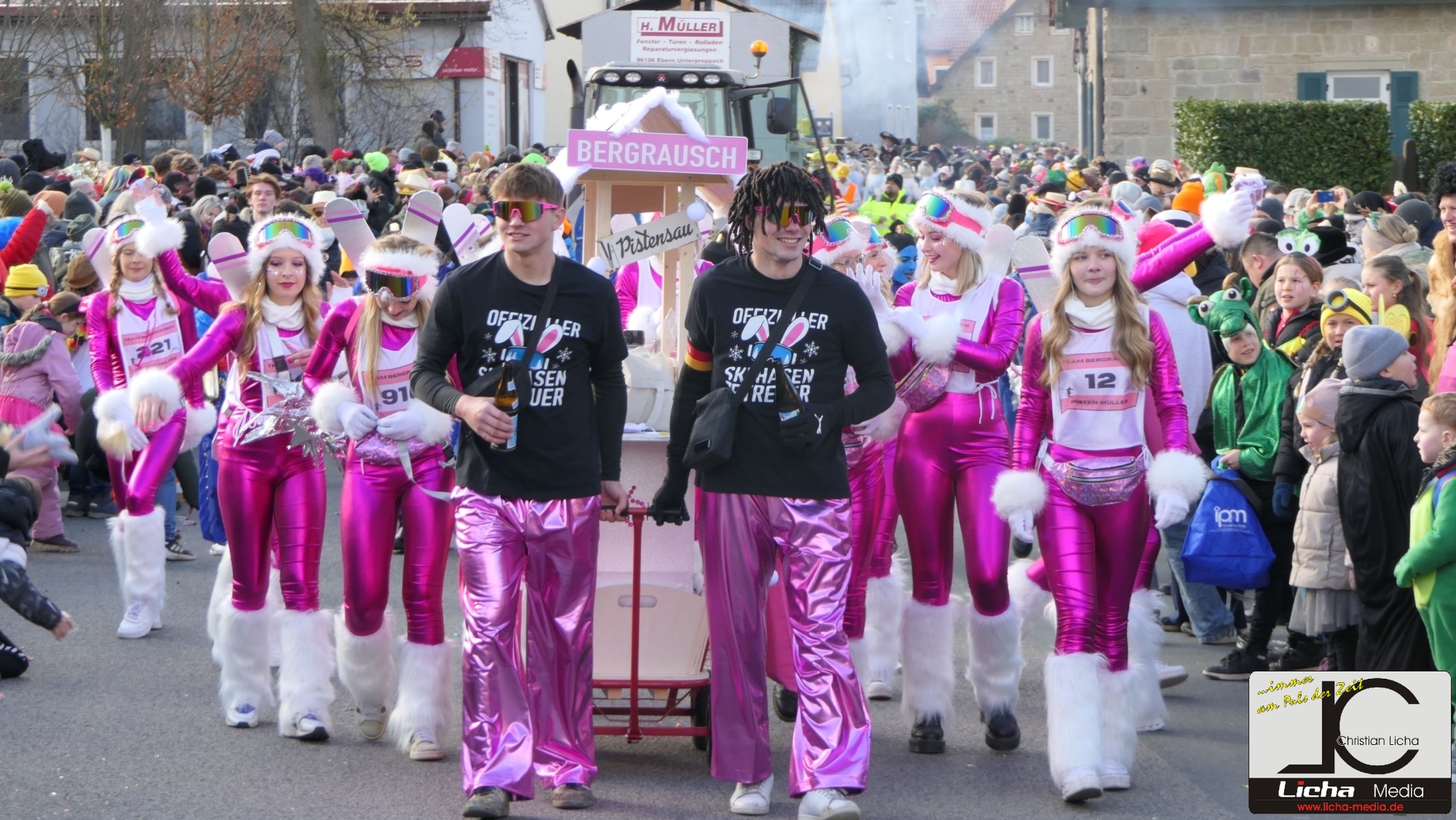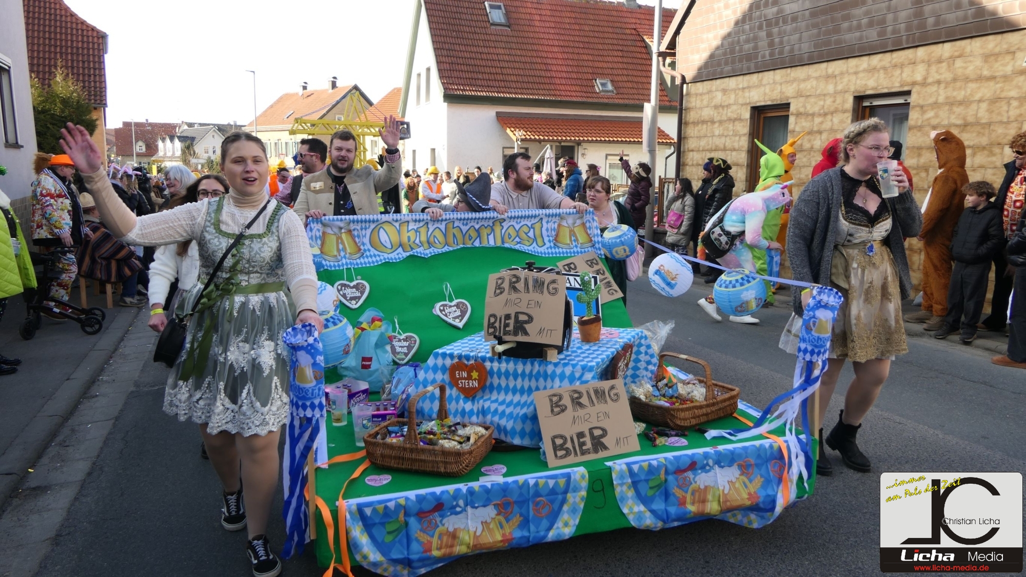 Auch politische Akzente waren im Zug zu finden. Die Junge Liste Haßberge nutzte den Faschingszug für Wahlwerbung und trat als „Greisräte“ mit Rollatoren auf. Ihre Botschaft: Mehr junge Menschen sollen künftig im Kreistag das Sagen haben.