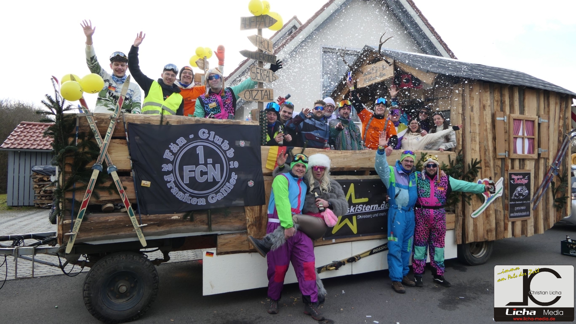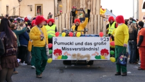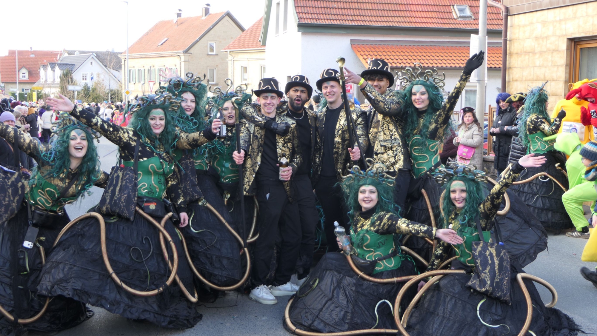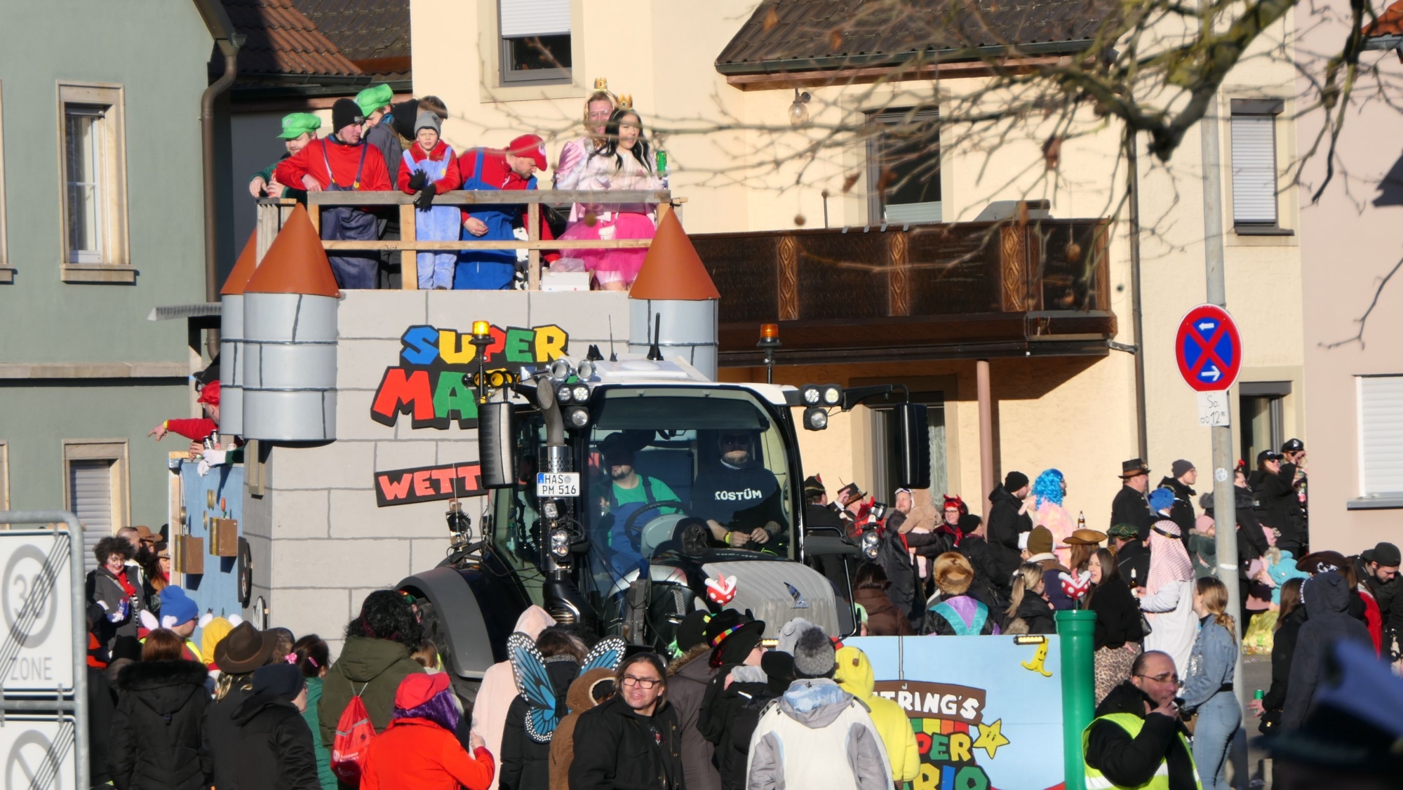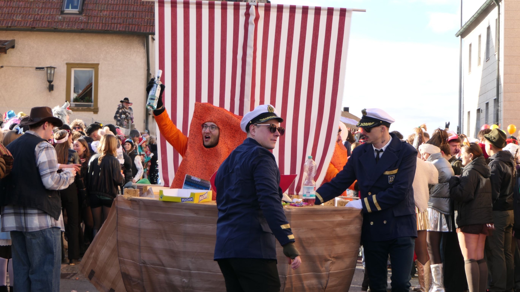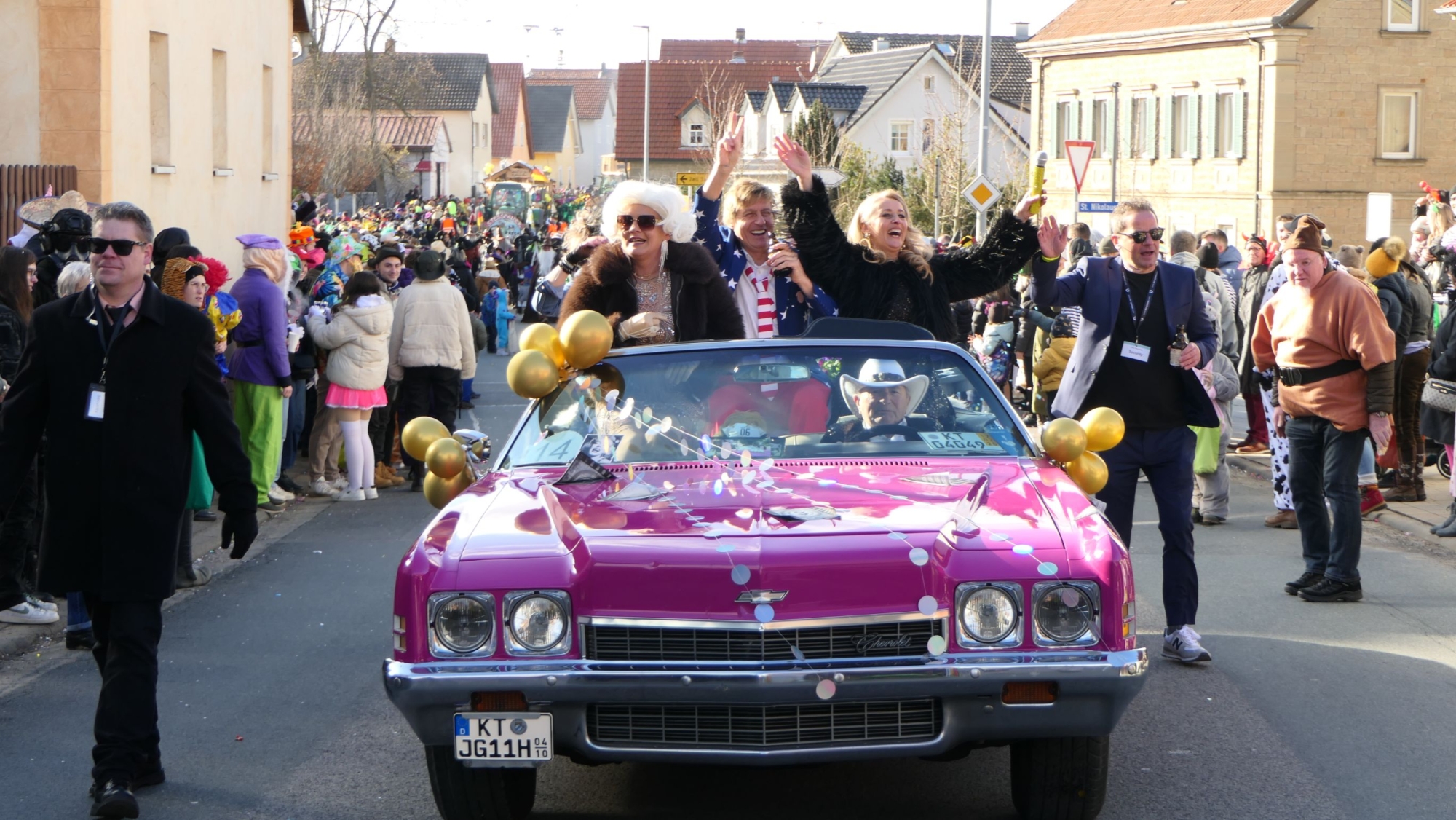 Auch politische Akzente waren im Zug zu finden. Die Junge Liste Haßberge nutzte den Faschingszug für Wahlwerbung und trat als „Greisräte“ mit Rollatoren auf. Ihre Botschaft: Mehr junge Menschen sollen künftig im Kreistag das Sagen haben.