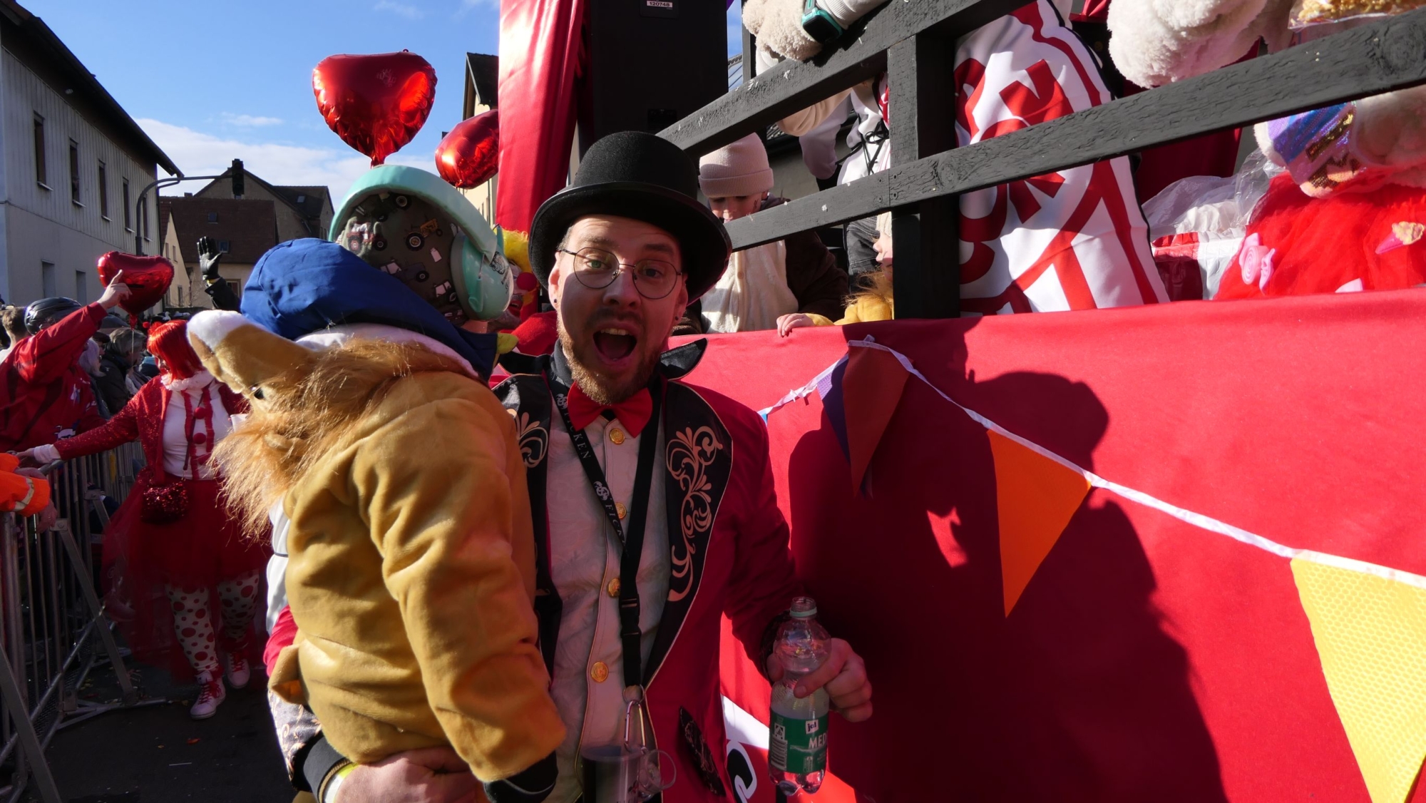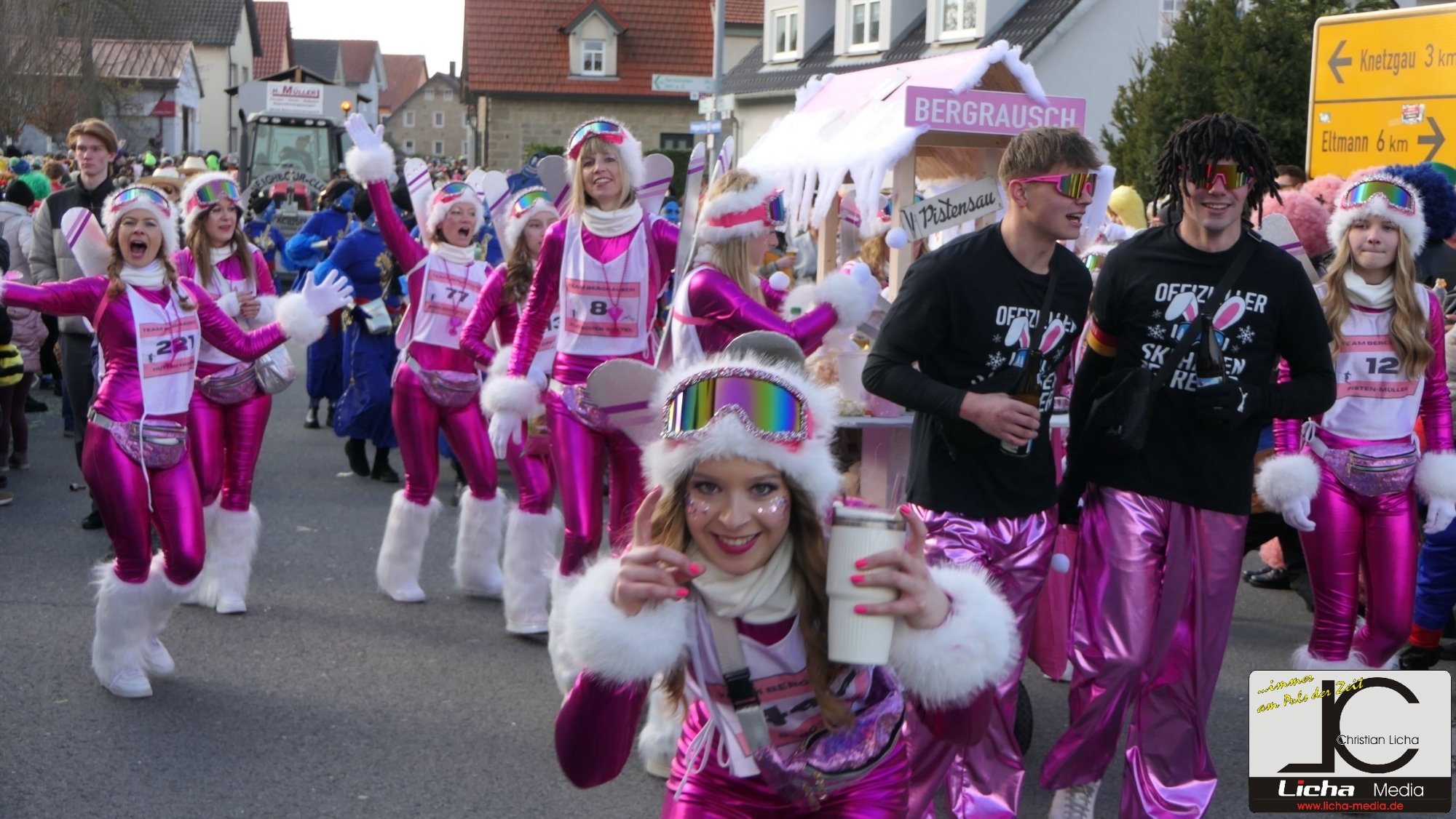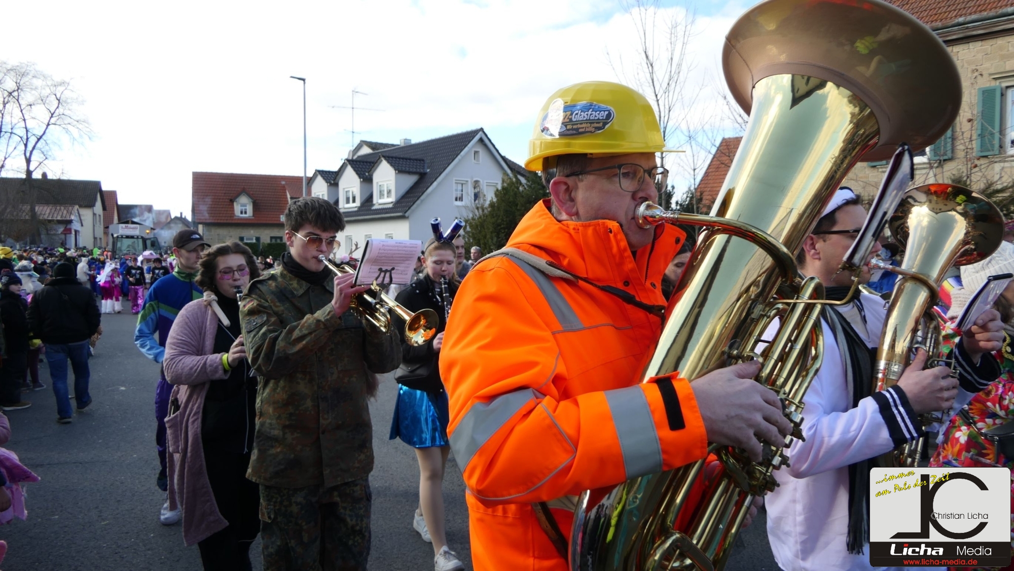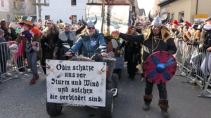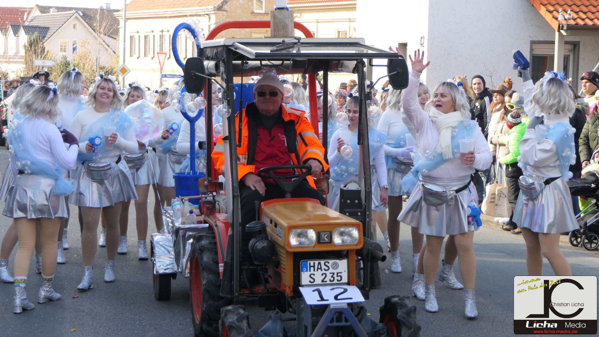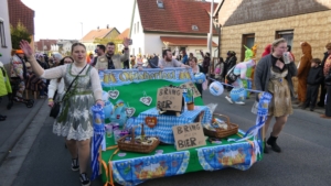 Auch politische Akzente waren im Zug zu finden. Die Junge Liste Haßberge nutzte den Faschingszug für Wahlwerbung und trat als „Greisräte“ mit Rollatoren auf. Ihre Botschaft: Mehr junge Menschen sollen künftig im Kreistag das Sagen haben.