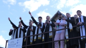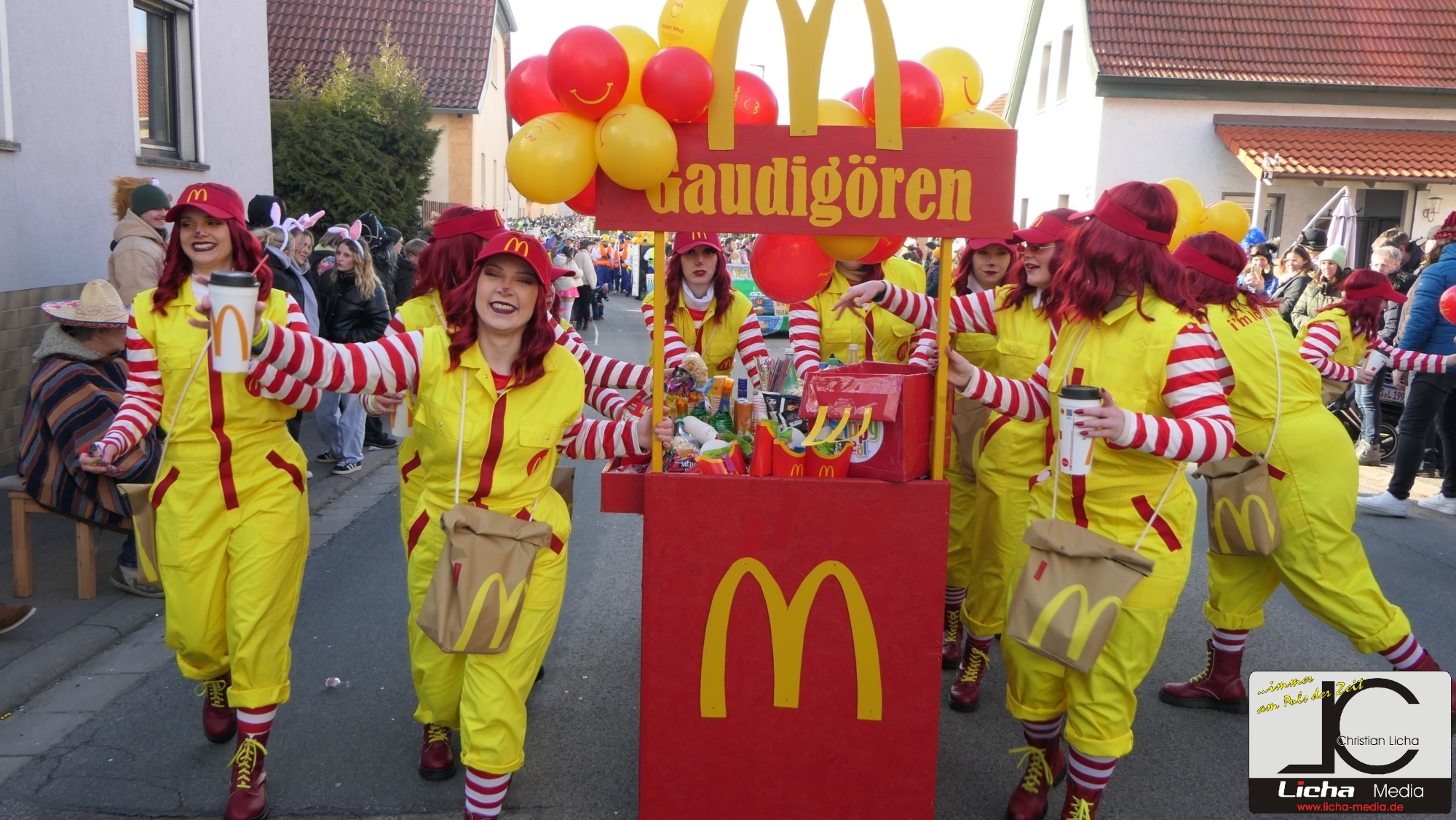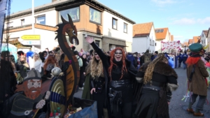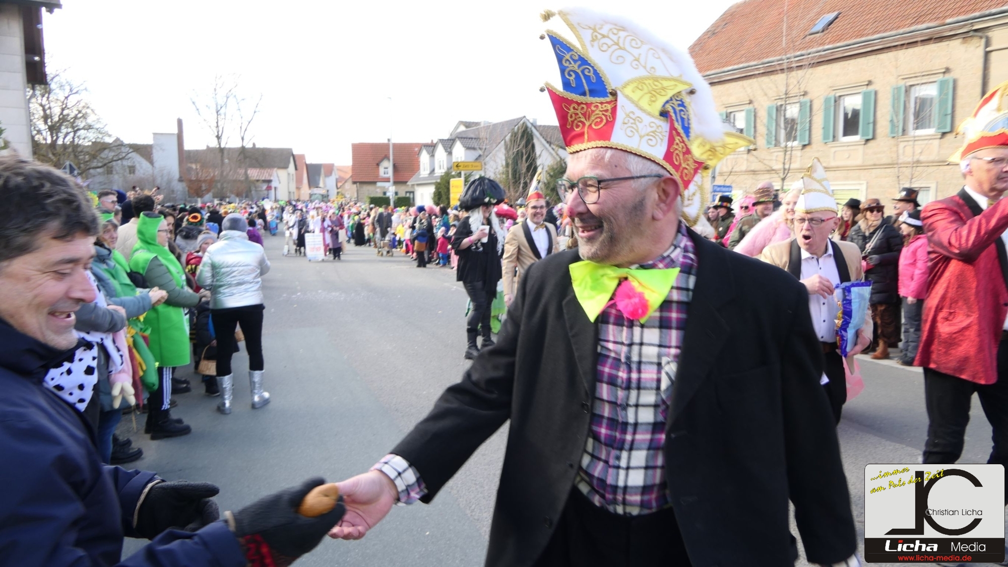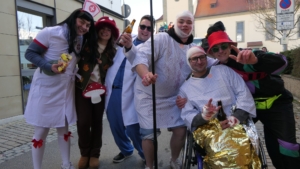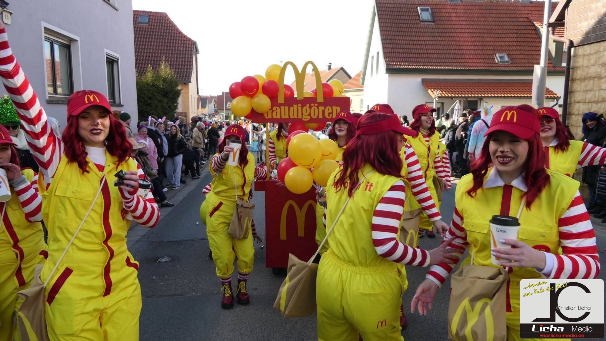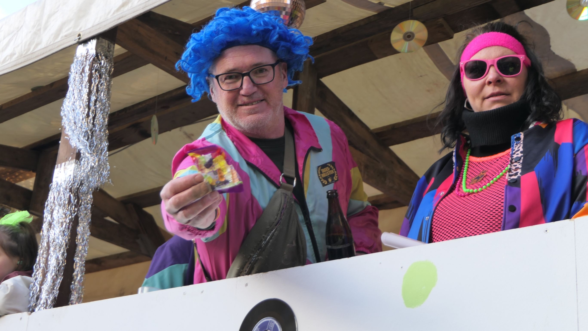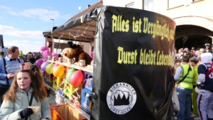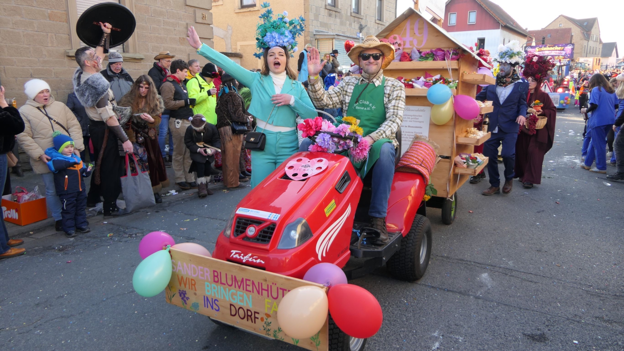 Auch politische Akzente waren im Zug zu finden. Die Junge Liste Haßberge nutzte den Faschingszug für Wahlwerbung und trat als „Greisräte“ mit Rollatoren auf. Ihre Botschaft: Mehr junge Menschen sollen künftig im Kreistag das Sagen haben.