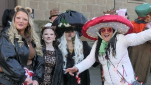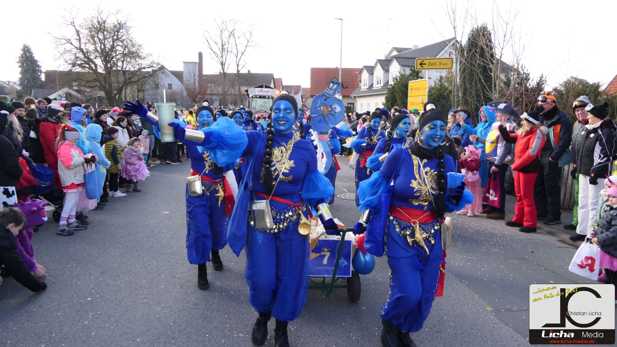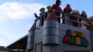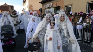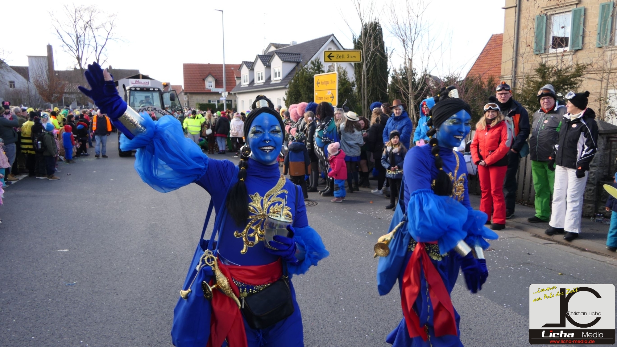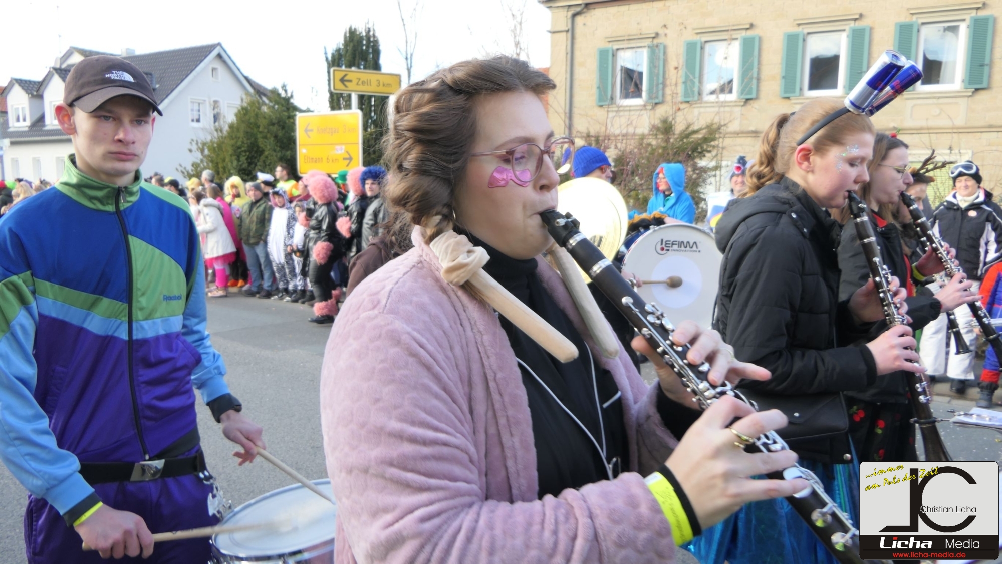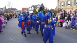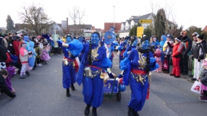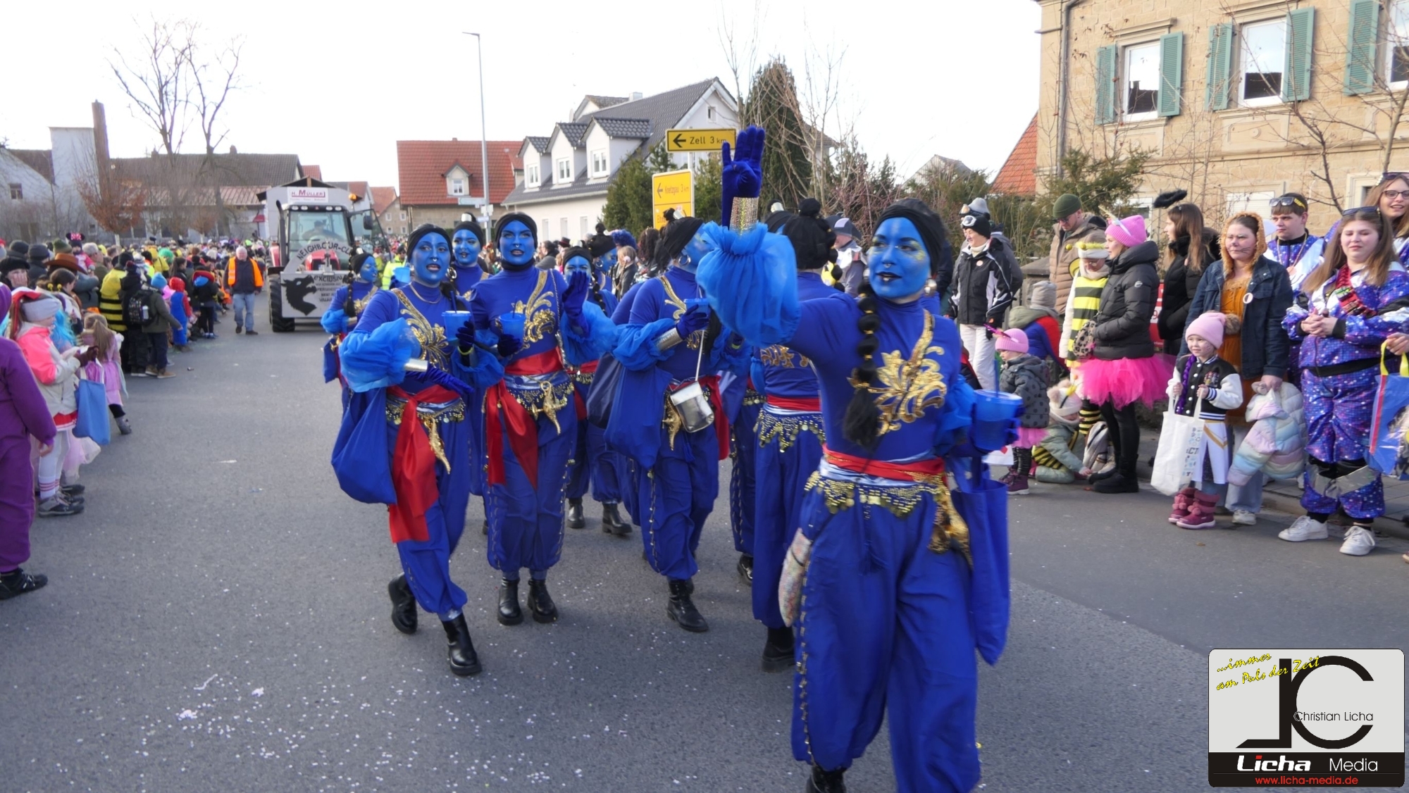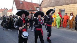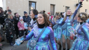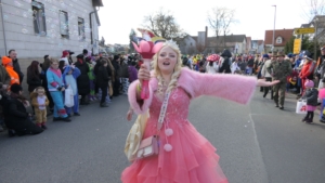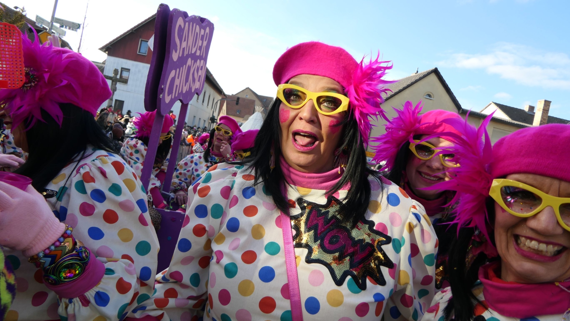Sand am Main, Lkr. Haßberge. Trotz Temperaturen nur knapp über dem Gefrierpunkt zeigte sich pünktlich zum Start am Sonntagnachmittag die Sonne über der Faschingshochburg Sand am Main. Der größte Faschingszug im Landkreis Haßberge lockte wieder tausende Besucherinnen und Besucher an. Traditionell angeführt von der Samba-Gruppe zogen knapp 60 Fußgruppen und bunte, ideenreich gestaltete Wagen fast zwei Stunden durch die Korbmachergemeinde.