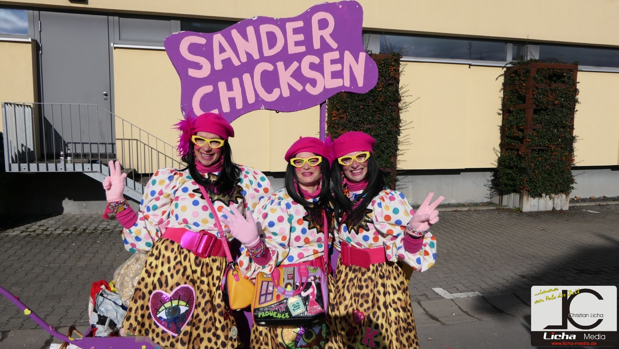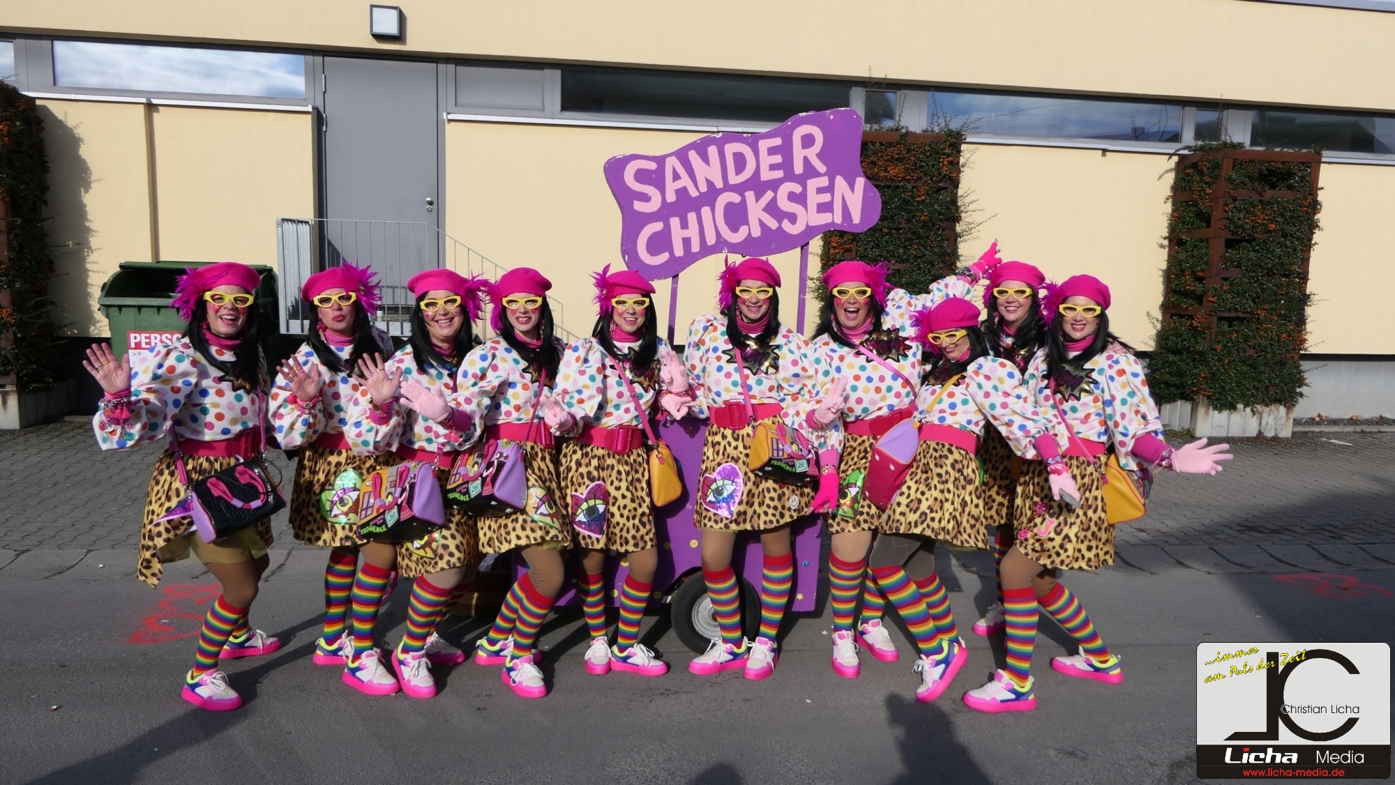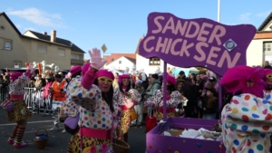 An fantasievollen Ideen mangelte es den Gruppen nicht. Die Krabbelgruppe war als Asterix und Obelix mit einem riesigem Kessel Zaubertrank unterwegs, der Bacardi Club Sand fuhr als schicke rosa Indianer auf Manitus Floß durch den Ort. Die Gruppe „Bade Fun“ griff den außergewöhnlichen Bankeinbruch in Gelsenkirchen auf und war als Knackis unterwegs, die die „Spaßkasse Geldkirchen“ ausraubten. Die Sander Turtles glänzten farbenfroh in ihren Kostümen, während die „Pin up“ als Schneeköniginnen mit kleinen Eisbären unterwegs waren oder die Sander Chicksen knallbunt verkleidet für Aufmerksamkeit sorgten.