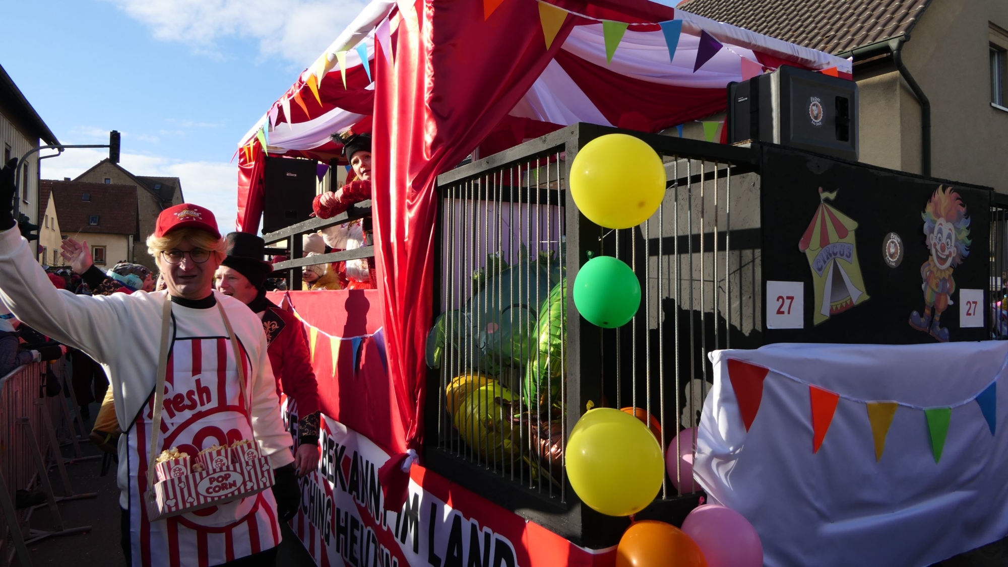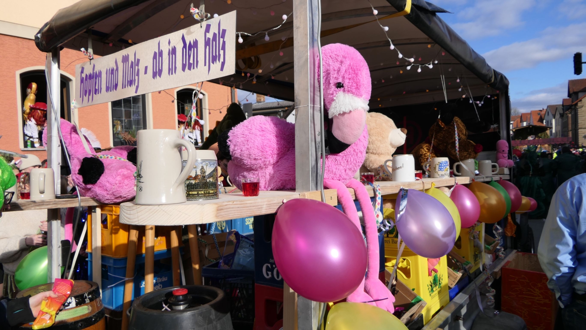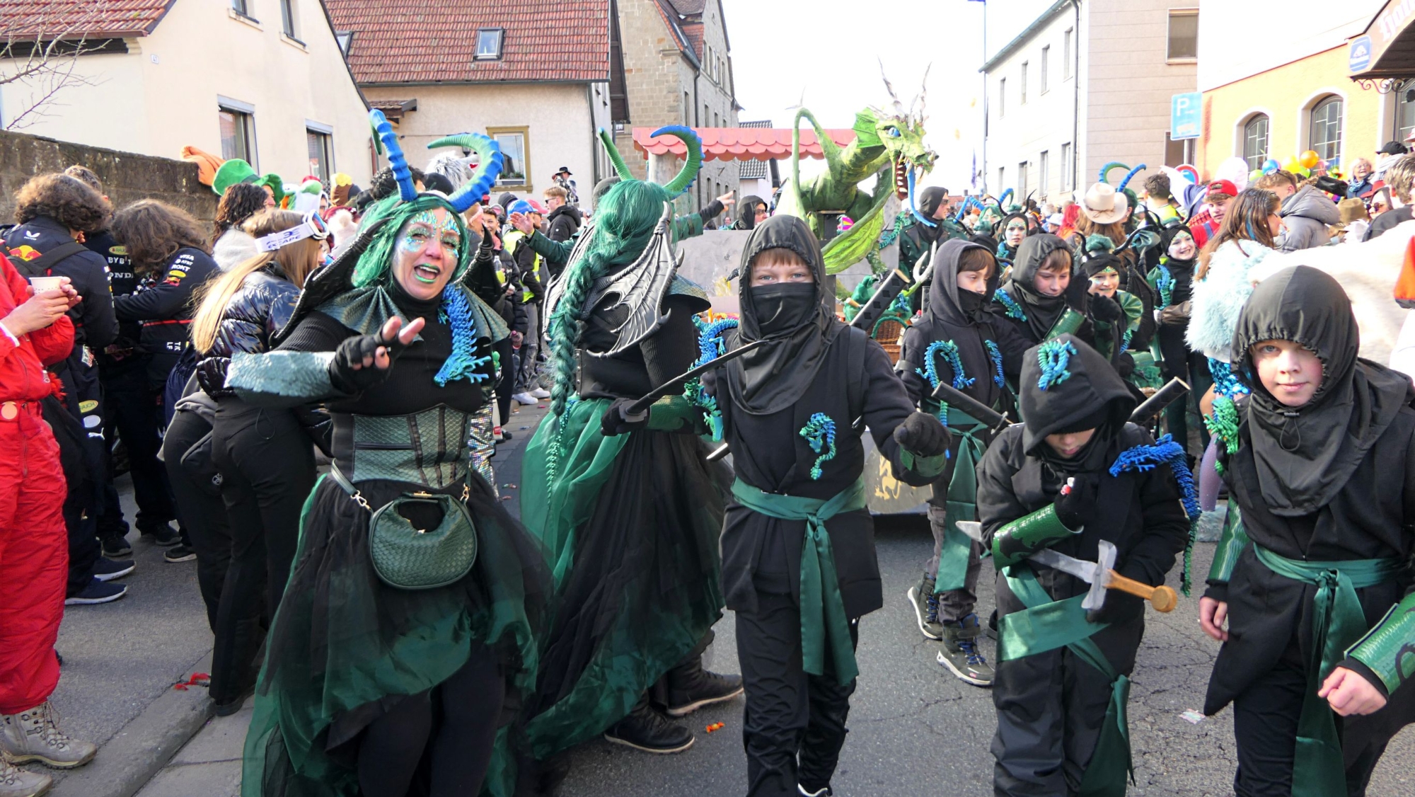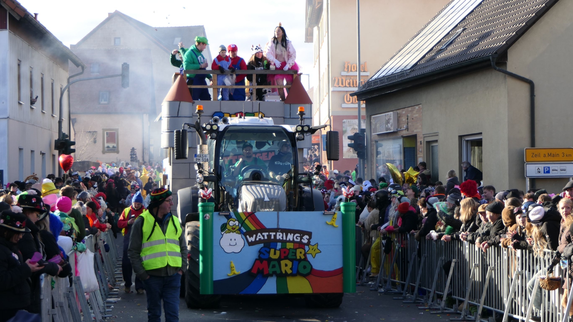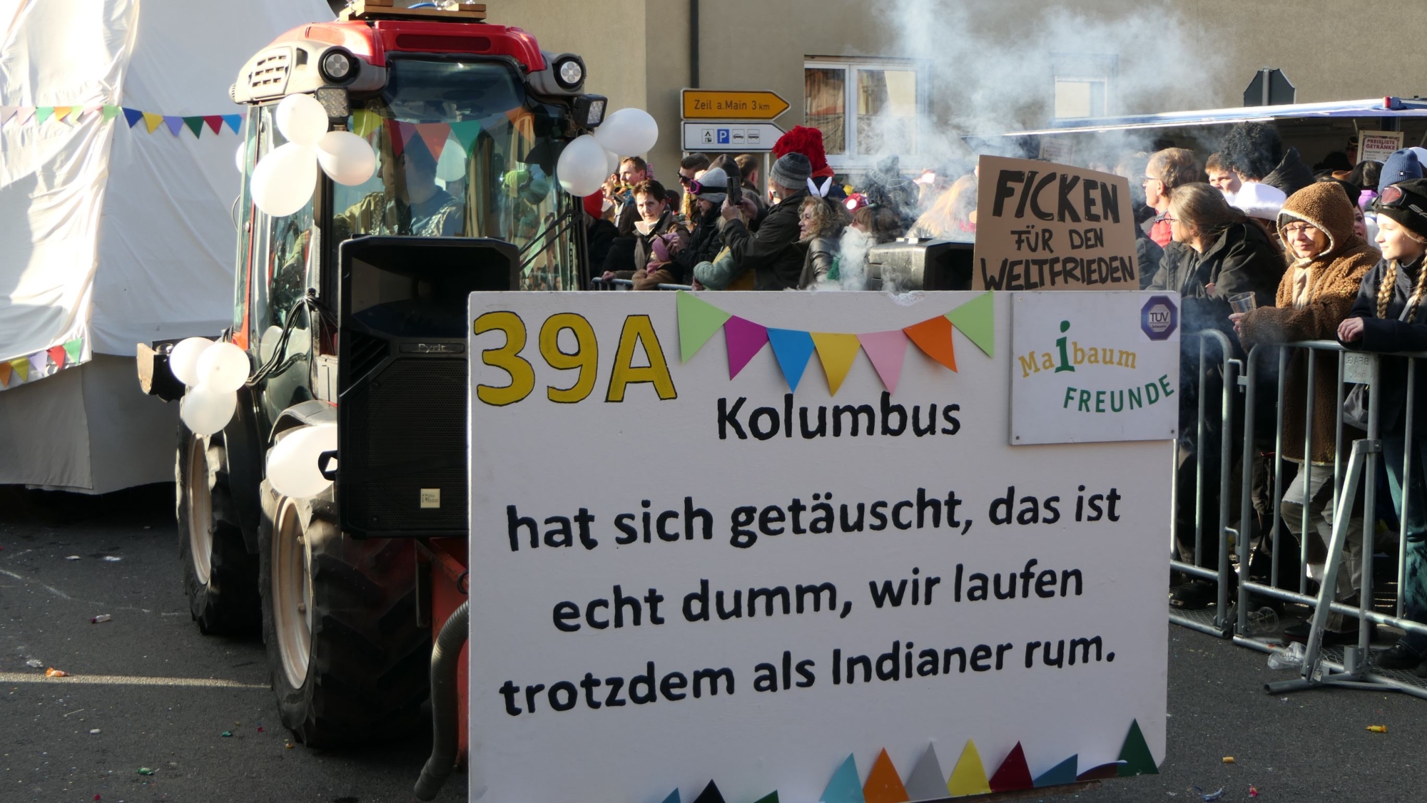 Nach dem Zug wurde im Festzelt am Altmain weitergefeiert. Die Polizei bestätigte dem Faschingstreiben am späten Nachmittag einen friedlichen Verlauf. Größere Zwischenfälle gab es bis dahin keine.