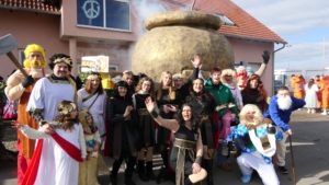 Die Krabbelgruppe war als Asterix und Obelix mit einem riesigen Kessel Zaubertrank unterwegs. Foto: © Christian Licha