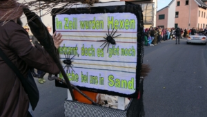 Für Gesprächsstoff sorgte vor allem die Mottogruppe der „Scheuern Sand“. Mit ihrem TÜV-Thema griffen sie eine Mitteilung der Polizei auf, die im Vorfeld des Faschingszuges zunächst für Verwirrung unter den Zugteilnehmern gesorgt hatte. Zunächst war unklar, ob alle Wagen eine TÜV-Abnahme benötigen würden. Einige Tage später wurde jedoch klargestellt, dass eine TÜV-Prüfung nur bei Überschreiten bestimmter Maße erforderlich ist.