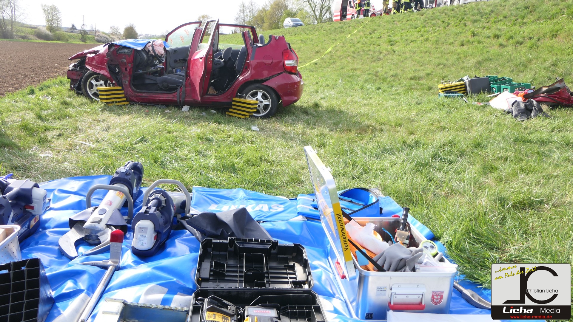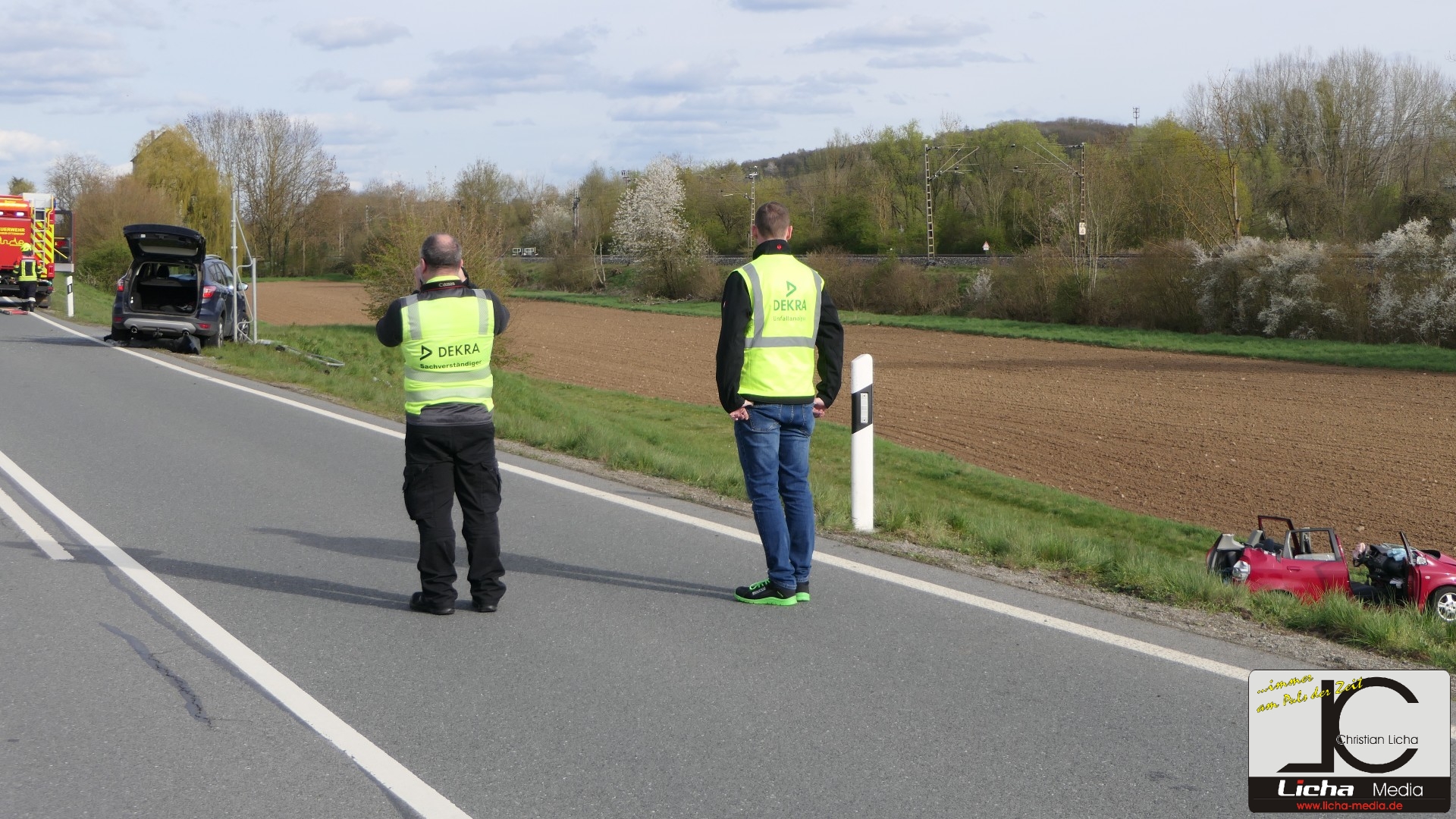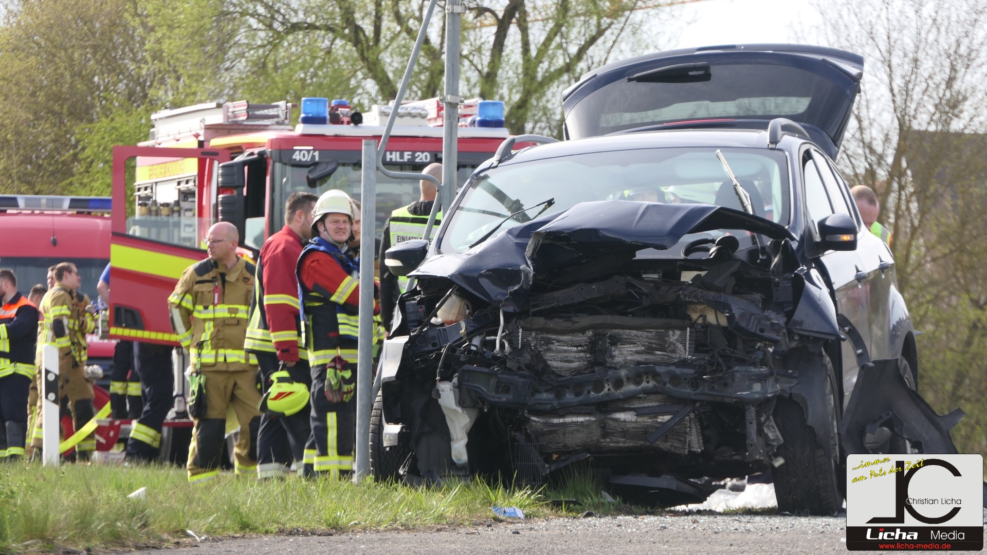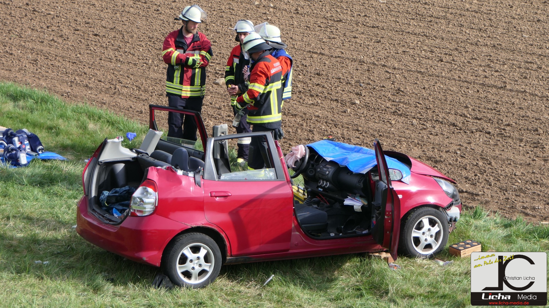 Augenzeugen setzten umgehend einen Notruf ab. Die Integrierte Leitstelle (ILS) Schweinfurt alarmierte daraufhin die Feuerwehren aus Gädheim-Ottendorf, Schonungen und Forst sowie einen Fachberater des Technischen Hilfswerks (THW) Haßfurt. Die rund 50 Einsatzkräfte waren zusammen mit dem Rettungsdienst schnell vor Ort. Während der Fahrer des Ford sein Fahrzeug eigenständig verlassen konnte und mittelschwer verletzt wurde, waren Mutter und Sohn im Honda eingeschlossen.