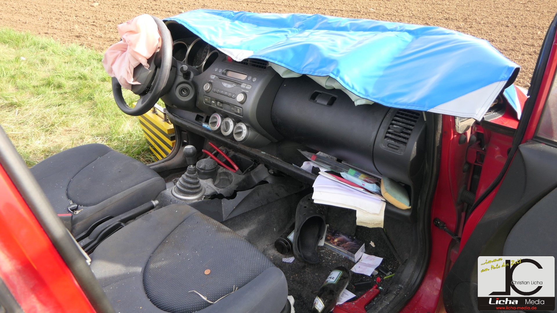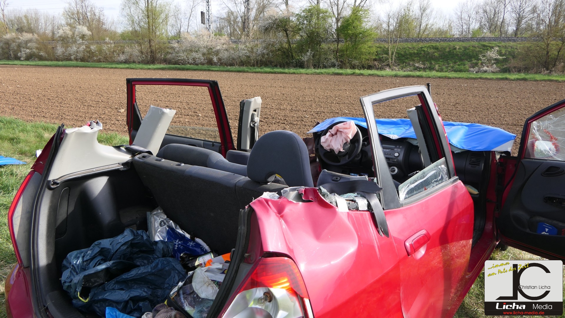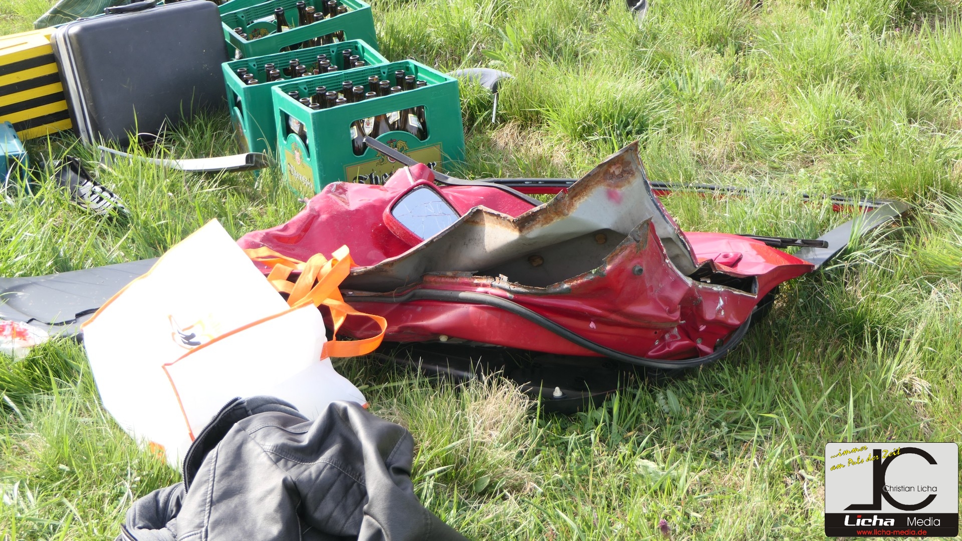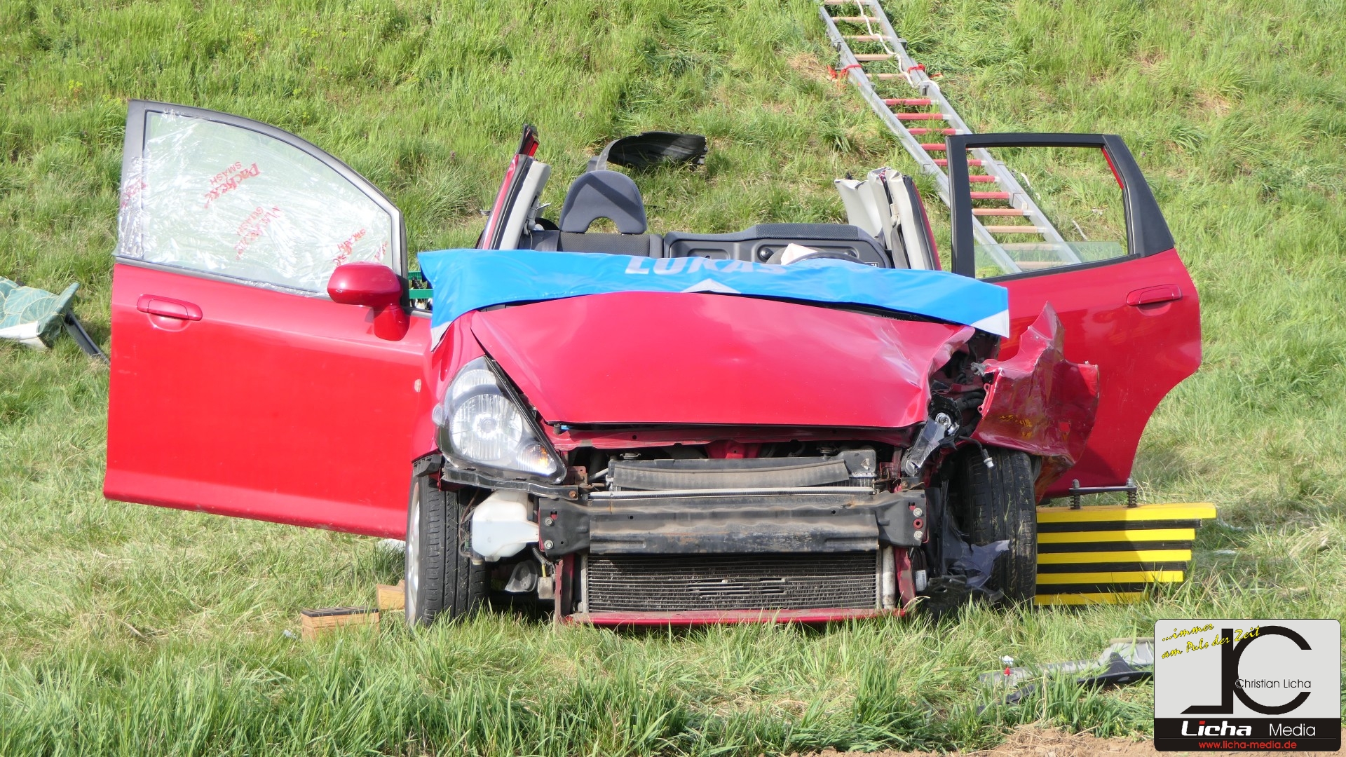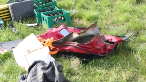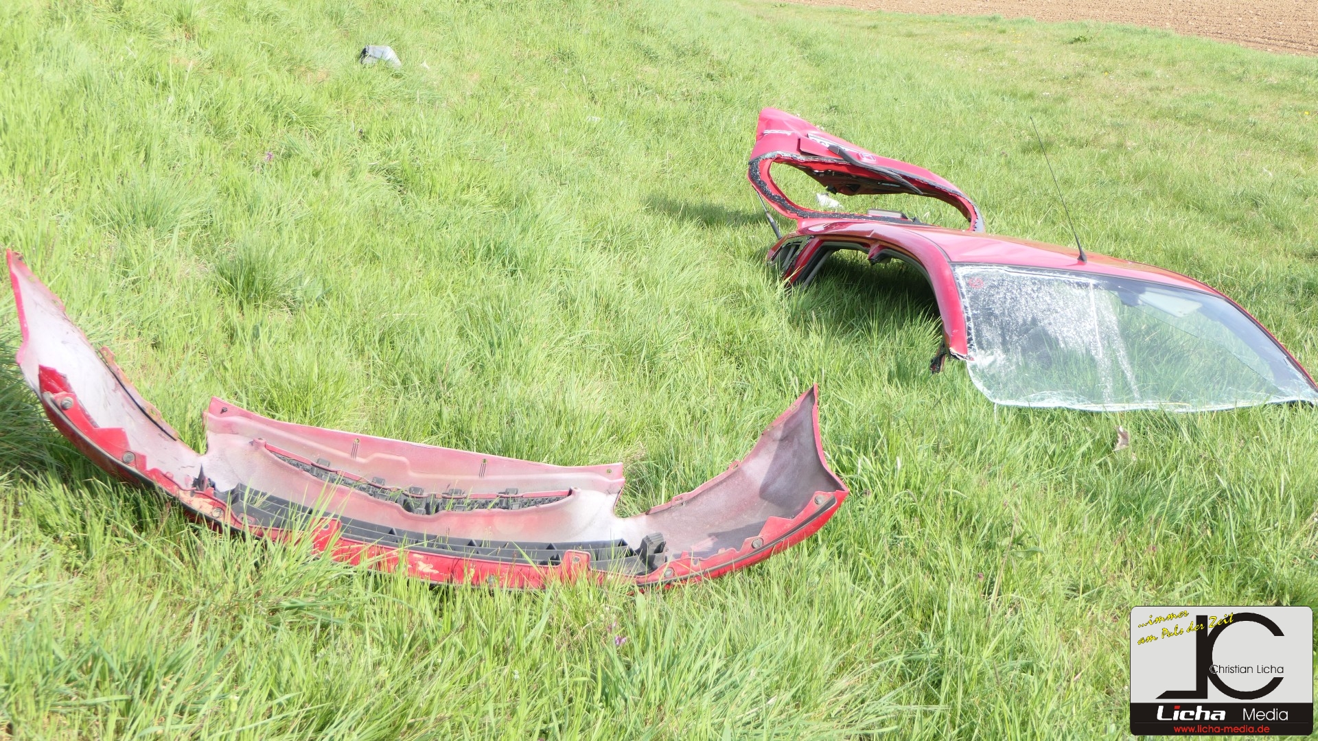 Durch die Wucht des Aufpralls wurde der Honda von der Fahrbahn geschleudert, stürzte einen etwa fünf Meter hohen Abhang hinab und landete auf den Rädern auf einer Wiese. Der Ford drehte sich und blieb entgegen seiner ursprünglichen Fahrtrichtung auf der Straße stehen.