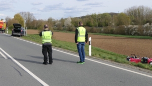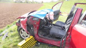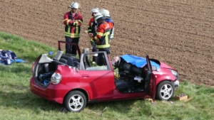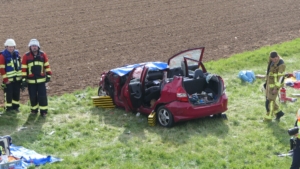 Gädheim, Lkr. Haßberge. Ein schwerer Verkehrsunfall hat sich am Freitagnachmittag auf der Staatsstraße 2447 (ehemaligen B 26) bei Gädheim ereignet. Drei Menschen wurden dabei verletzt, zwei von ihnen, eine 60-jährige Mutter und ihr 19-jähriger Sohn, so schwer, dass sie in Lebensgefahr schweben.