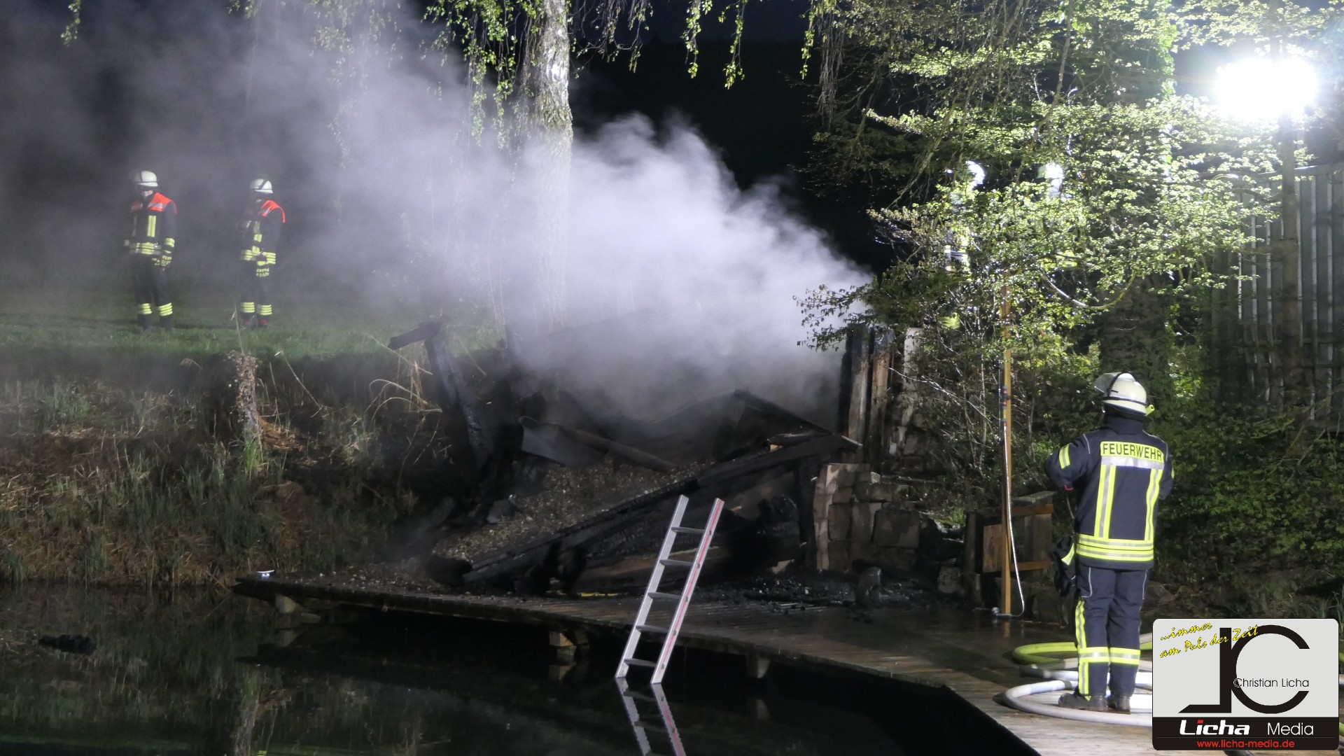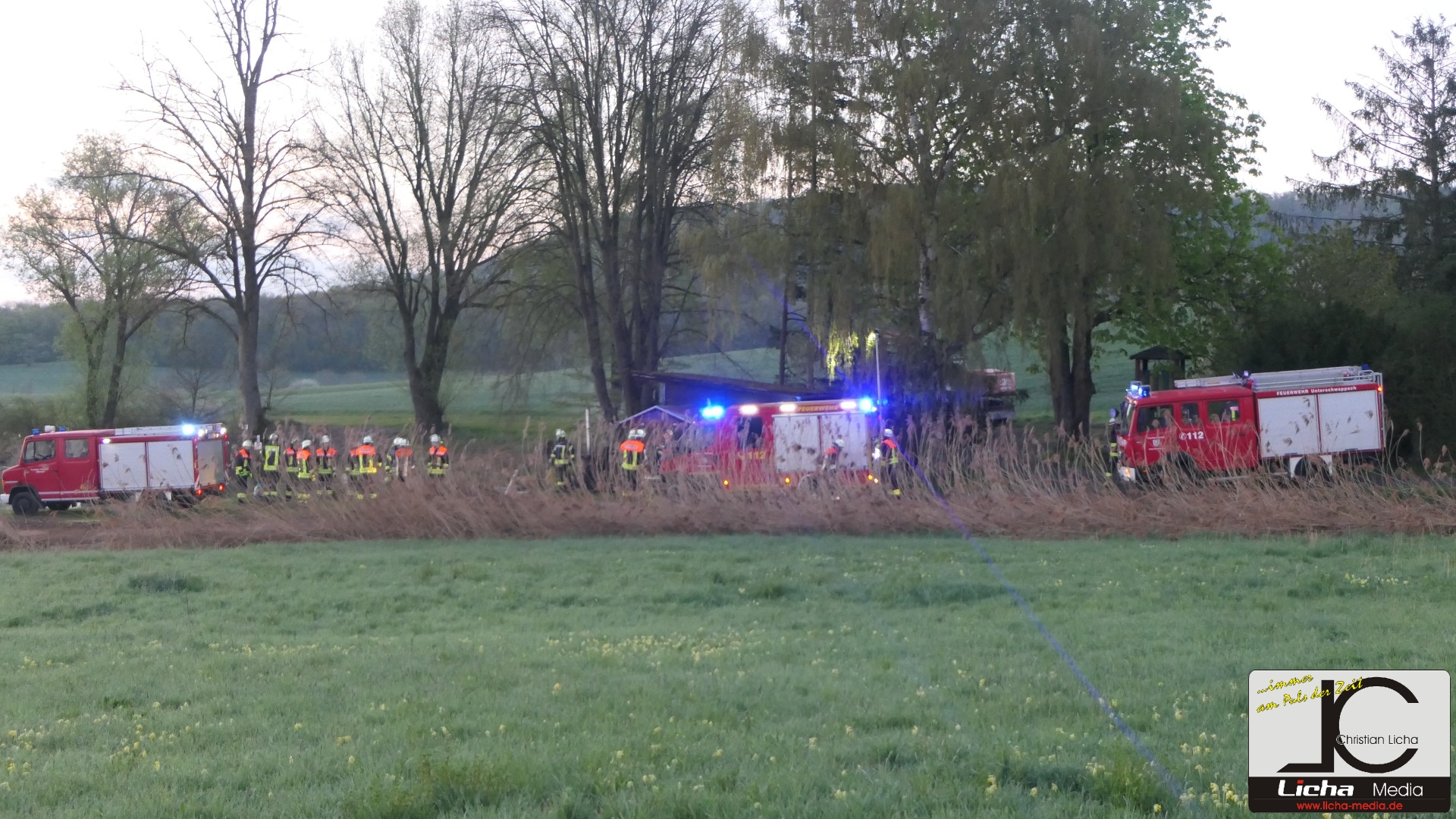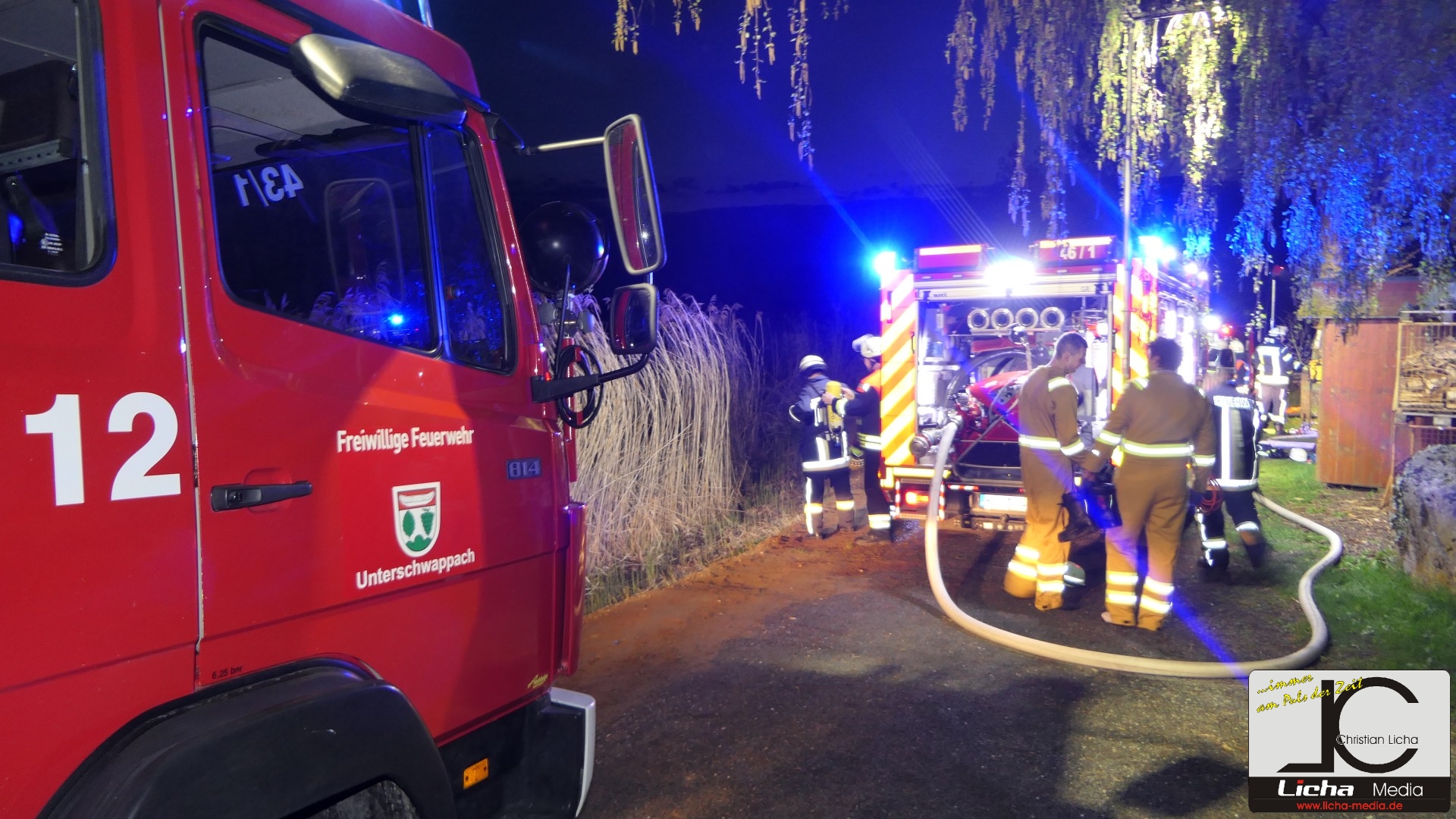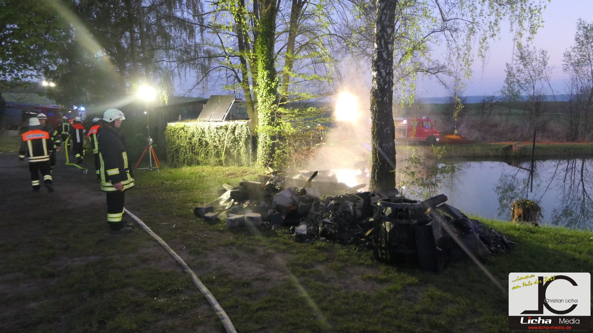 Kurz nach 4.30 Uhr alarmierte die Integrierte Leitstelle (ILS) Schweinfurt nach einem Notruf die Feuerwehren aus Wohnau, Oberschwappach, Unterschwappach sowie die Führungsmannschaft der Feuerwehr Knetzgau. Der Einsatzort lag außerhalb des Ortes am Wohnauer See, etwa 300 Meter vom Dorf entfernt. Dort stand eine überwiegend aus Holz errichtete Gartenhütte bereits in Vollbrand. „Bei unserem Eintreffen schlugen die Flammen meterhoch in den Himmel“, berichtete der Wohnauer Kommandant und Einsatzleiter Tobias Steinmetz.