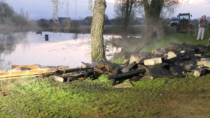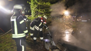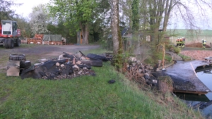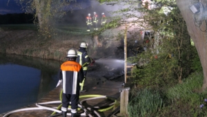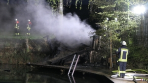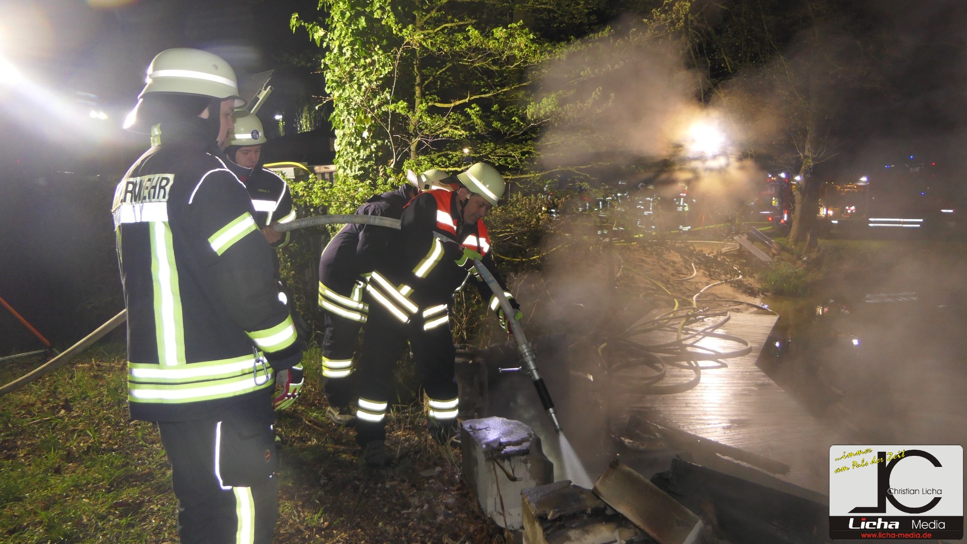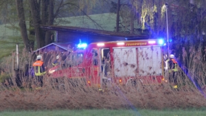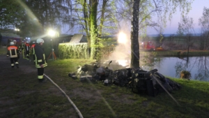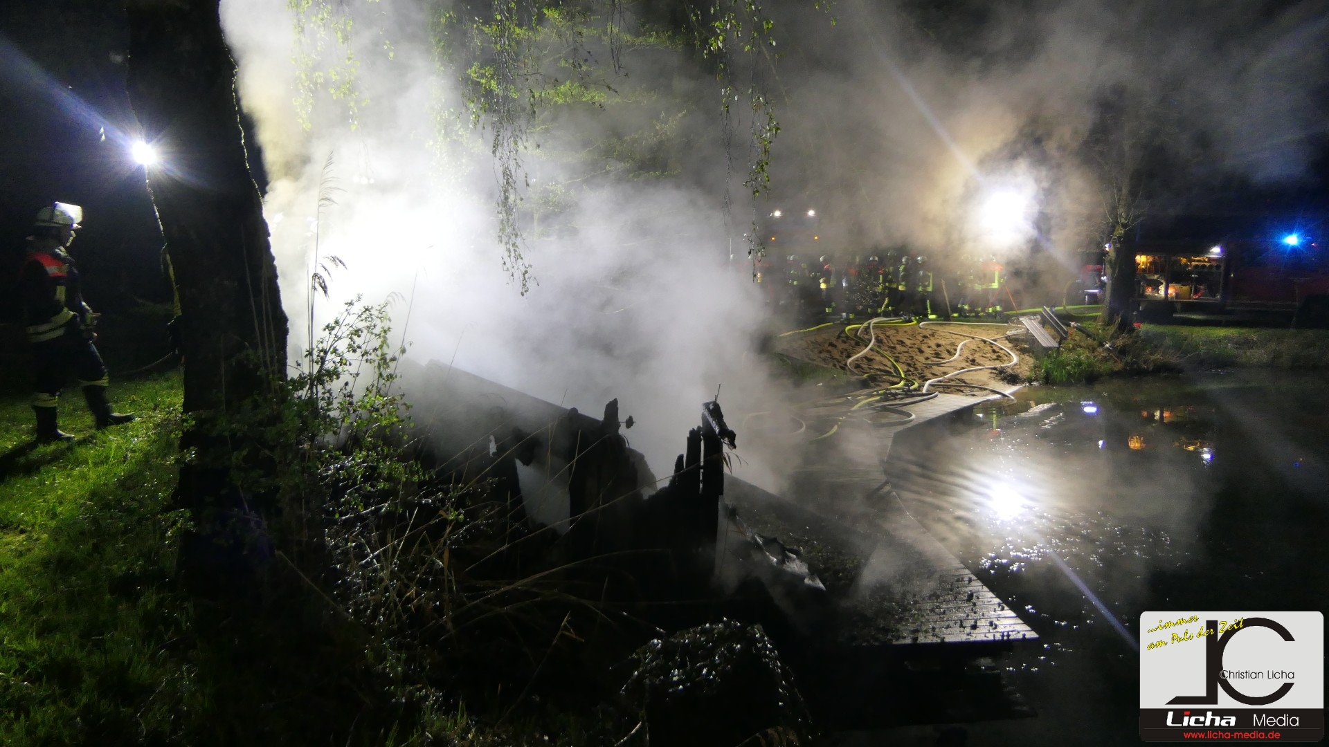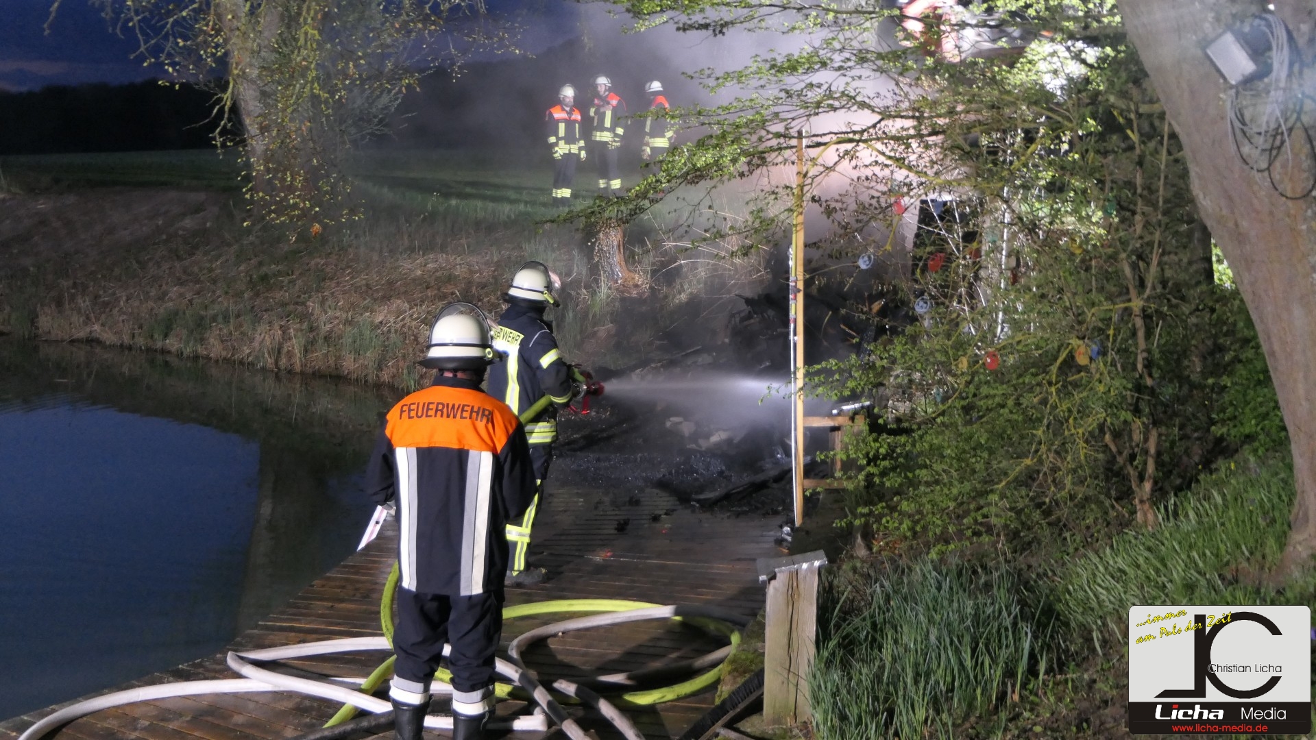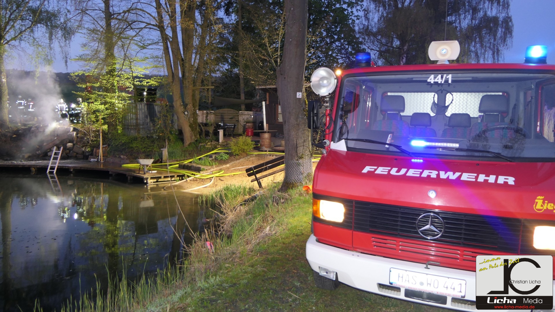Kurz nach 4.30 Uhr alarmierte die Integrierte Leitstelle (ILS) Schweinfurt nach einem Notruf die Feuerwehren aus Wohnau, Oberschwappach, Unterschwappach sowie die Führungsmannschaft der Feuerwehr Knetzgau. Der Einsatzort lag außerhalb des Ortes am Wohnauer See, etwa 300 Meter vom Dorf entfernt. Dort stand eine überwiegend aus Holz errichtete Gartenhütte bereits in Vollbrand. „Bei unserem Eintreffen schlugen die Flammen meterhoch in den Himmel“, berichtete der Wohnauer Kommandant und Einsatzleiter Tobias Steinmetz.
