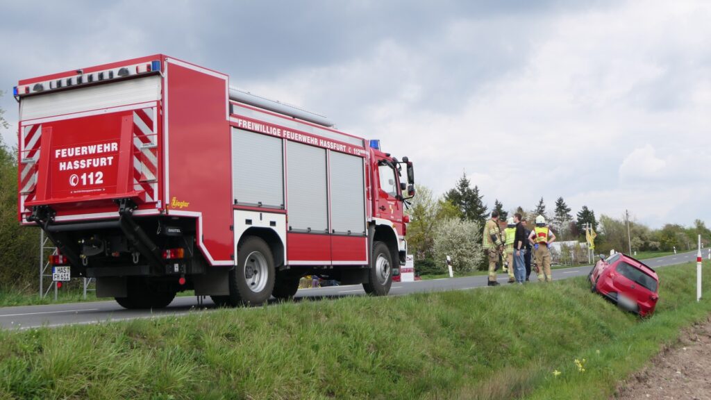 Haßfurt, Lkr. Haßberge. Ein zweiter Einsatz am Donnerstagnachmittag führte die Feuerwehr Haßfurt direkt im Anschluss an einen vorherigen Einsatz in der Innenstadt erneut auf die Straße. Dieses Mal handelte es sich um einen Verkehrsunfall auf der Kreisstraße HAS 10.